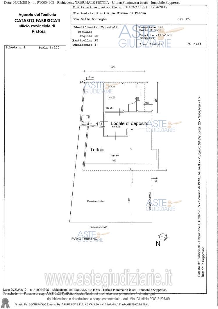 Vendita all'asta Senza incanto, con gara telematica asincrona - LOTTO UNICO: Cantiere edile, ovvero edificio IN CORSO DI COSTRUZIONE. L'immobile consiste in un cantiere edile di superficie convenzionale di 560 mq per la costruzione di unità terra-tetto a destinazione residenziale, compresa una parte di ristrutturazione di edificio pre-esistente. Lo stato dei luoghi si presenta come un fabbricato unico composto da varie unità immobiliari (n.7) corredate di spazi esterni esclusivi ed a comune, allo stato grezzo e in gran parte coperto da rovi. Prezzo base € 51.000,00 (offerta minima € 38.500,00). Data inizio operazioni di vendita: 06/05/2026 ore 10:00. Professionista delegato alla vendita Dott. Federica Mariani - Email "federicamariani@studiocms.net"; Tel. 057273417. Custode Giudiziario Isveg - Email "prenota.pt@isveg.it". Rif. Tribunale di Pistoia - Esecuzione immobiliare post legge 80 n. 119/2018