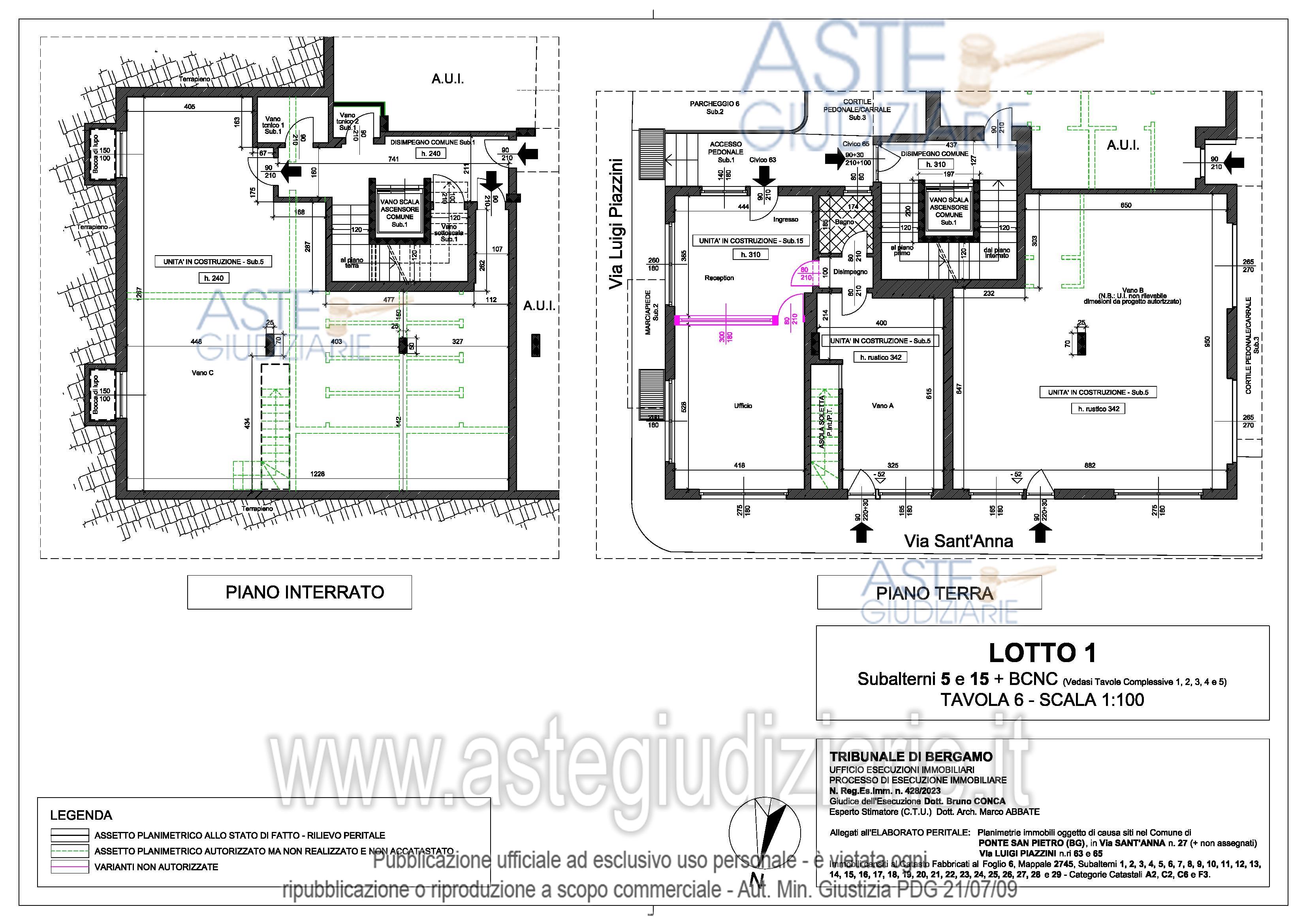 Vendita all'asta Senza incanto, con gara telematica asincrona - LOTTO 1: Unità immobiliare in corso di costruzione (ovvero “al rustico”) sito al piano terra. Al piano interrato l’unità immobiliare in questione è attualmente utilizzata come locale magazzino – deposito. L'immobile è accatastato con la categoria F3 (immobile in corso di costruzione). Altra unità immobiliare in corso di costruzione attualmente utilizzata come ufficio suddiviso in due locali con bagno e antibagno posta al piano terra . L’immobile è accatastato con la categoria F3 (immobile in corso di costruzione). Prezzo base € 55.048,75 (offerta minima € 41.286,56). Data inizio operazioni di vendita: 26/05/2026 ore 15:00. Professionista delegato alla vendita Avv. Simone Minola - Email "simoneminola@virgilio.it"; Tel. 0350779384. Custode Giudiziario Avv. Simone Minola - Email "simoneminola@virgilio.it"; Tel. 0350779384. Rif. Tribunale di Bergamo - Espropriazione immobiliare (cartabia) n. 428/2023