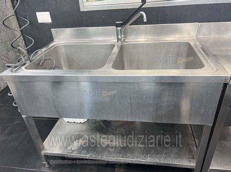 Vendita in attesa dell'emissione del nuovo bando d'asta. LOTTO 5: Lavello in acciaio inox due vasche con gocciolatoio a giorno con ripiano di fondo, 120*70*85, in buone condizioni e funzionante. Ultimo prezzo base € 120,00. Giudice Dott. Antonio Pianoforte. Rif. Tribunale di Ragusa - Esecuzioni mobiliari con vendita post legge 80 n. 262/2025