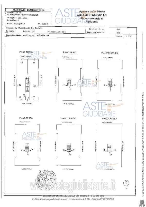 Vendita all'asta Senza incanto, con gara telematica sincrona mista - LOTTO 13: Superficie coperta di mq 506 per N. 3 appartamenti al piano quarto. Prezzo base € 9.480,00 (offerta minima € 7.110,00). Data vendita 12/05/2026 ore 09:00. Giudice Vitalba Pipitone. Professionista delegato alla vendita Avv. Valeria Ciancimino - Email "ciancimino.legal@virgilio.it". Custode Giudiziario Avv. Valeria Ciancimino - Email "ciancimino.legal@virgilio.it". Rif. Tribunale di Agrigento - Esecuzione immobiliare post legge 80 n. 179/2013