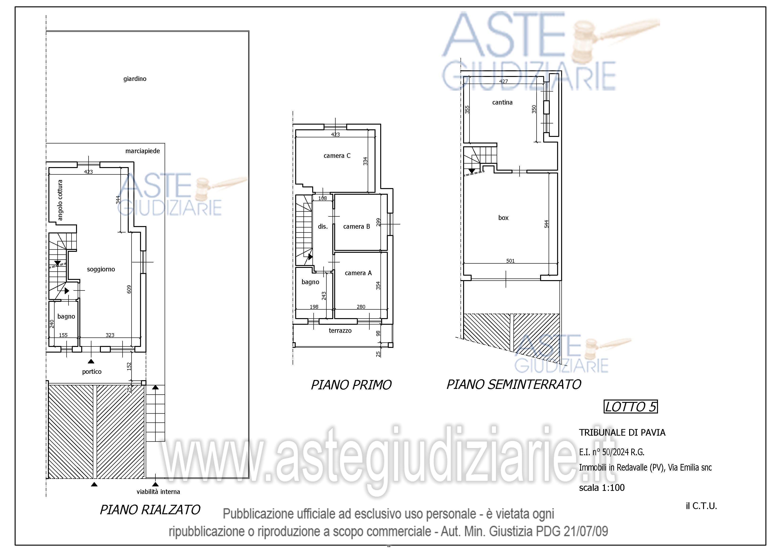 Vendita in attesa dell'emissione del nuovo bando d'asta. LOTTO 6: Porzione di villa trifamiliare in corso di costruzione, ad uso residenziale, disposta su piano rialzato, primo e seminterrato, con giardino e autorimessa di proprietà. L’immobile risulta così suddiviso: piano rialzato: giardino posto sul retro, portico esterno, soggiorno, cucina, bagno e vano scala; piano primo: tre camere, disimpegno, bagno e terrazzo; piano seminterrato: box, cantina e cavedio. Ultimo prezzo base € 65.500,00 (offerta minima € 49.125,00). Giudice Antonio Maria Codega. Professionista delegato alla vendita Avv. Giorgio Giacobone - Email "giorgio@giacobone.it"; Tel. 0383646149. Custode Giudiziario Istituto Vendite Giudiziarie Di Vigevano - Email "richiestevisite.vigevano@ifir.it"; Tel. 0381691137. Rif. Tribunale di Pavia - Espropriazione immobiliare (cartabia) n. 50/2024
