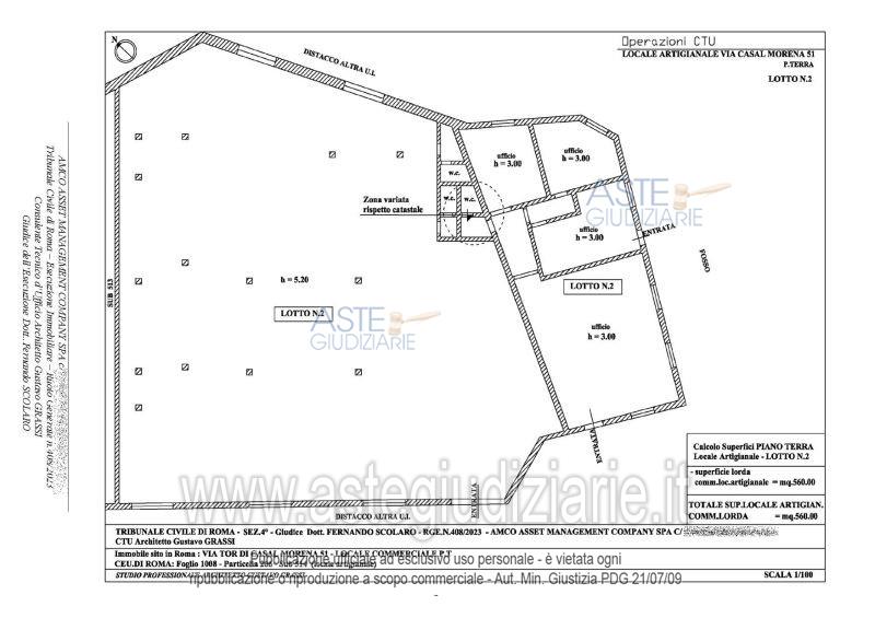 Vendita all'asta Senza incanto, con gara telematica asincrona - LOTTO 2: Quota pari al 100/100 del diritto di proprietà su laboratorio artigianale ubicato a Roma (RM) - Via di Casal Morena 51, piano T, indentificato al catasto fabbricati del Comune di Roma al foglio 1008, part. 266, sub 514, zc 6, cat. C3, cl.2, consistenza 554, sup. cat. 590, rendita € 2403,38, piano T. Prezzo base € 122.400,00 (offerta minima € 91.800,00). Data inizio operazioni di vendita: 23/06/2026 ore 14:00. Giudice Dott. Cristina Liverani. Professionista delegato alla vendita Dott. Giuseppe Gatti. Custode Giudiziario Ivg Di Roma Srl - Email "pvp@visiteivgroma.it"; Tel. 0689569801. Rif. Tribunale di Roma - Espropriazione immobiliare (cartabia) n. 408/2023