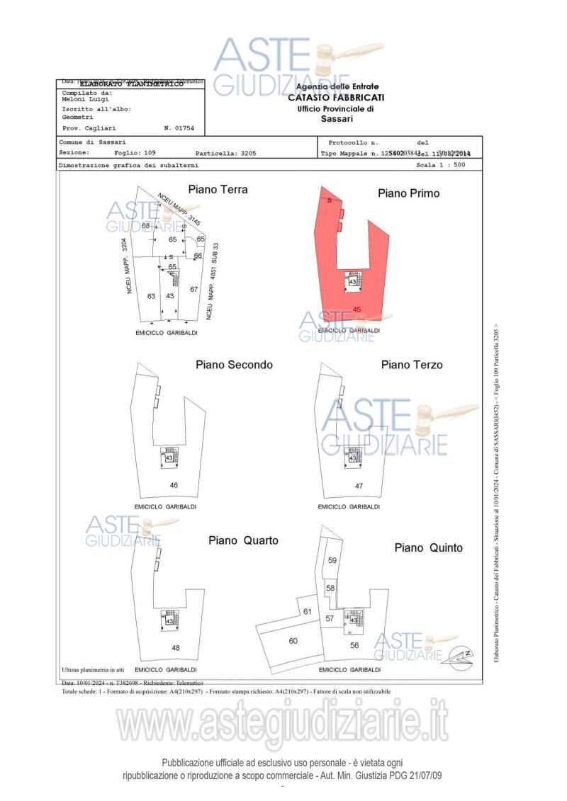 Vendita all'asta Senza incanto, con gara telematica asincrona - LOTTO 4: Porzione di fabbricato in costruzione ubicato a Sassari (SS) - Piazza Emiciclo Garibaldi 22 Identificato al catasto Fabbricati - Fg. 109, Part. 3205, Sub. 45, Piano 1°, Categoria F3, superficie utile totale calpestabile pari a circa mq 236,92, compresa quota indivisa dell’area comune (condominiale) costituita da corte e porticati, distinta in NCEU al Fg. 109, Part. 3205, Sub 65, cat. F/3, da intendersi parte comune dell’intero fabbricato distinto alla particella 3205. Prezzo base € 263.200,00 (offerta minima € 197.400,00). Data inizio operazioni di vendita: 14/05/2026 ore 17:00. Professionista delegato alla vendita Avv. Pintore Pierpaolo - Email "pierpaolo.pintore@tiscali.it"; Cell. 3473500412; Tel. 079237725. Custode Giudiziario Istituto Vendite Giudiziarie Sassari - Email "visitaivgsassari@gmail.com"; Tel. 079260228. Rif. Tribunale di Sassari - Esecuzione immobiliare post legge 80 n. 92/2022
