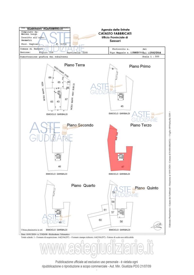Vendita all'asta Senza incanto, con gara telematica asincrona - LOTTO 6: Porzione di fabbricato in costruzione ubicato a Sassari (SS) – Piazza Emiciclo Garibaldi 22 Identificato al catasto Fabbricati – Fg. 109, Part. 3205, Sub. 47, Piano 3°, Categoria F3, superficie utile totale calpestabile pari a circa mq 215,35, compresa quota indivisa dell’area comune (condominiale) costituita da corte e porticati, distinta in NCEU al Fg. 109, Part. 3205, Sub 65, cat. F/3, da intendersi parte comune dell’intero fabbricato distinto alla particella 3205. Prezzo base € 77.200,00 (offerta minima € 57.900,00). Data inizio operazioni di vendita: 14/05/2026 ore 17:00. Professionista delegato alla vendita Avv. Pintore Pierpaolo - Email "pierpaolo.pintore@tiscali.it"; Cell. 3473500412; Tel. 079237725. Custode Giudiziario Istituto Vendite Giudiziarie Sassari - Email "visitaivgsassari@gmail.com"; Tel. 079260228. Rif. Tribunale di Sassari - Esecuzione immobiliare post legge 80 n. 92/2022