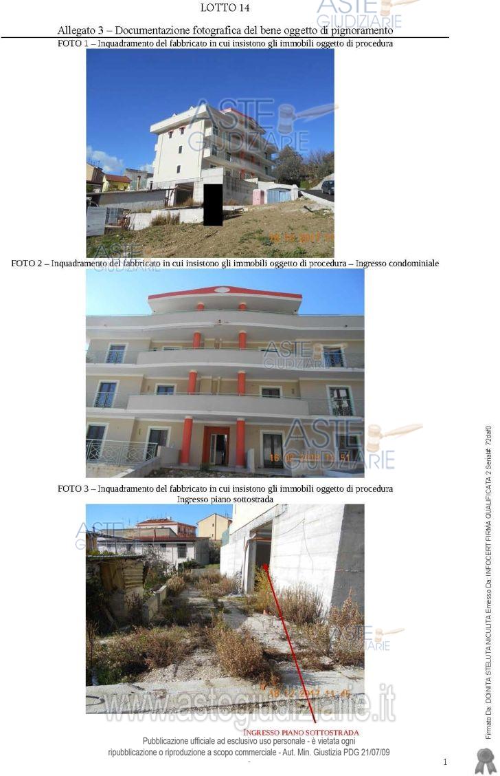 Vendita all'asta Senza incanto, con gara telematica asincrona - LOTTO 14: Piena proprietà di due locali garage in fabbricato non ultimato, siti al piano interrato, con una superficie utile complessiva di mq. 29,37. Nel sub 18 vi è soppalco, accessibile con una scala, con una superficie utile di mq. 20,41. L'immobile è privo di certificato di collaudo statico e di impiantistica a norma. Prezzo base € 6.500,00 (offerta minima € 4.875,00). Data inizio operazioni di vendita: 24/06/2026 ore 09:30. Giudice: Dott. Giuseppina Valiante.