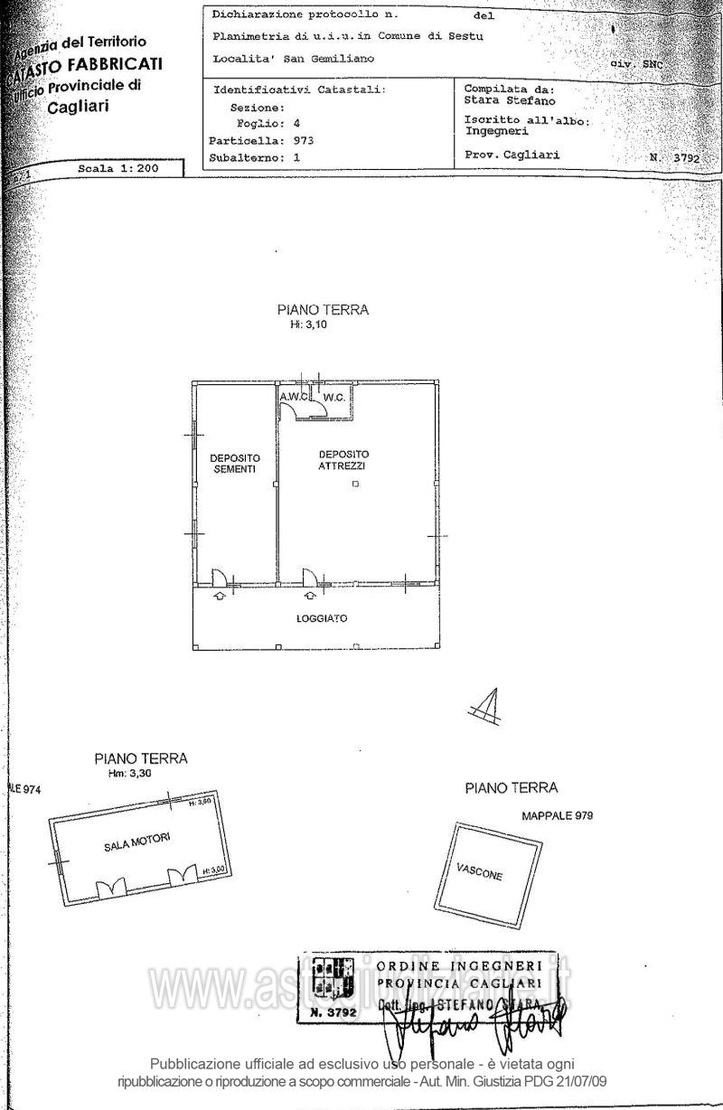 Vendita all'asta Senza incanto, con gara telematica asincrona - LOTTO 2: Quota pari a 1/1 del diritto di proprietà su compendio sito nel Comune di Sestu, Località San Gemiliano, composto dai terreni identificati al Catasto Terreni al foglio 4, mapp. 67, superficie mq 7.490 e al foglio 4, mapp. 978 (ex 87), superficie mq 6.674 con sovrastanti fabbricati identificati al Catasto Fabbricati al foglio 4, mapp. 973, sub 1, categ. C/2, piano T e al foglio 4, mapp. 973, sub 2, categ. A/4, piano 1 e al foglio 4, mapp. 974 e al foglio 4, mapp. 979. Prezzo base € 201.824,00 (offerta minima € 151.368,00). Data inizio operazioni di vendita: 19/05/2026 ore 15:00. Giudice Silvia Cocco. Professionista delegato alla vendita Rag. Maria Gabriella Curto - Email "curtogabri@tiscali.it"; Tel. 0702058710. Custode Giudiziario Ivg Cagliari - Email "ivg.visiteimmobili@tiscali.it"; Tel. 0702299036. Rif. Tribunale di Cagliari - Esecuzione immobiliare post legge 80 n. 332/2008