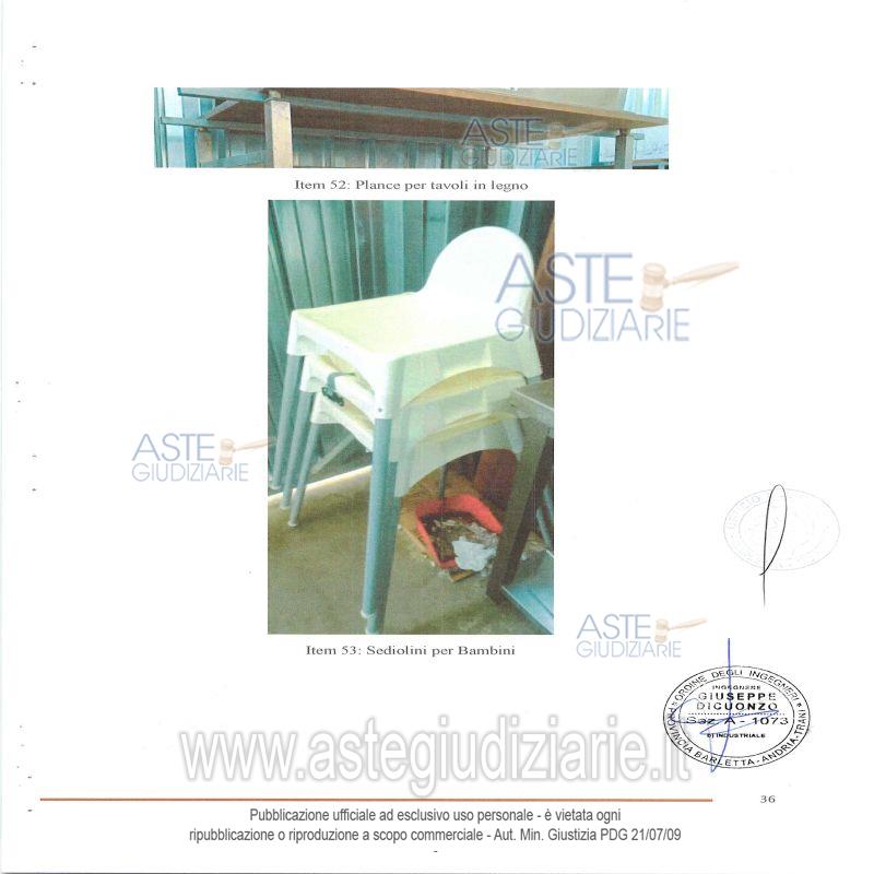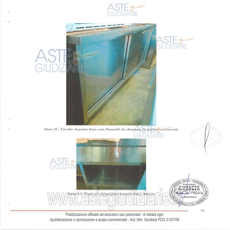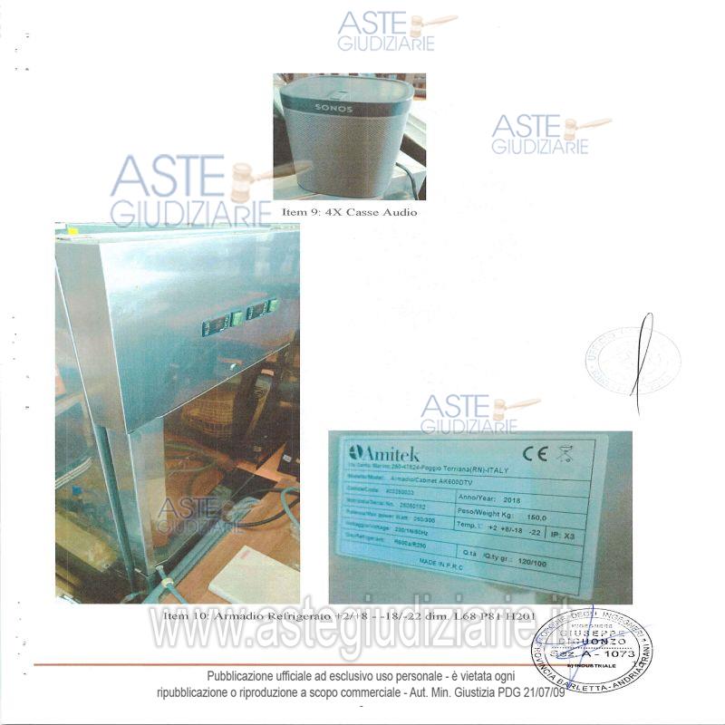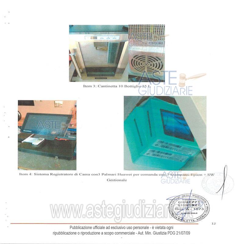 Vendita all'asta Senza incanto, con gara telematica asincrona - LOTTO UNICO: Lotto composto da attrezzature e arredi da ristorazione e da impianti tecnologici. Prezzo base € 9.976,28 (offerta minima € 7.482,21). Data inizio operazioni di vendita: 15/01/2026 ore 11:00. In caso di più offerte valide si procederà a gara che terminerà il 22/01/2026 ore 11:00. Giudice Dott. Maria Azzurra Guerra. Rif. Tribunale di Trani - Liquidazione controllata(cci) n. 26/2024