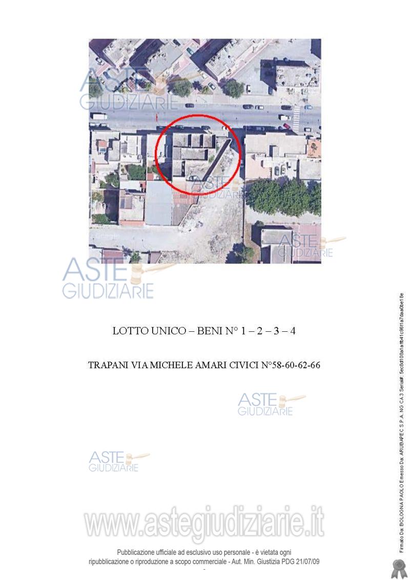 Vendita all'asta Senza incanto, con gara telematica sincrona mista - LOTTO 1: LOTTO 1): Bene A) piena proprietà di appartamento a Trapani, via Michele Amari n°58, piani 2 – 3, identificato al catasto Fabbricati al Fg. 9, Part. 798, Sub. 7, Cat. F3 - Fg. 9, Part. 798, Sub. 8, Cat. F3, mq. 309,45=. Bene B) piena proprietà di laboratorio artigianale a Trapani, via Michele Amari n°66, piano T, identificato al catasto Fabbricati al Fg. 9, Part. 798, Sub. 5, Cat. C3, mq.14,50. . Prezzo base € 21.375,00 (offerta minima € 16.031,25). Data vendita 17/12/2025 ore 17:00. Professionista delegato alla vendita Avv. Antonella Cangemi - Email "antonellacangemi@libero.it"; Cell. 3488088614; Tel. 0923548274. Custode Giudiziario Avv. Antonella Cangemi - Email "antonellacangemi@libero.it"; Cell. 3488088614; Tel. 0923548274. Rif. Tribunale di Trapani - Esecuzione immobiliare post legge 80 n. 84/2021