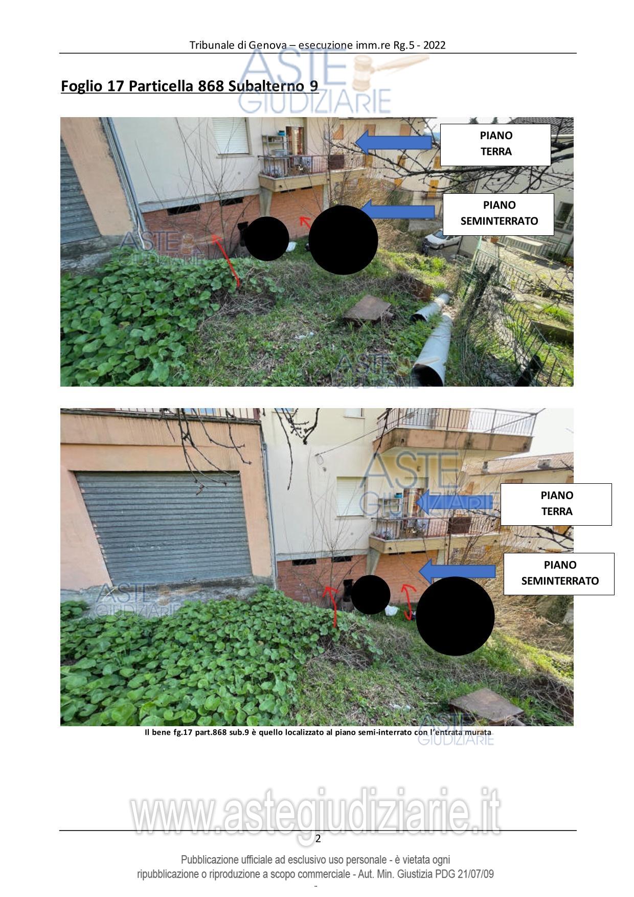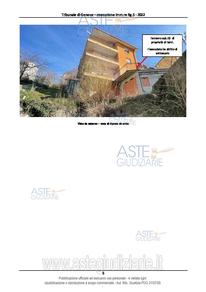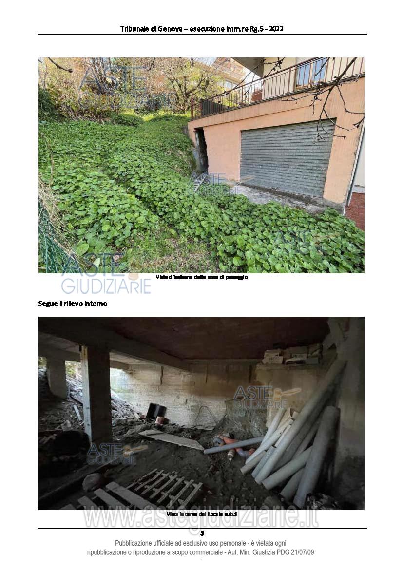 Vendita all'asta Senza incanto, con gara telematica sincrona mista - LOTTO 1: Uscio (GE), piena proprietà di 2 immobili siti in Salita Isella civico n. 7B, il primo, in corso di costruzione, è un vano semi interrato con porzione di terreno antistante ; il secondo è un vano tecnico chiuso in aderenza del terrapieno di fatto ad oggi inaccessibile. superficie commerciale complessiva mq. 51,00.Sono compresi quattro terreni identificati al Catasto Terreni del Comune di Uscio al foglio 17, quali particelle 473, 995, 996 e 997 i per una superficie catastale totale di mq. 247,00. Prezzo base € 20.250,00 (offerta minima € 15.188,00). Data vendita 19/03/2026 ore 14:00. Giudice Dott. Cristina Tabacchi. Professionista delegato alla vendita Avv. Valentina Corsi - Email "avv.corsivalentina@gmail.com"; Cell. 3474172656. Custode Giudiziario Sovemo Srl - Email "visitegenova@sovemo.com". Rif. Tribunale di Genova - Esecuzione immobiliare post legge 80 n. 5/2022