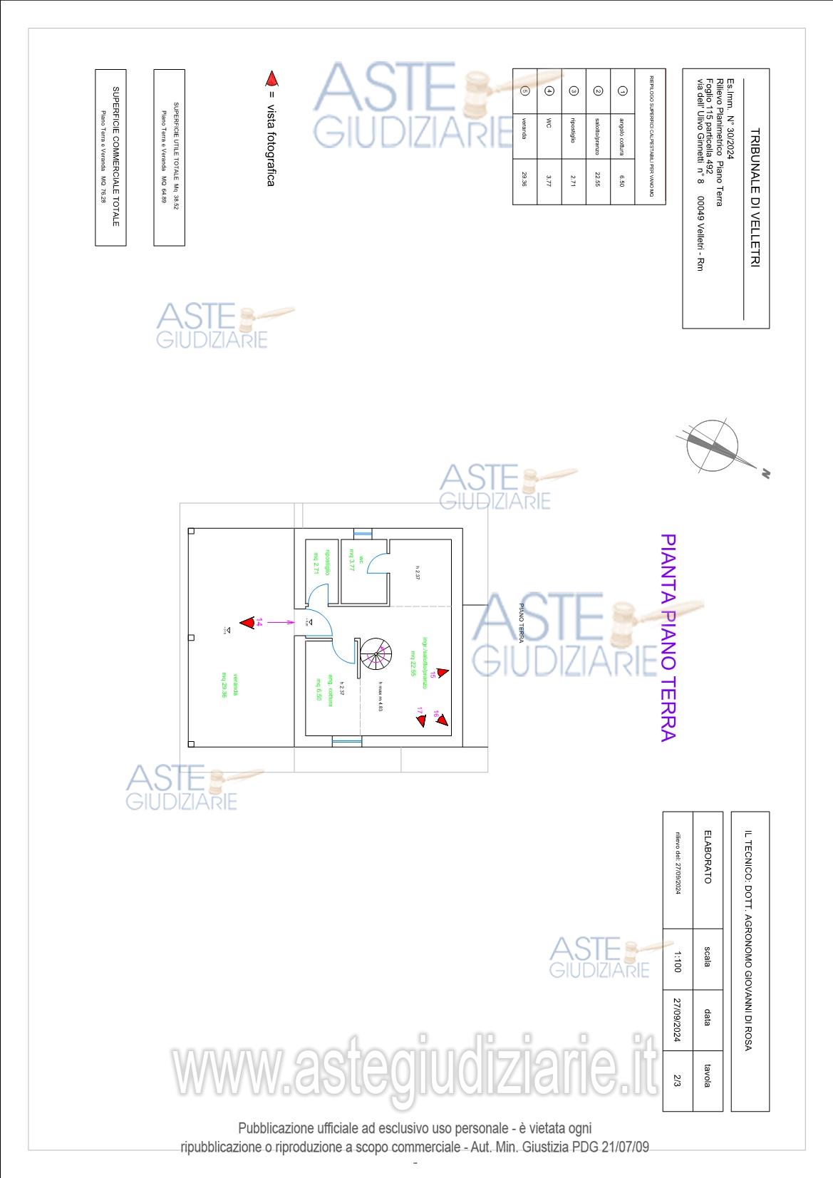 Vendita all'asta Senza incanto, con gara telematica asincrona - LOTTO 1: Piena proprietà di Magazzino/Deposito con area pertinenziale annessa ubicato a Velletri (RM) – Via dell'Ulivo Ginnetti 8, piano T. Identificato al catasto Fabbricati del Comune di Velletri al Foglio 115, Particella 492, Categoria C2. Manufatto edilizio edificato all'interno di una particella di terreno facente parte, anch'essa, del presente Lotto. Prezzo base € 68.400,00 (offerta minima € 51.300,00). Data inizio operazioni di vendita: 24/06/2026 ore 10:30. Professionista delegato alla vendita Avv. Francesco Novara - Email "francesconovara@inwind.it". Custode Giudiziario Avv. Francesco Novara - Email "francesconovara@inwind.it". Rif. Tribunale di Velletri - Espropriazione immobiliare (cartabia) n. 30/2024