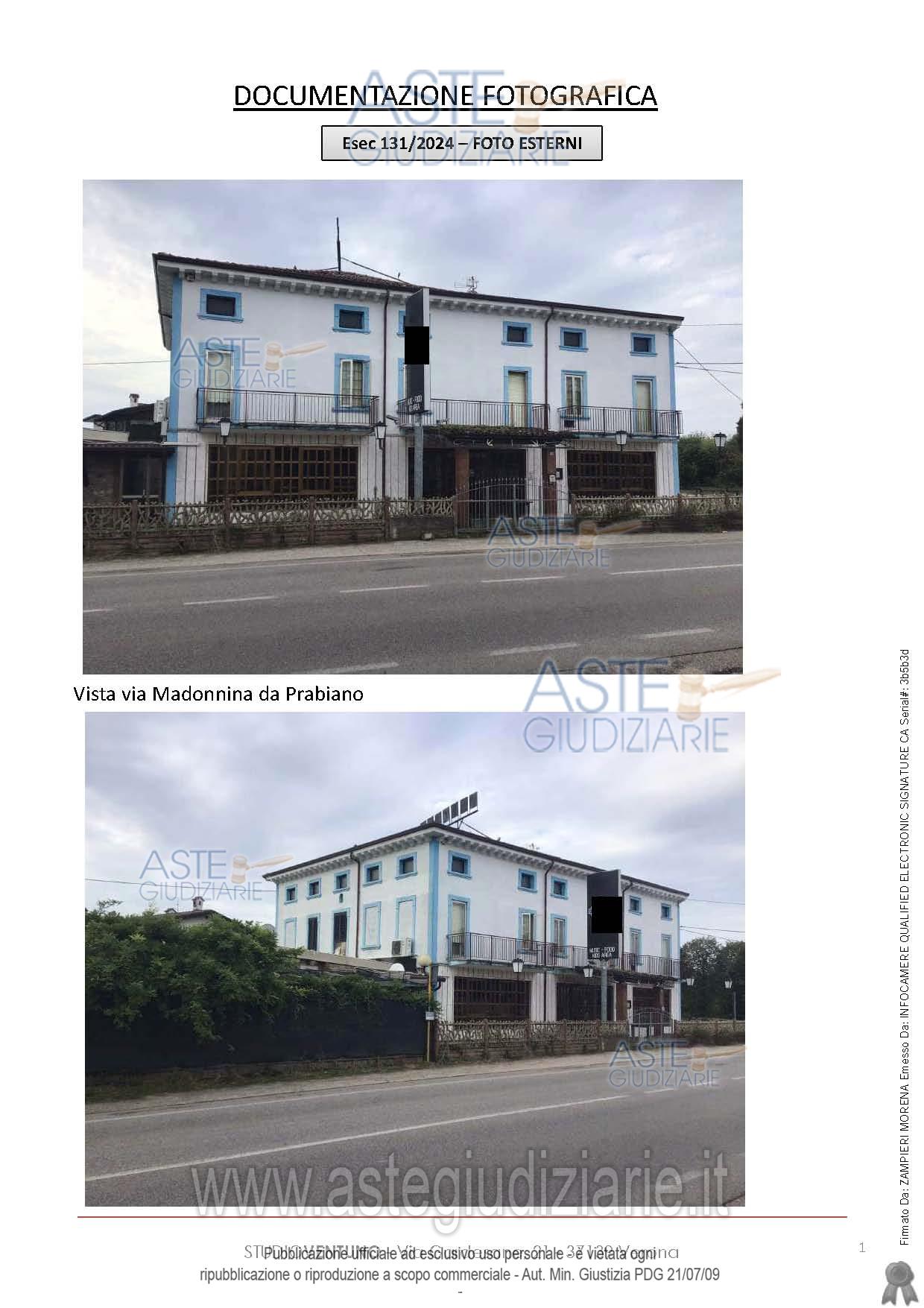 Vendita in attesa dell'emissione del nuovo bando d'asta. LOTTO UNICO: LOTTO UNICO - In Comune di Villafranca di Verona (VR), Via Madonnina di Prabiano n.11 lungo la strada provinciale con direzione Valeggio sul Mincio, piena proprietà di complesso immobiliare composto da locali aventi destinazione commerciale (ristorante) al piano terra e interrato (cantina), da una abitazione con terrazza esterna al piano primo e da soffitte al piano secondo, oltre a magazzini fatiscenti in fabbricato distinto, ubicati all’interno dell’area cortilizia di proprietà. Ultimo prezzo base € 223.000,00 (offerta minima € 167.250,00). Giudice Dott. Paola Salmaso. Professionista delegato alla vendita Dott. Tatiana Bianchetti - Email "tbianchetti@gmail.com"; Tel. 0458002630. Custode Giudiziario Avv. Adriano Lucchin - Email "adriano.lucchin@mggavvocati.it"; Tel. 0456106167. Rif. Tribunale di Verona - Espropriazione immobiliare (cartabia) n. 131/2024