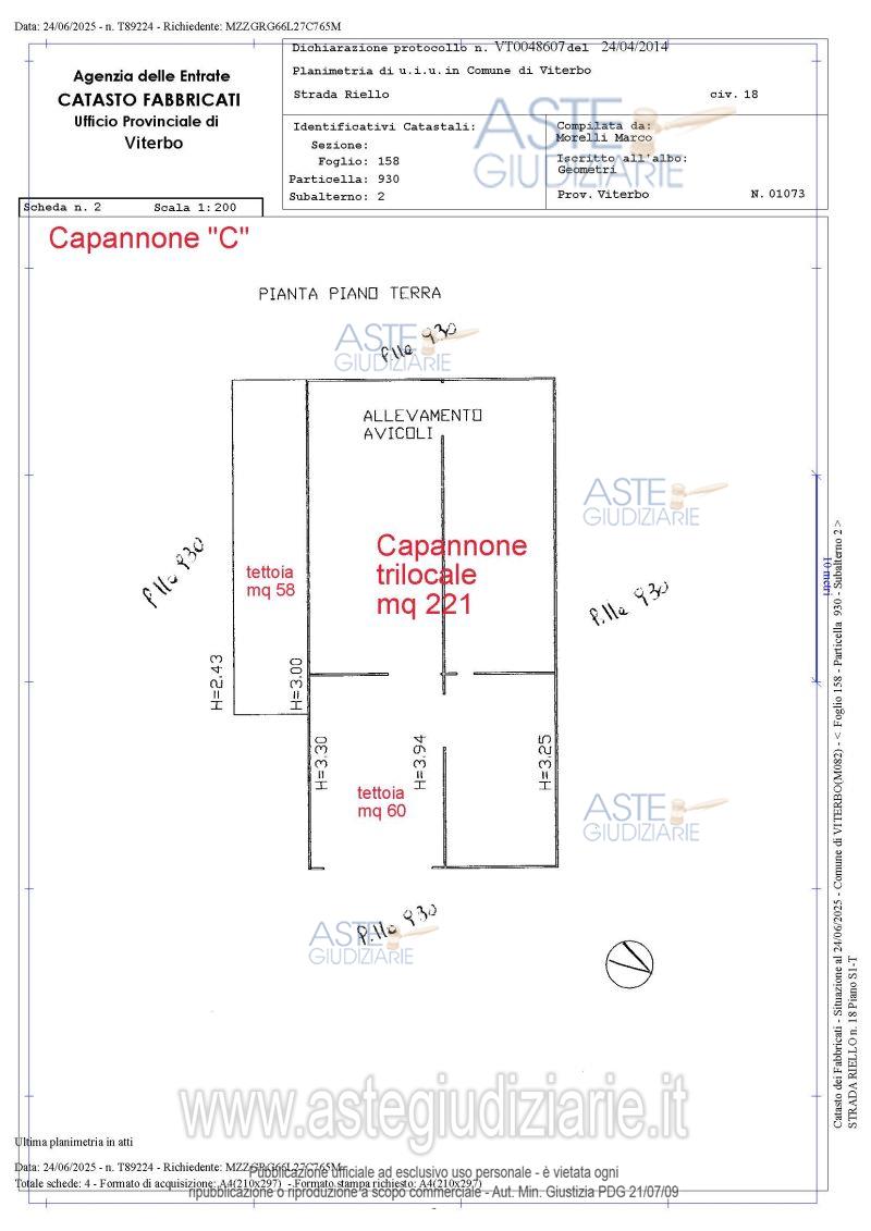 Vendita all'asta Senza incanto, con gara telematica asincrona - LOTTO UNICO: Diritto di proprietà 1/1 di terreno e fabbricati composti da Magazzino A: seminterrato diviso in due ambienti, quello sul lato ovest è di 16,40 mq; Magazzino B: piano terra di 1.330,00 mq, composto da due corpi principali; Magazzino C: piano terra di circa 339,00 mq; Magazzino D: piano terra di circa 130,00 mq. Per le costruzioni non risulta il rilascio di agibilità, sono conformi alla normativa urbanistico-edilizia per quanto ai fabbricati denominati A, B e C, e non conformi per quanto al fabbricato D. Prezzo base € 480.000,00 (offerta minima € 360.000,00). Data inizio operazioni di vendita: 03/06/2026 ore 11:00. Professionista delegato alla vendita Avv. Paola Paola.Alessandri@Libero.It - Email "paola.alessandri@libero.it"; Cell. 3485132530; Tel. 0761798777. Custode Giudiziario Avv. Paola Paola.Alessandri@Libero.It - Email "paola.alessandri@libero.it"; Cell. 3485132530; Tel. 0761798777. Rif. Tribunale di Viterbo - Espropriazione immobiliare (cartabia) n. 73/2025