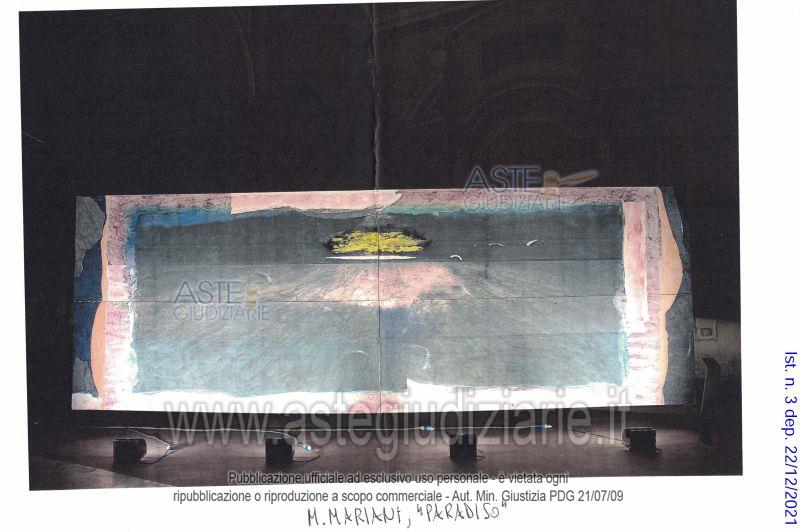 Vendita in attesa dell'emissione del nuovo bando d'asta. LOTTO 3: Lotto C. Opera raffigurante il Paradiso realizzata a tecnica mista e collage. Ultimo prezzo base € 26.932,50. Giudice Maura Manzi. Professionista delegato alla vendita Avv. Paolo Colorizio. Custode Giudiziario Avv. Paolo Colorizio - Email "paolo.colorizio@studiolegalecolorizio.it"; Cell. 3493784379; Tel. 0862293287. Rif. Tribunale di L'Aquila - Esecuzioni mobiliari con vendita post legge 80 n. 472/2019
