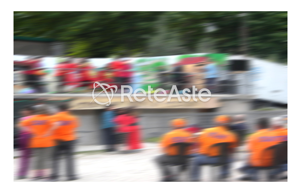 Movimento e colore si incontrano: lo staff in azione diventa un quadro che trasmette ritmo e vitalità.