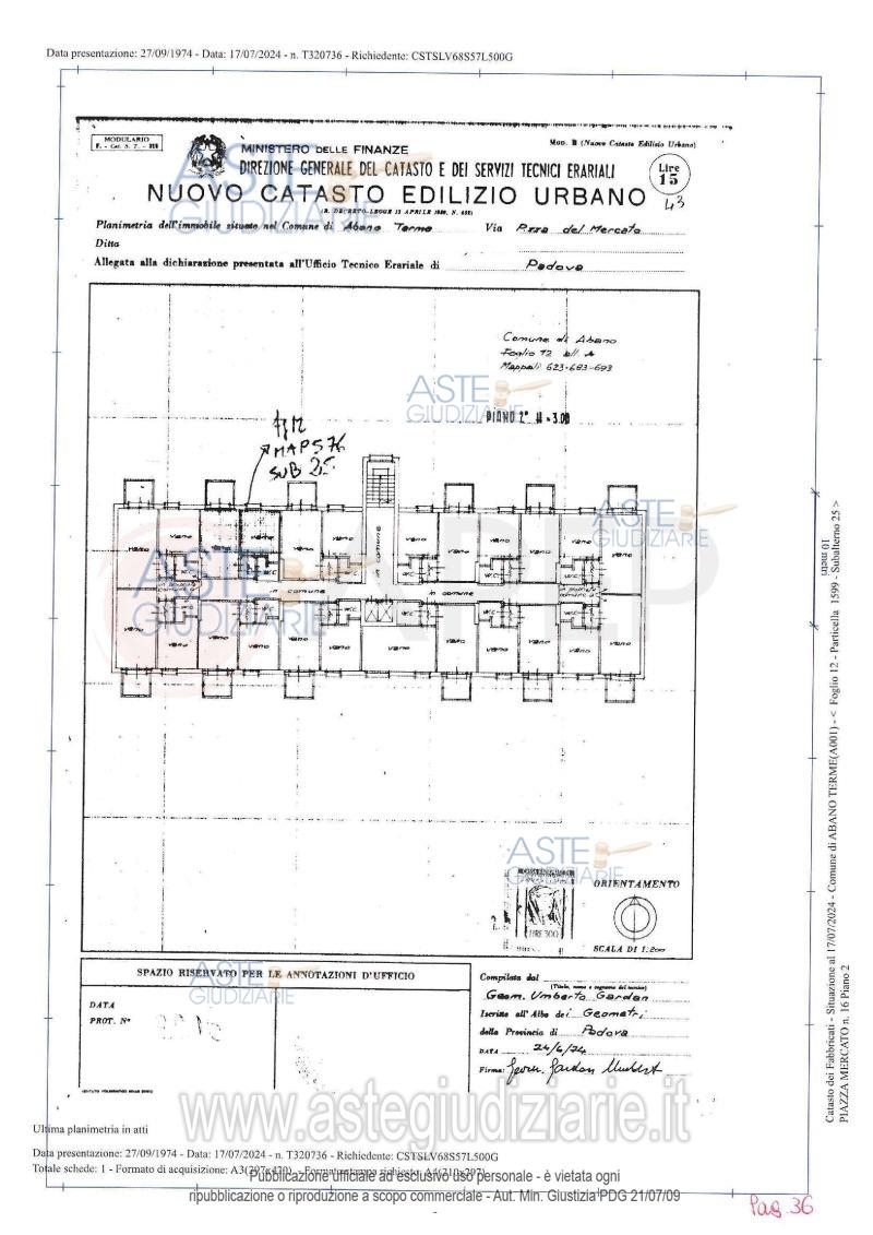 Vendita all'asta Senza incanto, con gara telematica sincrona - LOTTO UNICO: Lotto Unico - piena proprietà di unità immobiliari facenti parte del fabbricato condominiale denominato "Condominio Abano 3", sito in Comune di Abano Terme (PD), Piazza del Mercato n. 16 int. 20 (appartamento) e civico n. 24 (posto auto) e precisamente: appartamento al piano secondo, di due vani oltre accessori, esposizione lato nord e posto auto sul cortile esterno, (il secondo dall'angolo nord-est) della superficie commerciale complessiva di mq. 40. Occupato con titolo. Prezzo base € 27.000,00 (offerta minima € 20.250,00). Data vendita 23/06/2026 ore 10:00. Giudice Pasqualetto. Professionista delegato alla vendita Not. Amelia Cuomo - Email "aste@apepnotai.it"; Tel. 049651228. Custode Giudiziario Apep - Email "visita@apepnotai.it"; Tel. 049651228. Rif. Tribunale di Padova - Espropriazione immobiliare (cartabia) n. 167/2024