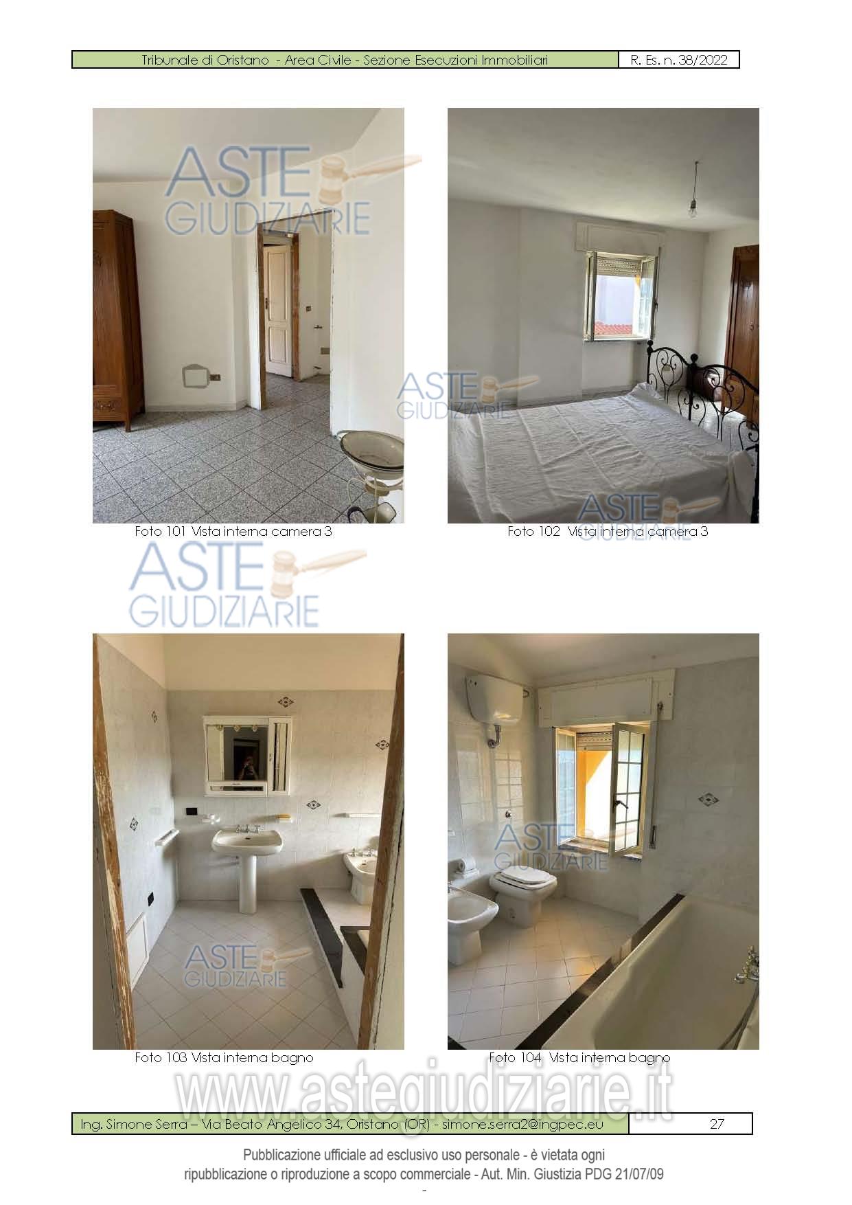 Vendita all'asta Senza incanto, con gara telematica sincrona - LOTTO UNICO: fabbricato unifamiliare di civile abitazione. Prezzo base € 73.154,56 (offerta minima € 54.865,92). Data vendita 19/02/2026 ore 16:30. Professionista delegato alla vendita Avv. Maurizio Santarelli - Email "avv.msantarelli@tiscali.it"; Tel. 3388006877. Custode Giudiziario Ivg Sardegna - Email "visite.ivgoristano@gmail.com"; Tel. 079630505. Rif. Tribunale di Oristano - Esecuzione immobiliare post legge 80 n. 38/2022