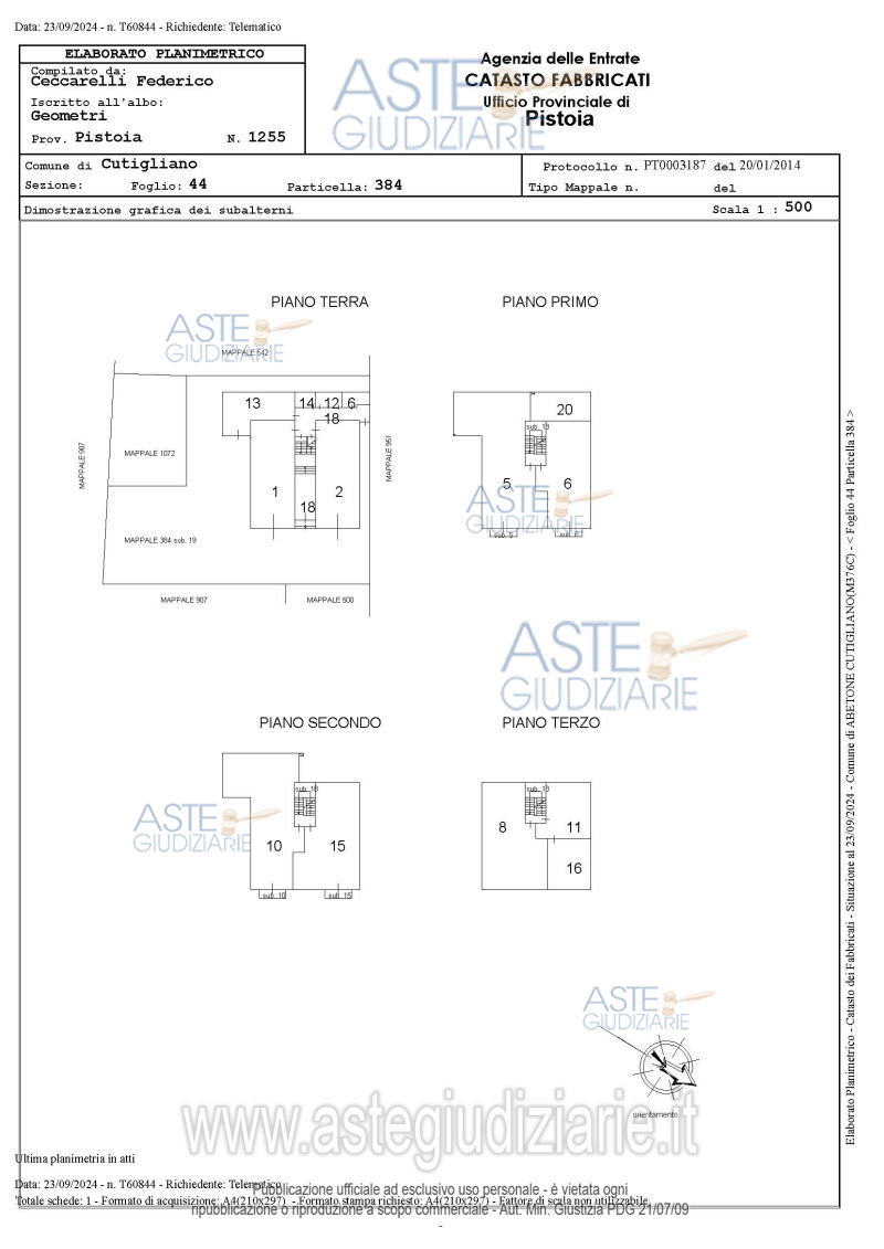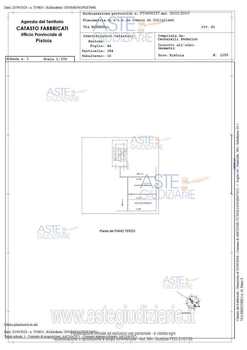 Vendita all'asta Senza incanto, con gara telematica asincrona - LOTTO 16: Unità adibita a civile abitazione di mq 96.03 composta da ingresso-disimpegno, cucina, soggiorno, due camere, bagno e terrazzo; corredata da vano cantina e vano con centrale termica , due vani uso soffitta al piano terzo-sottotetto, con autorimessa di 38 mq e due locali uso soffitta di 36 mq. Prezzo base € 116.530,00 (offerta minima € 87.500,00). Data inizio operazioni di vendita: 15/01/2026 ore 09:00. Giudice Dott. Sergio Garofalo. Professionista delegato alla vendita Avv. Valeria Brescia - Email "segreteria@pinibrescia.it"; Tel. 0573934661. Custode Giudiziario Isveg - Email "prenota.pt@isveg.it"; Tel. 0573308256. Rif. Tribunale di Pistoia - Espropriazione immobiliare (cartabia) n. 147/2024