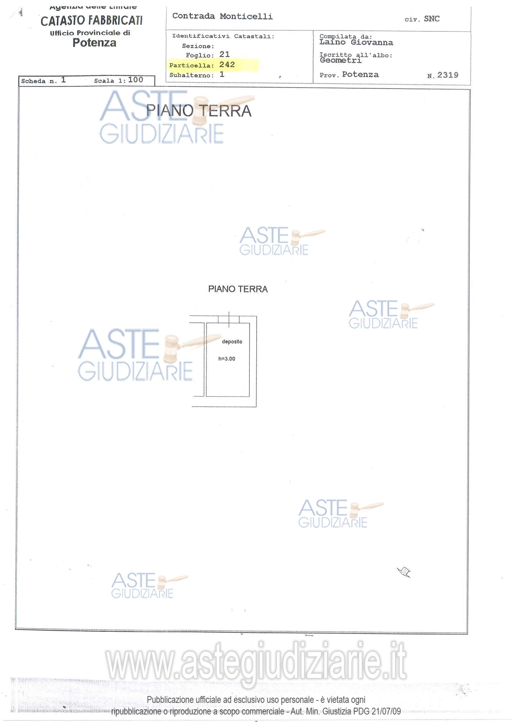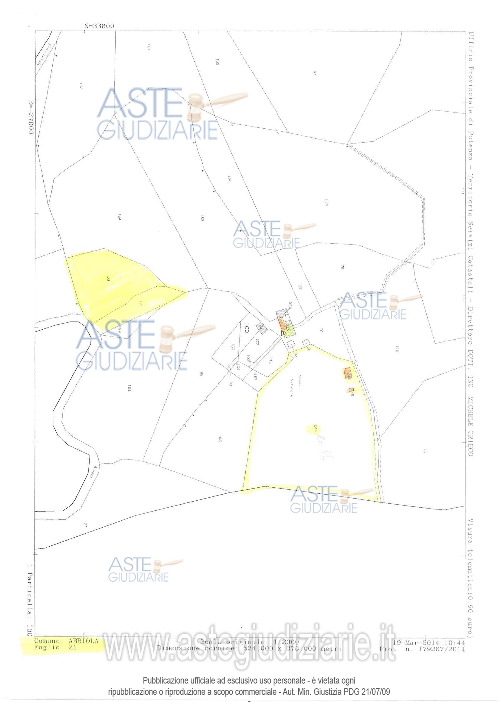 Vendita all'asta Senza incanto - LOTTO UNICO: Diritti dell’intero della piena proprietà dei terreni della superficie complessiva di ettari 08.96.35, con annesso fabbricato rurale della superficie utile di circa 70 mq. composto di quattro vani di cui due al seminterrato e due al piano terra con annesso forno . Prezzo base € 59.223,60 (offerta minima € 44.417,70). Data vendita 29/05/2026 ore 10:00. Professionista delegato alla vendita Avv. Anna Arcella - Email "anna@avvocatoarcella.it"; Tel. 3478478221. Custode Giudiziario Avv. Anna Arcella - Email "anna@avvocatoarcella.it"; Tel. 3478478221. Rif. Tribunale di Potenza - Esecuzione immobiliare post legge 80 n. 27/2011