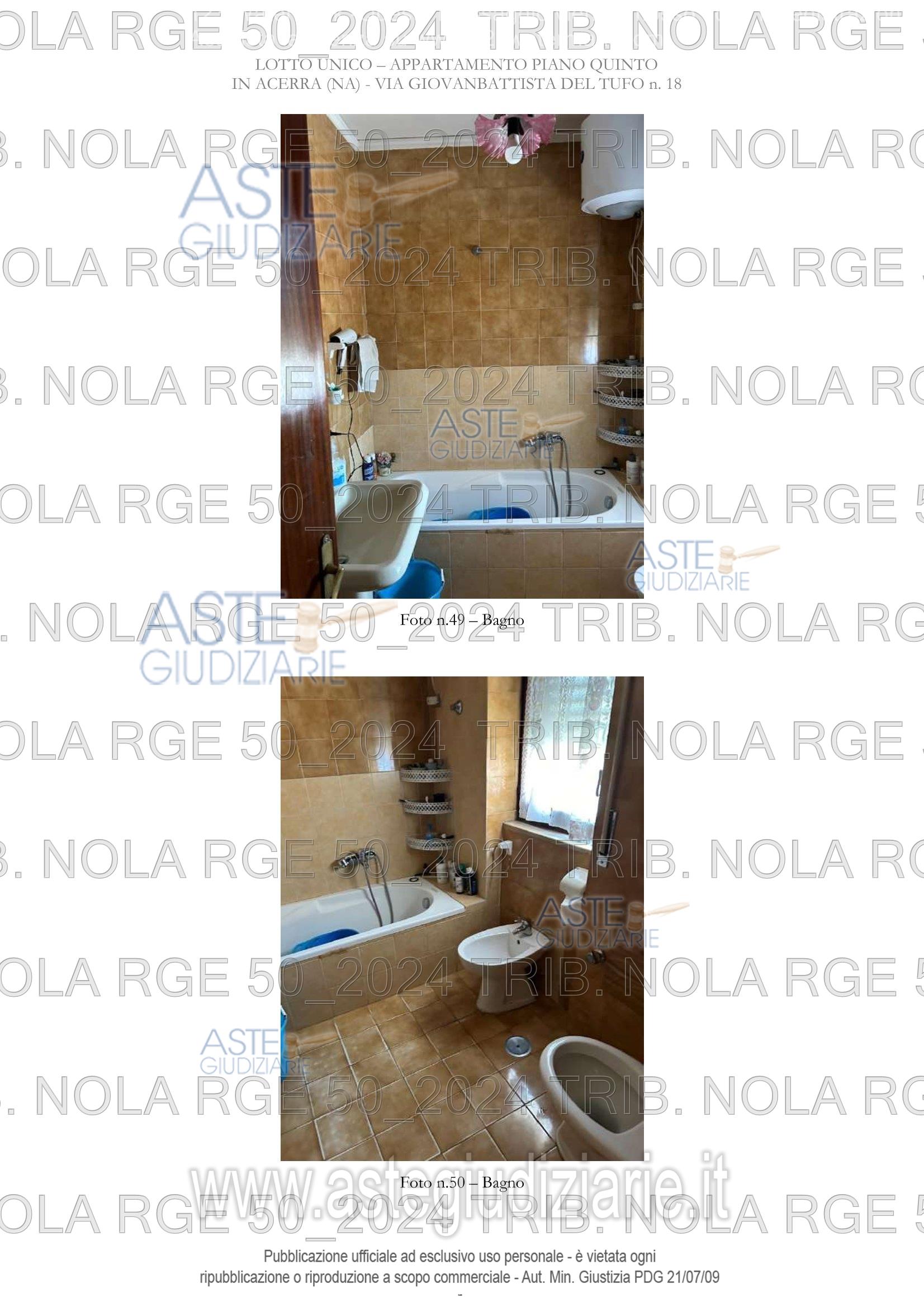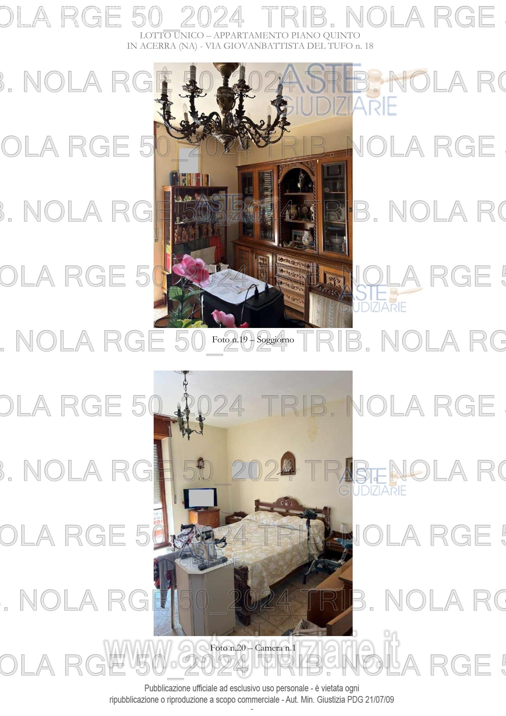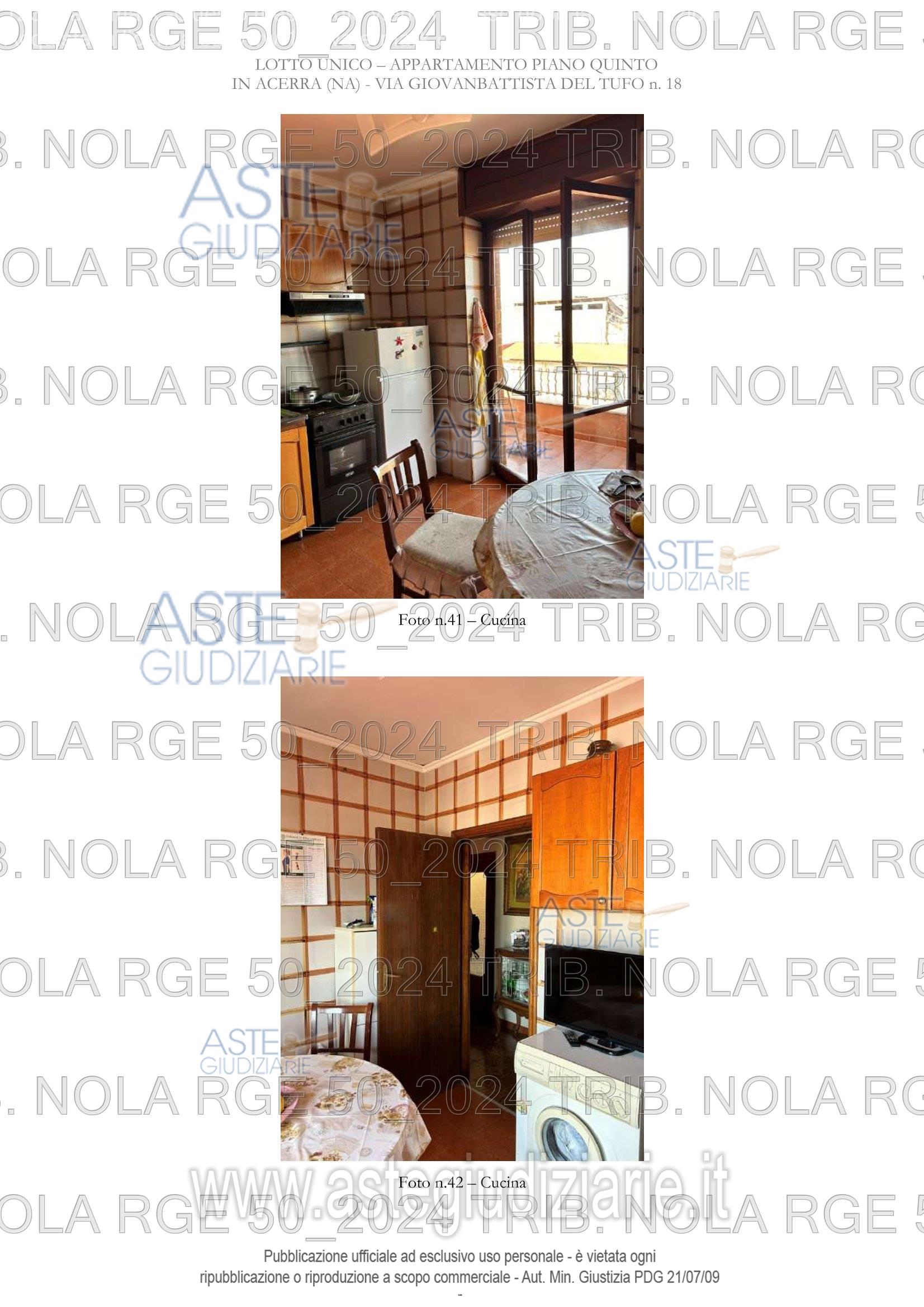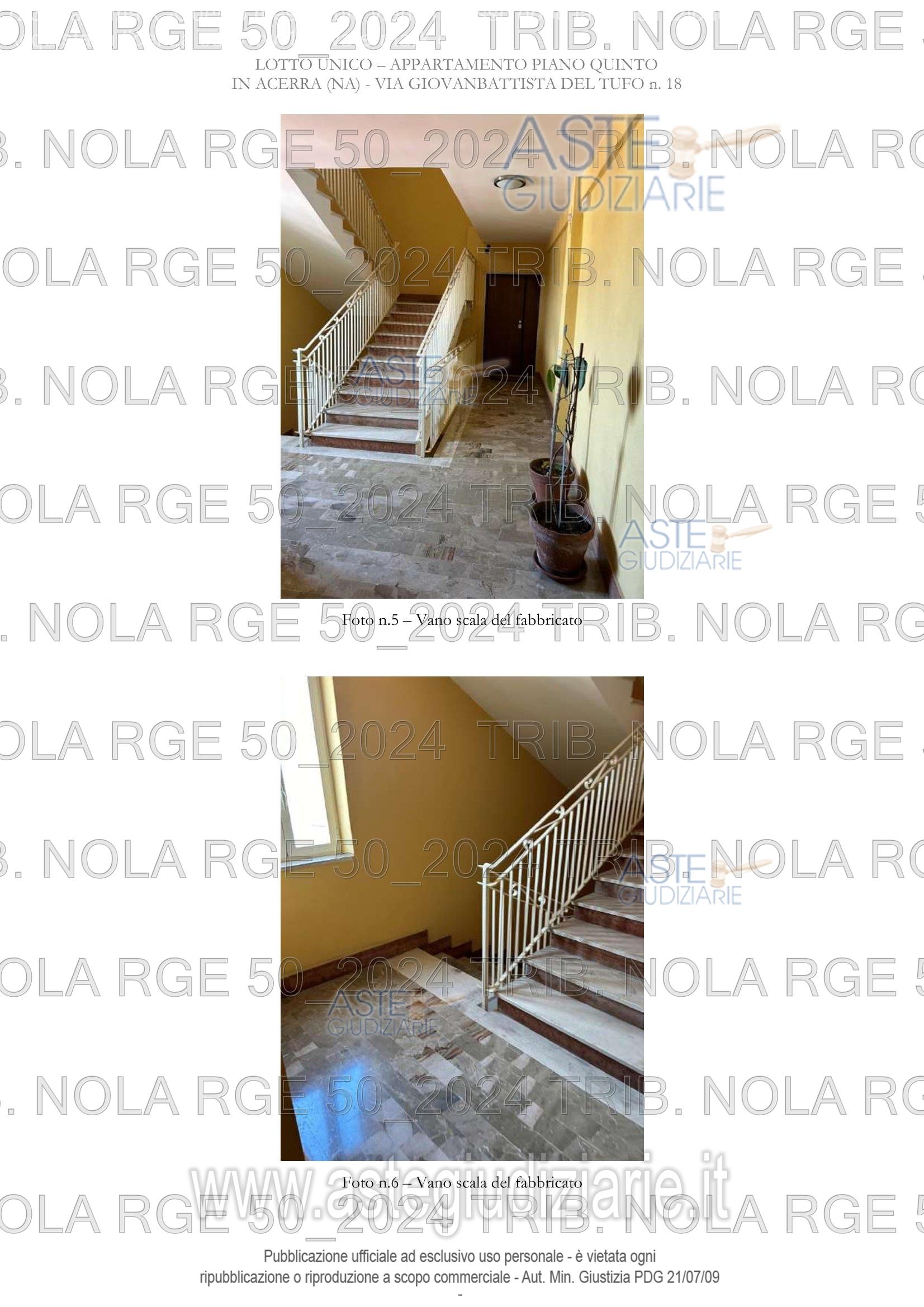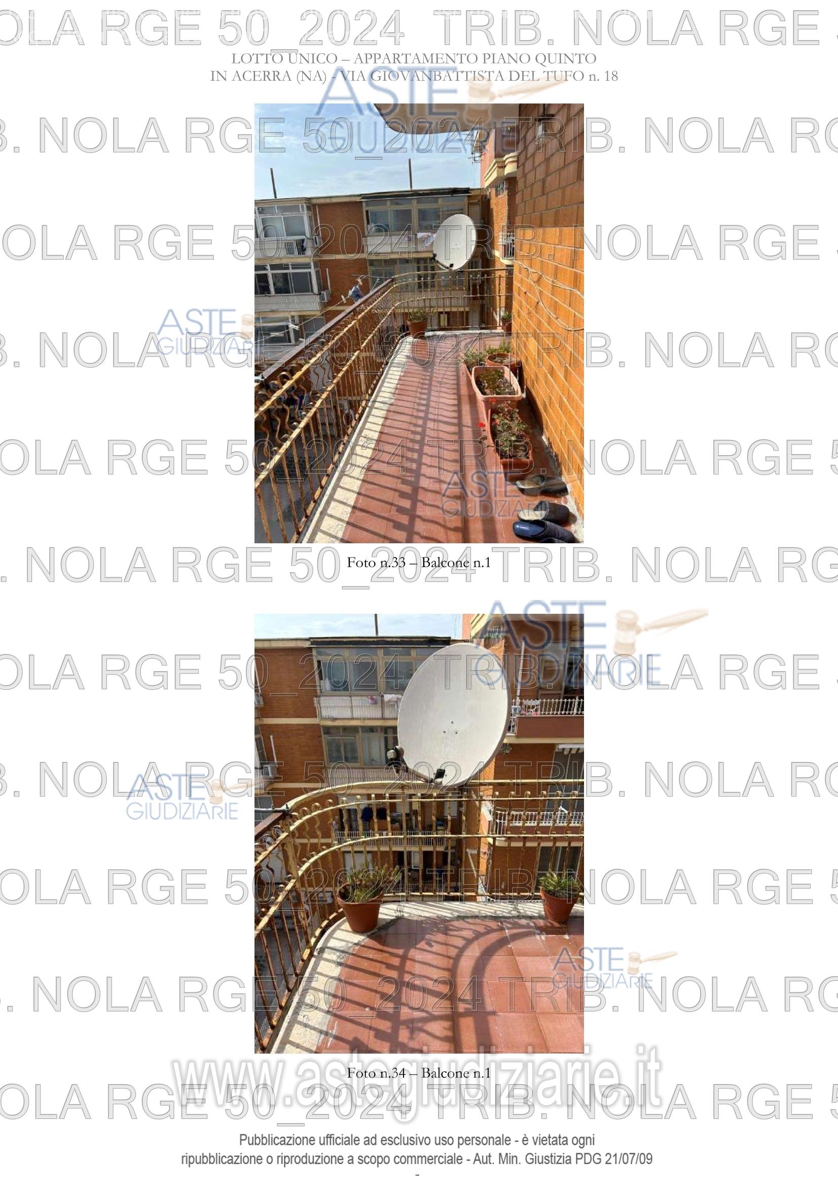 Vendita all'asta Senza incanto, con gara telematica asincrona - LOTTO UNICO: Piena ed intera proprietà di immobile ubicato in Acerra (NA) alla via Giovanbattista del Tufo n. 18, scala C, int. 10, identificato al N.C.E.U. del Comune di Acerra al Foglio 53, Part. 431, Sub 74, Cat. A/2, Classe 4, Consistenza 4,5 vani, R.C. € 278,89. Prezzo base € 71.250,00 (offerta minima € 53.437,50). Data inizio operazioni di vendita: 11/11/2025 ore 17:00. Giudice Miriam Valenti. Professionista delegato alla vendita Avv. Velia Gallo - Email "velia.gallo@alice.it"; Cell. 3382790177; Tel. 0810147439. Custode Giudiziario Avv. Velia Gallo - Email "velia.gallo@alice.it"; Cell. 3382790177; Tel. 0810147439. Rif. Tribunale di Nola - Espropriazione immobiliare (cartabia) n. 50/2024