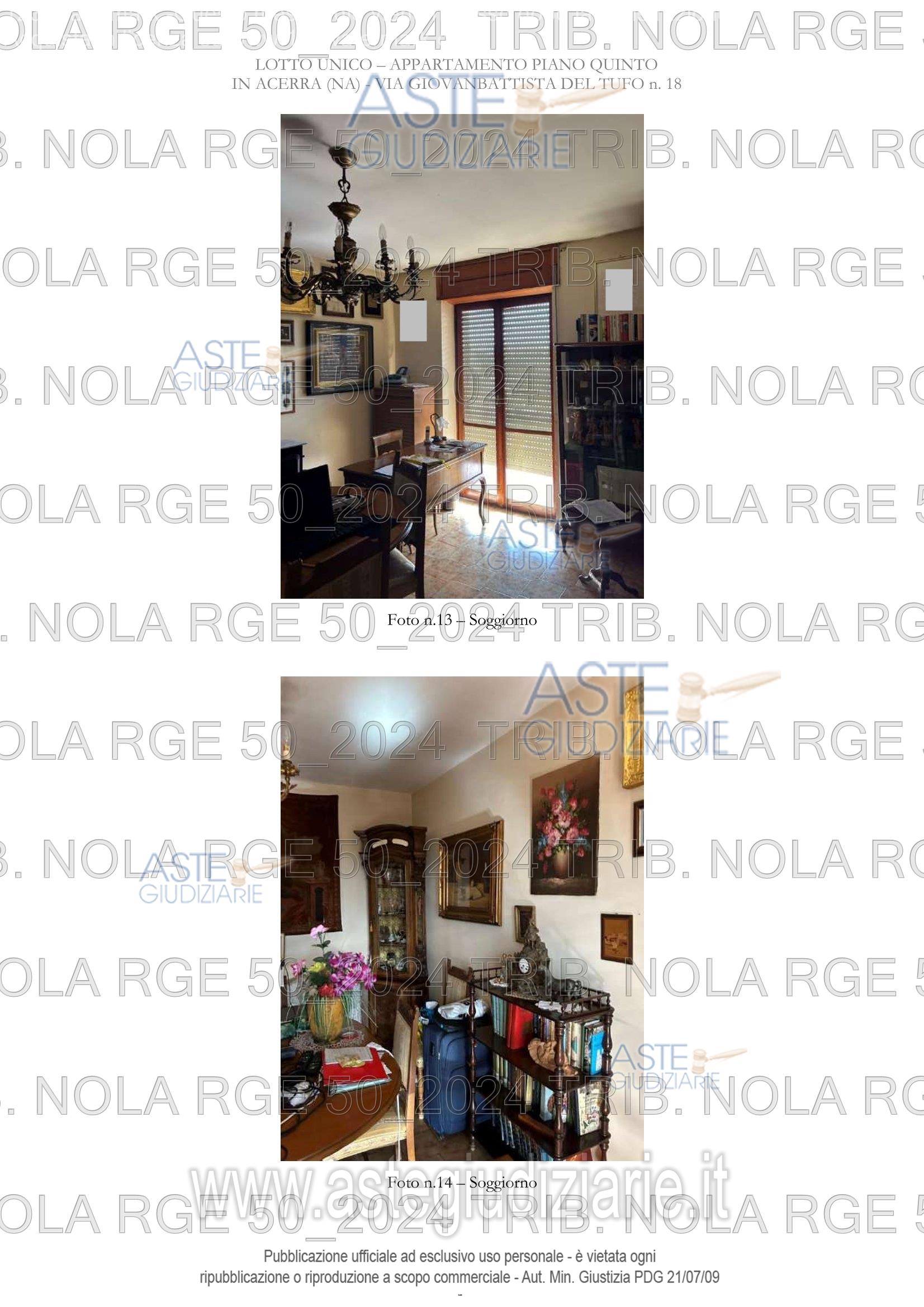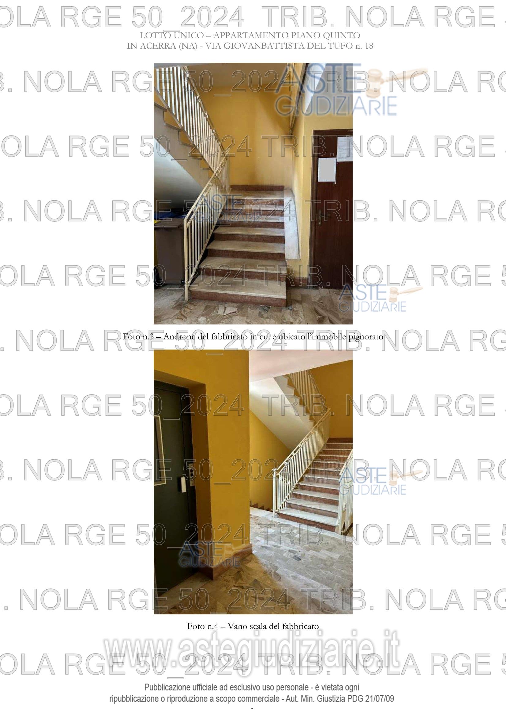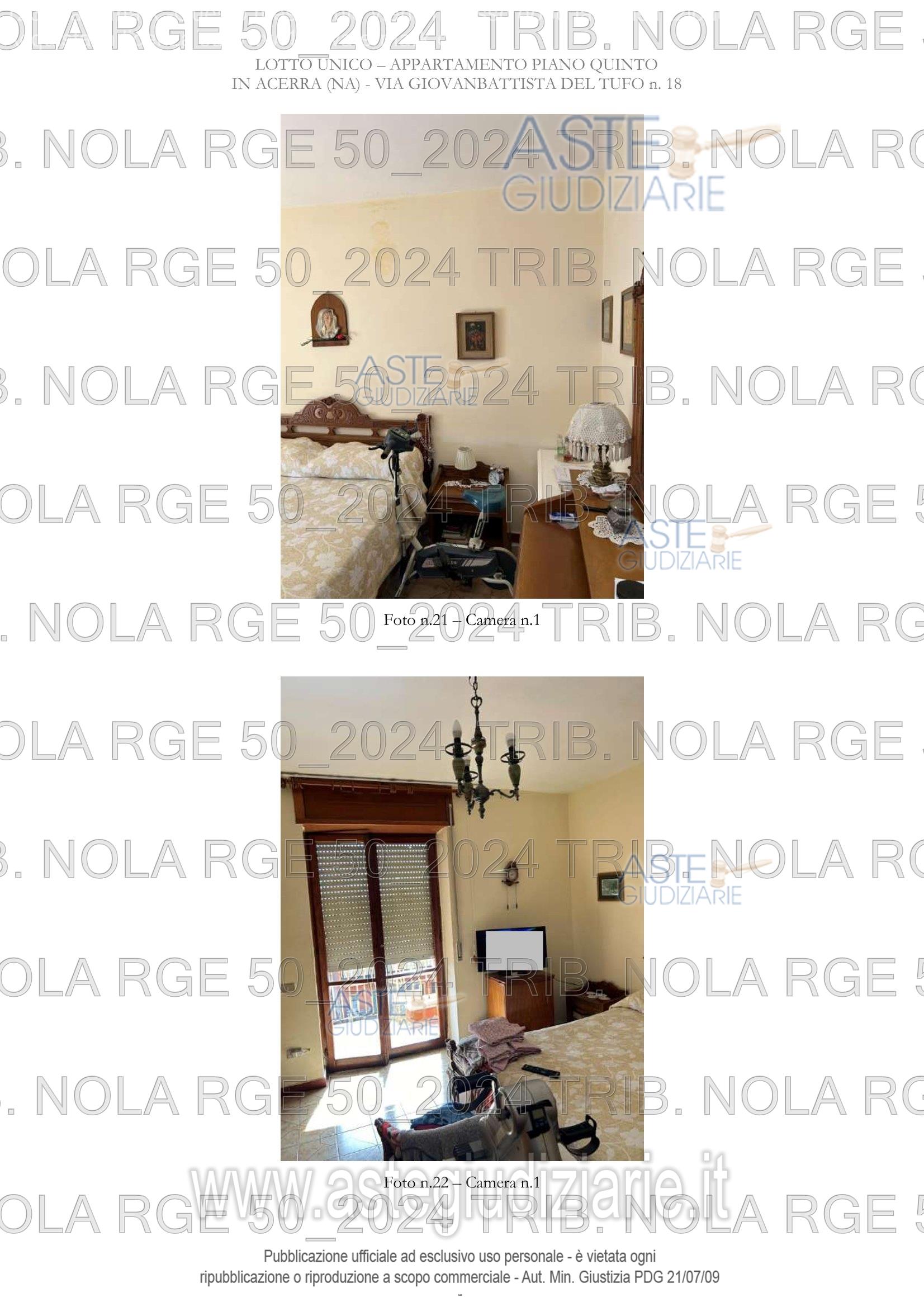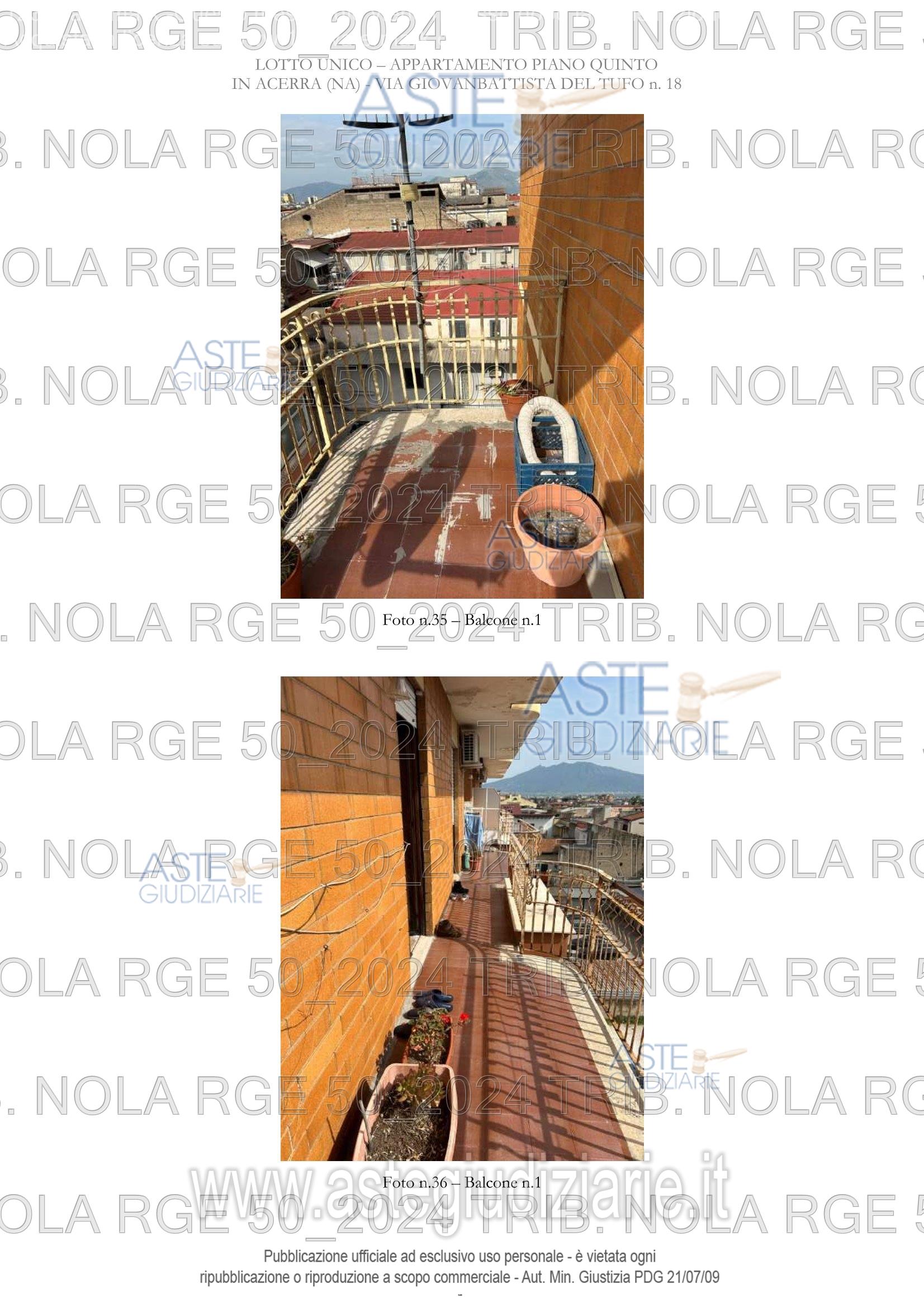 Vendita all'asta Senza incanto, con gara telematica asincrona - LOTTO UNICO: Piena ed intera proprietà di immobile ubicato in Acerra (NA) alla via Giovanbattista del Tufo n. 18, scala C, int. 10, identificato al N.C.E.U. del Comune di Acerra al Foglio 53, Part. 431, Sub 74, Cat. A/2, Classe 4, Consistenza 4,5 vani, R.C. € 278,89. Prezzo base € 71.250,00 (offerta minima € 53.437,50). Data inizio operazioni di vendita: 11/11/2025 ore 17:00. Giudice Miriam Valenti. Professionista delegato alla vendita Avv. Velia Gallo - Email "velia.gallo@alice.it"; Cell. 3382790177; Tel. 0810147439. Custode Giudiziario Avv. Velia Gallo - Email "velia.gallo@alice.it"; Cell. 3382790177; Tel. 0810147439. Rif. Tribunale di Nola - Espropriazione immobiliare (cartabia) n. 50/2024