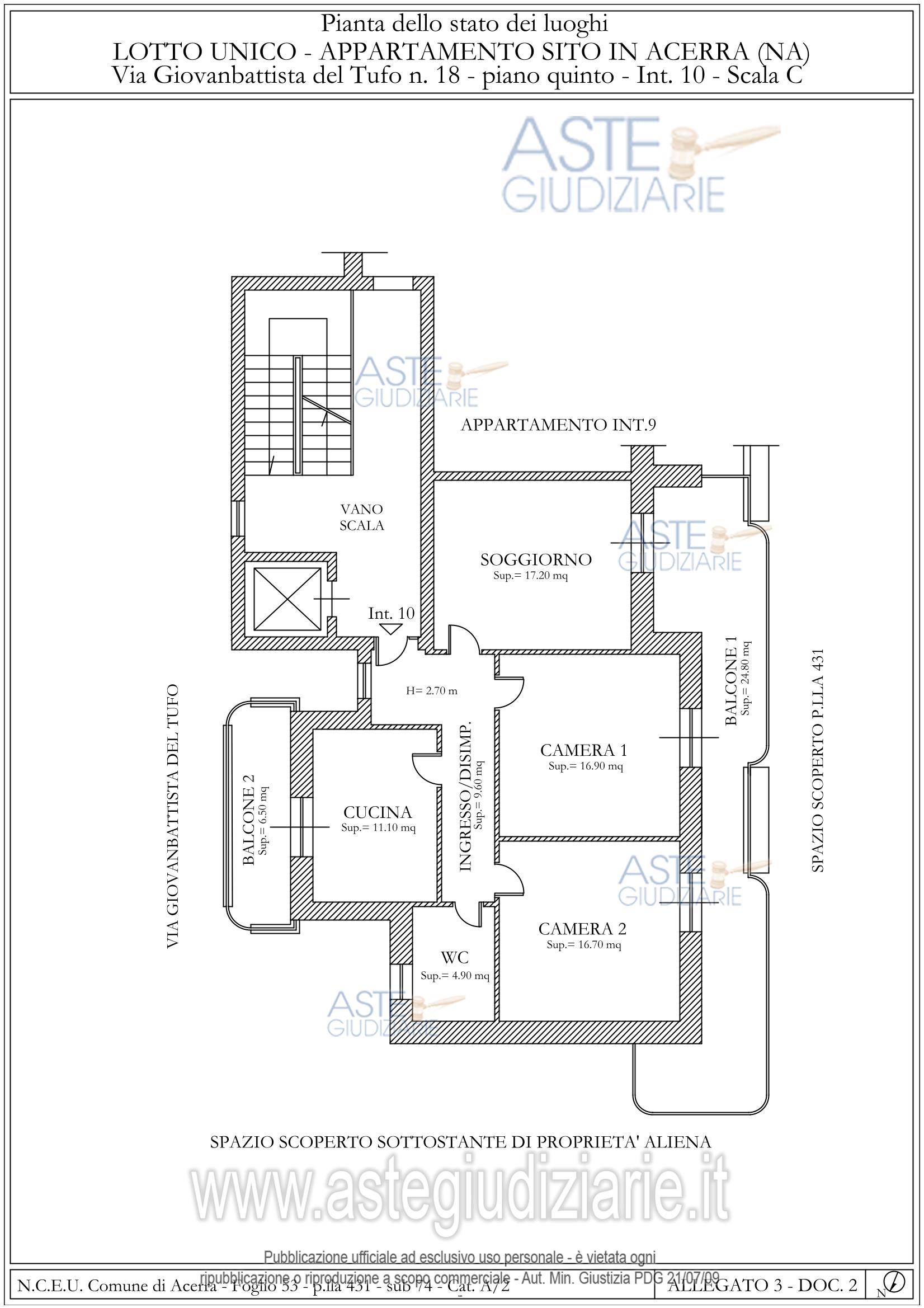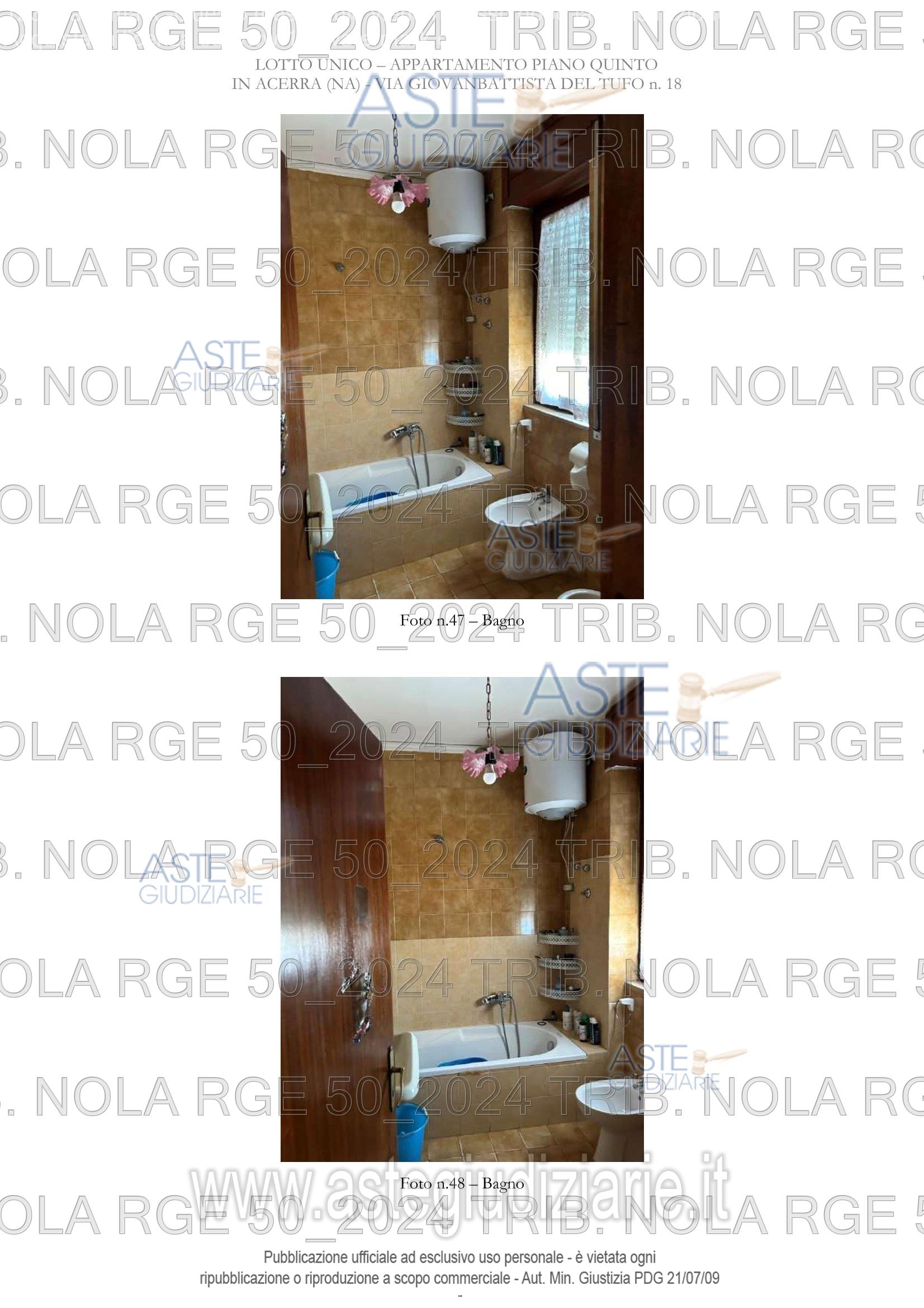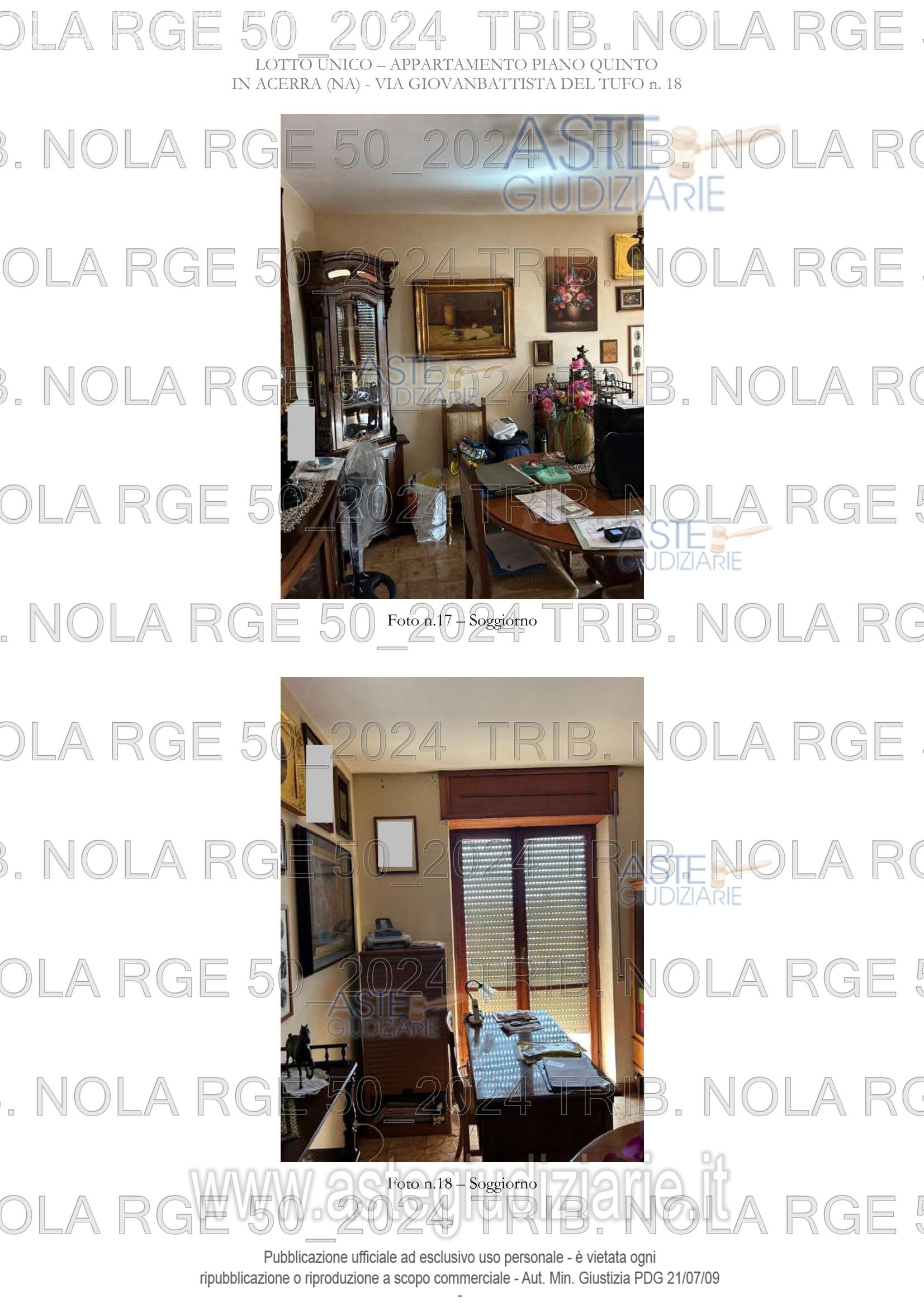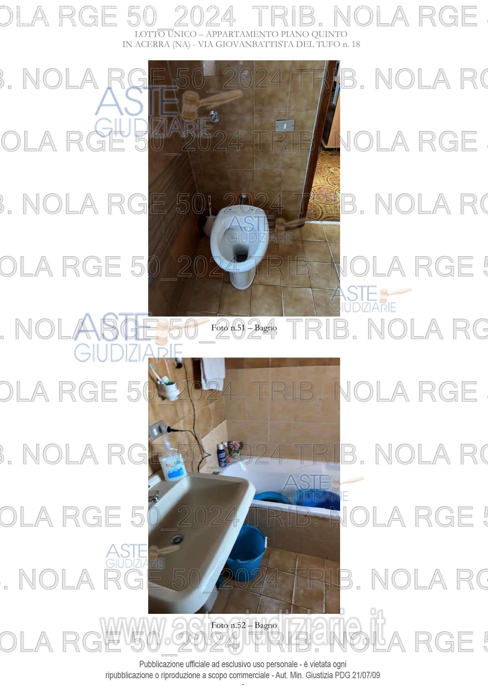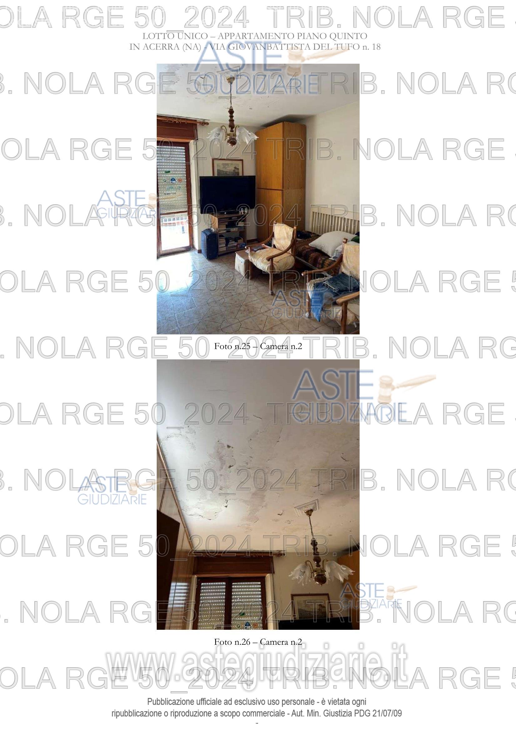 Vendita all'asta Senza incanto, con gara telematica asincrona - LOTTO UNICO: Piena ed intera proprietà di immobile ubicato in Acerra (NA) alla via Giovanbattista del Tufo n. 18, scala C, int. 10, identificato al N.C.E.U. del Comune di Acerra al Foglio 53, Part. 431, Sub 74, Cat. A/2, Classe 4, Consistenza 4,5 vani, R.C. € 278,89. Prezzo base € 71.250,00 (offerta minima € 53.437,50). Data inizio operazioni di vendita: 11/11/2025 ore 17:00. Giudice Miriam Valenti. Professionista delegato alla vendita Avv. Velia Gallo - Email "velia.gallo@alice.it"; Cell. 3382790177; Tel. 0810147439. Custode Giudiziario Avv. Velia Gallo - Email "velia.gallo@alice.it"; Cell. 3382790177; Tel. 0810147439. Rif. Tribunale di Nola - Espropriazione immobiliare (cartabia) n. 50/2024
