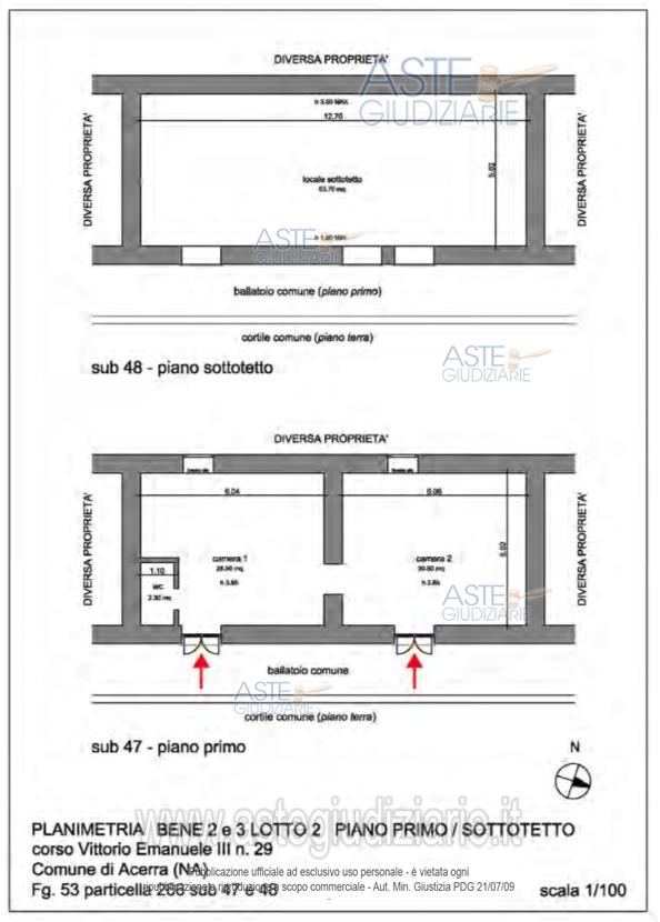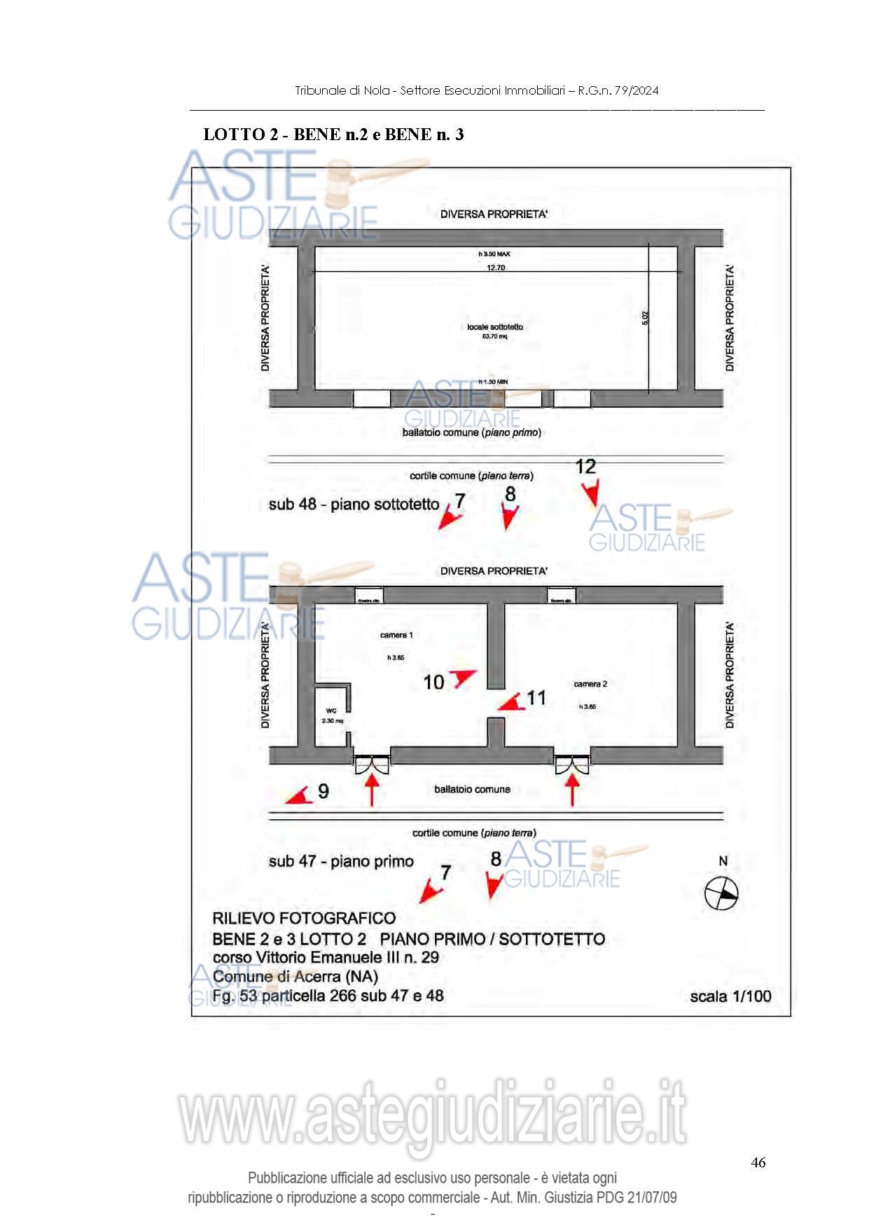Vendita all'asta Senza incanto, con gara telematica asincrona - LOTTO 2: Bene 2 - diritto di proprietà per la quota di 1/1 di appartamento in Acerra (NA), al Corso Vittorio Emanuele II n. 29 (ex 25), piano 1; Bene 3 - diritto di proprietà per la quota di 1/1 di soffitta in Acerra (NA), al Corso Vittorio Emanuele II n. 29 (ex 25) piano 2. Prezzo base € 87.234,00 (offerta minima € 65.425,50). Data inizio operazioni di vendita: 07/07/2026 ore 15:00. Professionista delegato alla vendita Avv. Lucia Cerqua - Email "avv.luciacerqua@hotmail.it"; Cell. 3493555470; Tel. 812159462. Custode Giudiziario Avv. Lucia Cerqua - Email "avv.luciacerqua@hotmail.it"; Cell. 3493555470; Tel. 812159462. Rif. Tribunale di Nola - Espropriazione immobiliare (cartabia) n. 79/2024