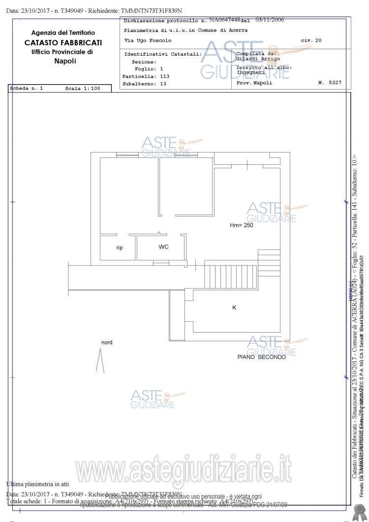 Vendita all'asta Senza incanto - LOTTO UNICO: Piena proprietà dell’appartamento ubicato nel Comune di Acerra alla via Ugo Foscolo n. 20, piano 2 costituito da un sottotetto composto da ingresso/soggiorno, piccolo terrazzino, cucina/pranzo, 2 camere, bagno. Superficie convenzionale complessiva 78,56 mq ca.Il bene si trova in condizioni di uso avanzato, privo di alcuni infissi, libero nel possesso della Custodia. Prezzo base € 25.000,00 (offerta minima € 18.750,00). Data vendita 11/02/2026 ore 10:30. Professionista delegato alla vendita Avv. Giorgio Parisi - Email "info.avv.giorgioparisi@gmail.com"; Tel. 0817877548. Custode Giudiziario Avv. Giorgio Parisi - Email "info.avv.giorgioparisi@gmail.com"; Tel. 0817877548. Rif. Tribunale di Nola - Esecuzione immobiliare post legge 80 n. 291/2016