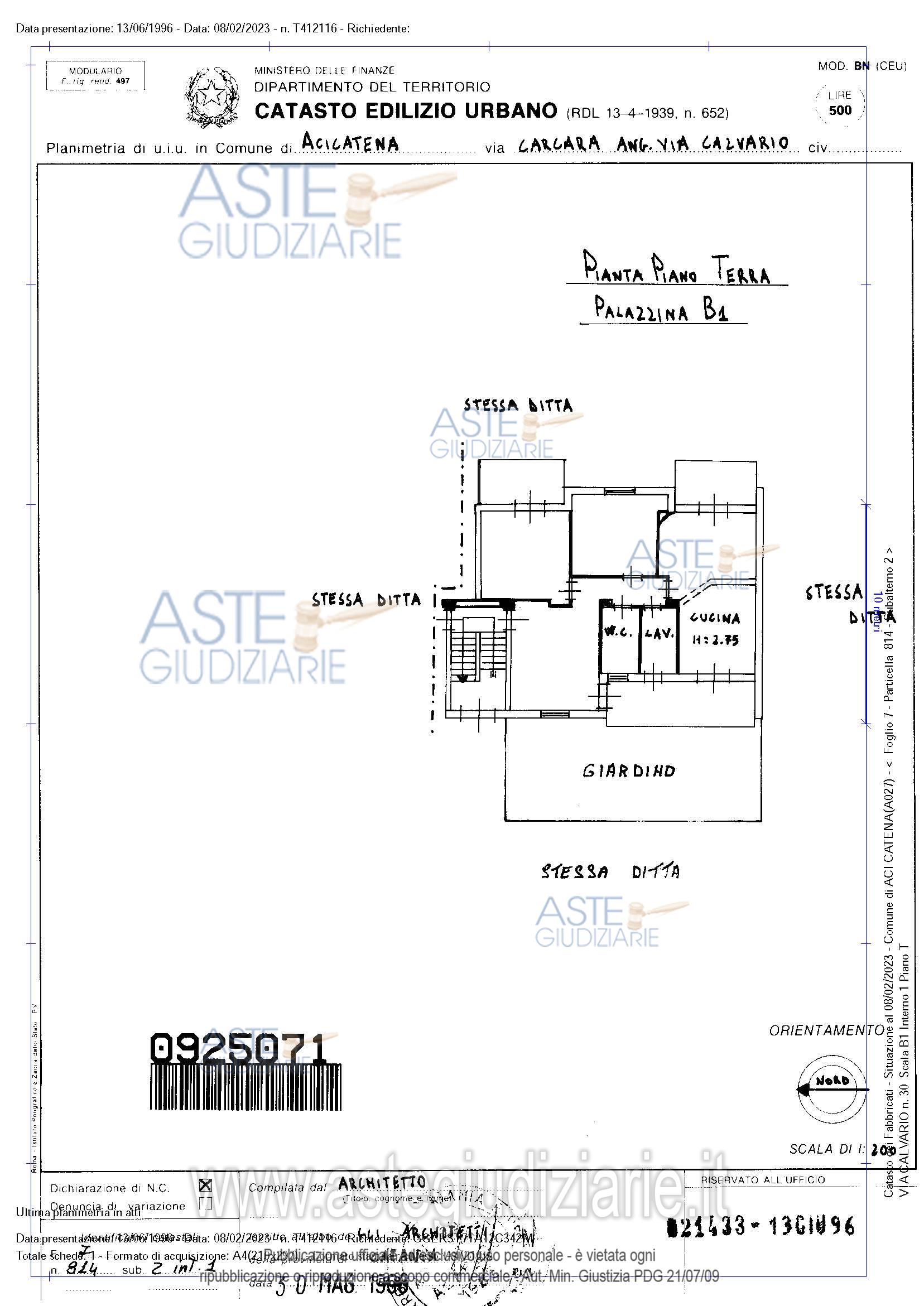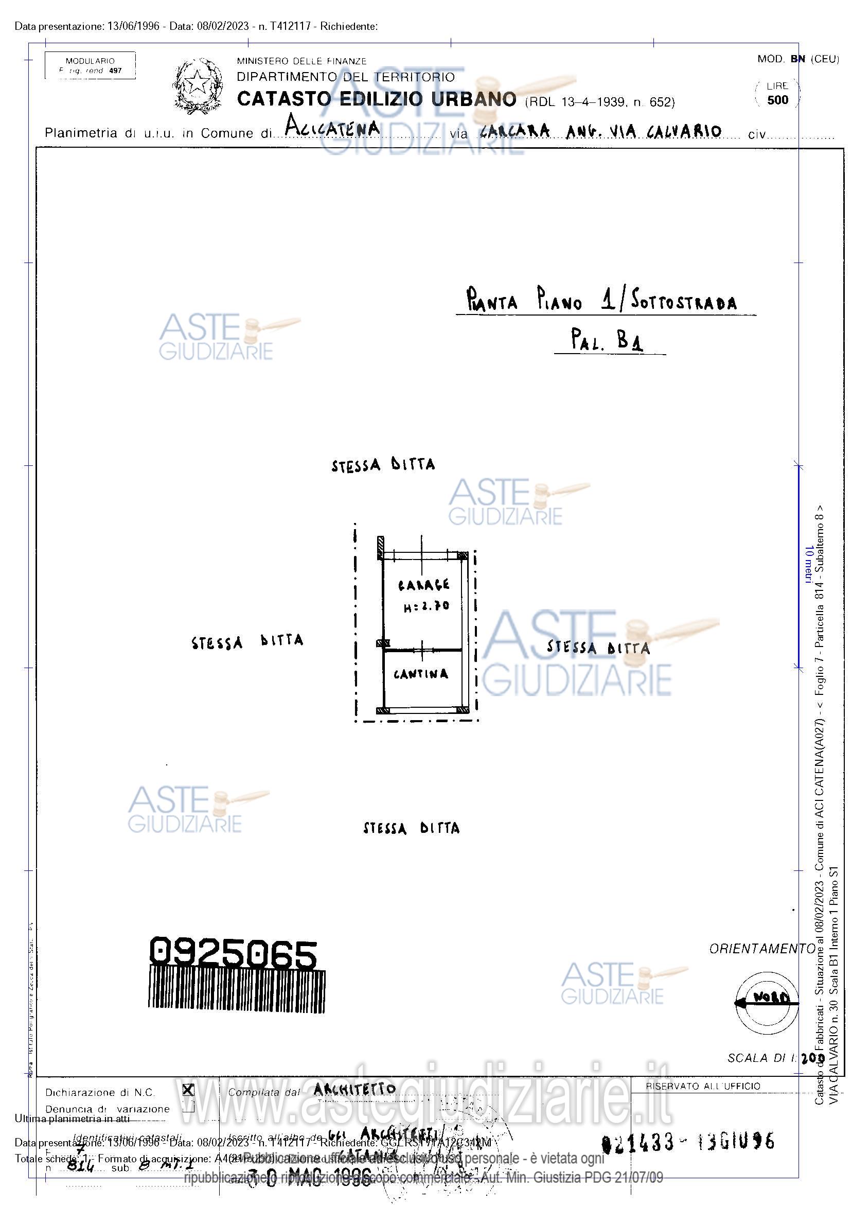 Vendita all'asta Senza incanto, con gara telematica sincrona mista - LOTTO 1: Piena proprietà su appartamento civile abitazione, P.T. scala B1 int.1, Aci Catena, via Calvario n. 30, C.F. f. 7, part. 814, sub. 2, categ. A/2, cl.6, vani 5,5; garage, P.S 1 scala B1 int.1 Aci Catena, via Calvario n. 30, C.F. al f. 7, part. 814, sub. 8, categ. C/6, cl.5, di 27 mq; parcheggio all’aperto, P.S1 scala C int.9 Aci Catena via Calvario n. 30, censito in C.F. al f. 7, part. 814, sub. 150, categ. C/6, cl.3, di 56 mq. Prezzo base € 68.850,00 (offerta minima € 68.850,00). Data vendita 21/01/2026 ore 11:30. Giudice Roberto Paolo Cordio. Curatore Avv. Elisabetta Cilia - Email "elisabetta.m.cilia@gmail.com"; Cell. 3381948104. Rif. Tribunale di Catania - Liquidazione controllata(cci) n. 8/2022