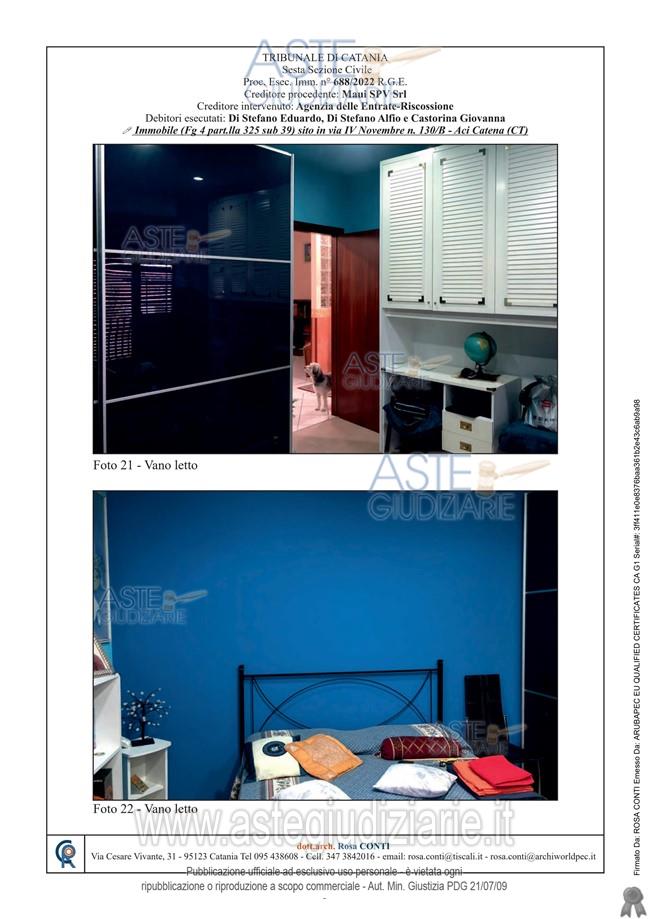 Vendita all'asta Senza incanto, con gara telematica sincrona - LOTTO UNICO:  Lotto unico composto da: Appartamento ai piani secondo e terzo con ingresso da Via IV novembre n. 130/B, interno 6, di vani 6; Garage al piano primo sottostrada con ingresso da Via IV novembre n. 136/A, interno 4, di circa 34 metri quadrati. Prezzo base € 92.000,00 (offerta minima € 69.000,00). Data vendita 07/11/2025 ore 10:00. Giudice Venera Fazio. Professionista delegato alla vendita Avv. Antonio Sabella - Email "avv.antoniosabella@gmail.com"; Tel. 095507762. Custode Giudiziario  Avv. Antonio Sabella - Email "avv.antoniosabella@gmail.com"; Tel. 095507762.  Rif. Tribunale di Catania - Esecuzione immobiliare post legge 80 n. 688/2022