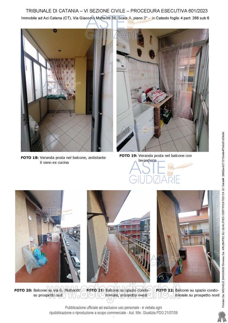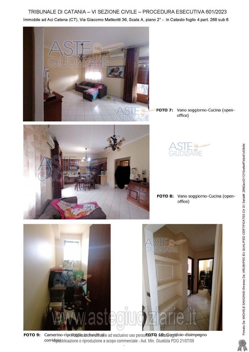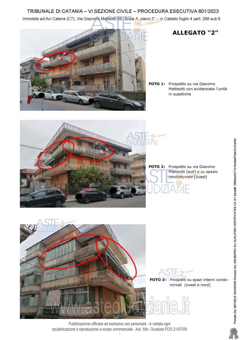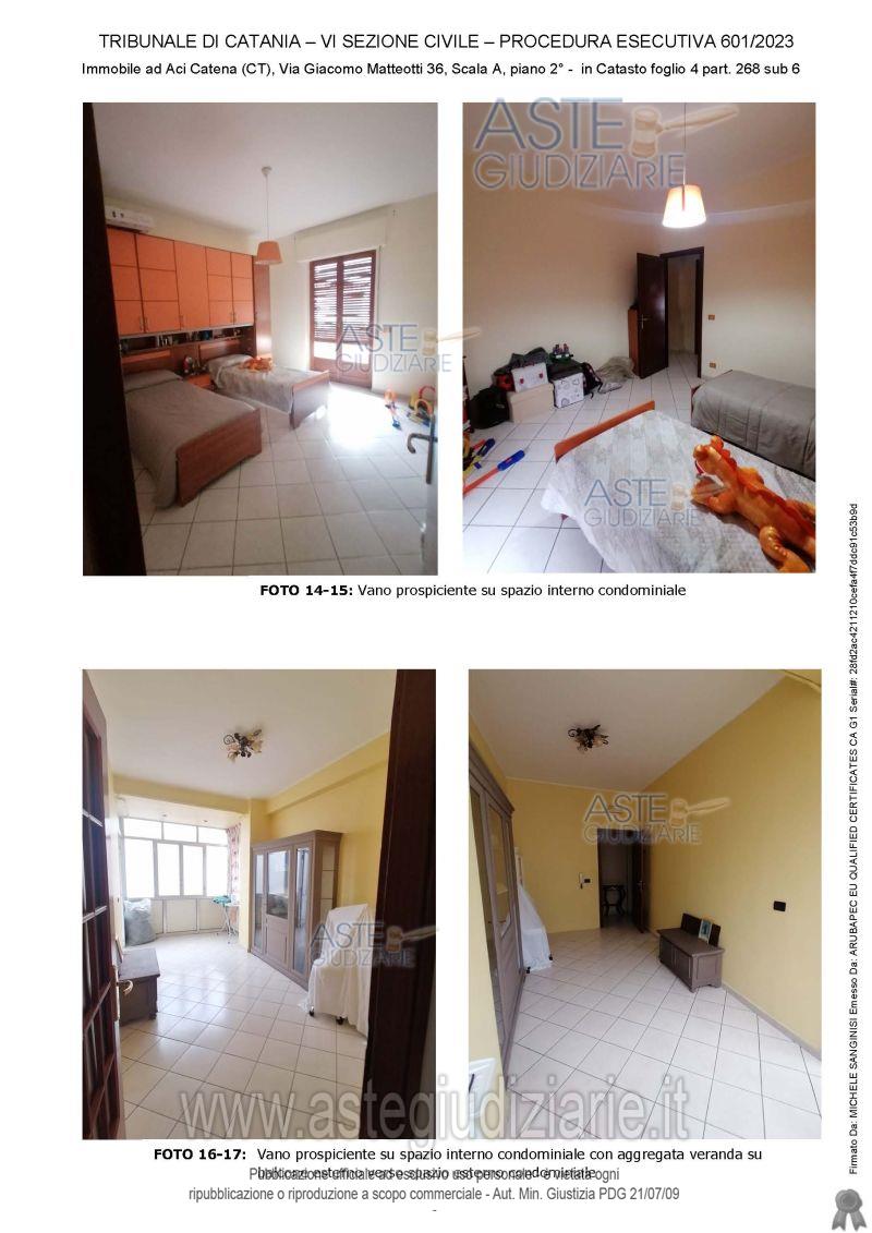 Vendita all'asta Senza incanto, con gara telematica sincrona - LOTTO UNICO: APPARTEMENTO SITO IN ACI CATENA, VIA G. MATTEOTTI N. 36, PIANO SECONDO MQ 118 . Prezzo base € 93.500,00 (offerta minima € 70.125,00). Data vendita 27/05/2026 ore 17:00. Giudice Dott. Maria Acagnino. Professionista delegato alla vendita Avv. Sabrina Sotera - Email "sabrisotera@tiscali.it"; Cell. 3513060487; Tel. 095531780. Custode Giudiziario Avv. Sabrina Sotera - Email "sabrisotera@tiscali.it"; Cell. 3513060487; Tel. 095531780. Rif. Tribunale di Catania - Espropriazione immobiliare (cartabia) n. 601/2023
