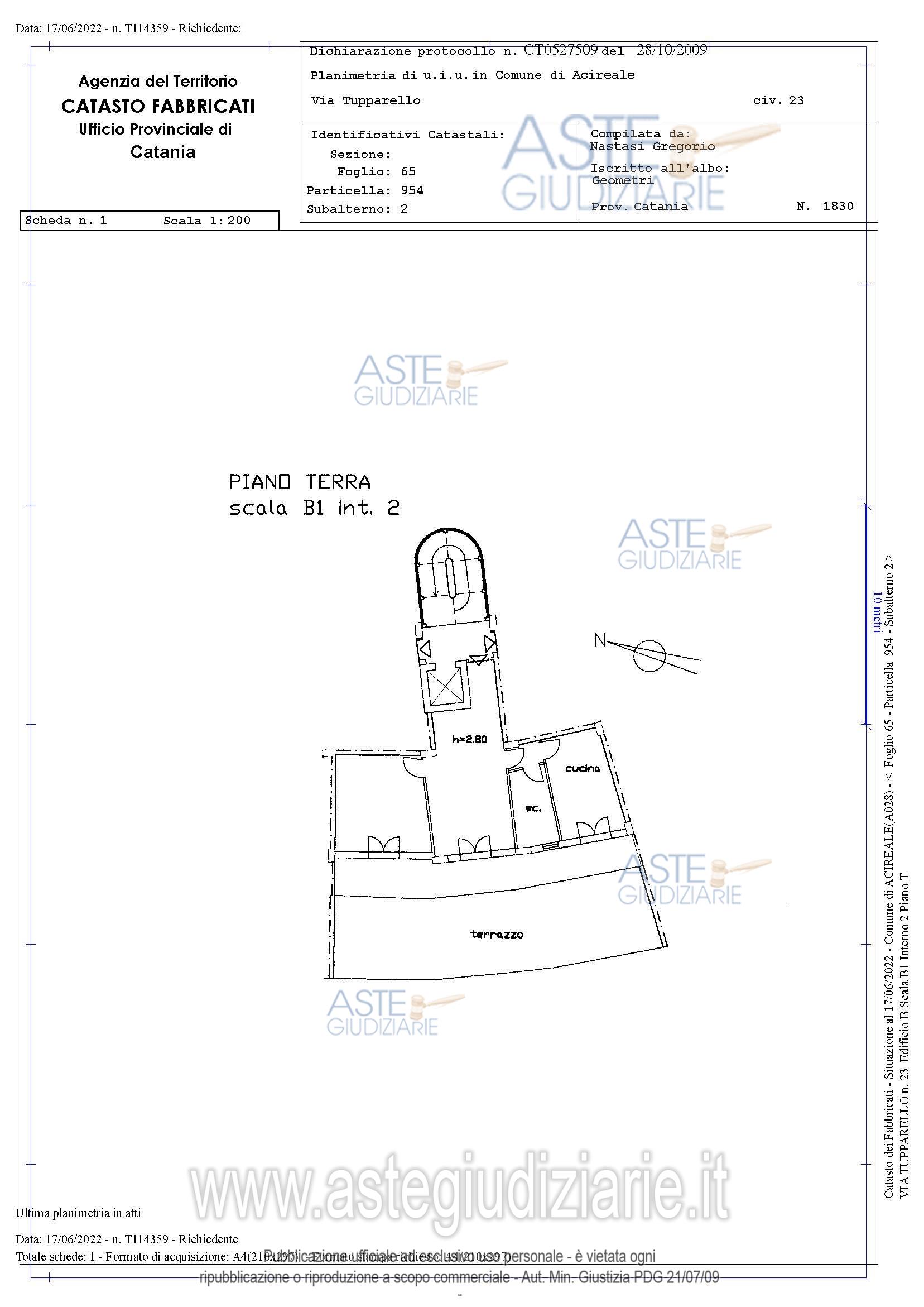 Vendita all'asta Senza incanto, con gara telematica sincrona mista - LOTTO UNICO: LOTTO UNICO - Appartamento per civile abitazione facente parte del complesso edilizio denominato “Le Querce”, sito nel Comune di Acireale, in via Tupparello n. 23, piano terra rialzato, scala B1, int. 2, composto da ampio ingresso-soggiorno, altri due vani e servizi, per una superficie netta di mq. 63,00 circa, il balcone scoperto esposto sul lato ovest è collegato tramite tre gradini ad una terrazza scoperta. Prezzo base € 51.750,00 (offerta minima € 38.812,50). Data vendita 25/11/2025 ore 16:30. Professionista delegato alla vendita Avv. Concetto Arcidiacono - Email "cg.arcidiacono@libero.it"; Tel. 095388875. Custode Giudiziario Avv. Concetto Arcidiacono - Email "cg.arcidiacono@libero.it"; Tel. 095388875. Rif. Tribunale di Catania - Esecuzione immobiliare post legge 80 n. 487/2019