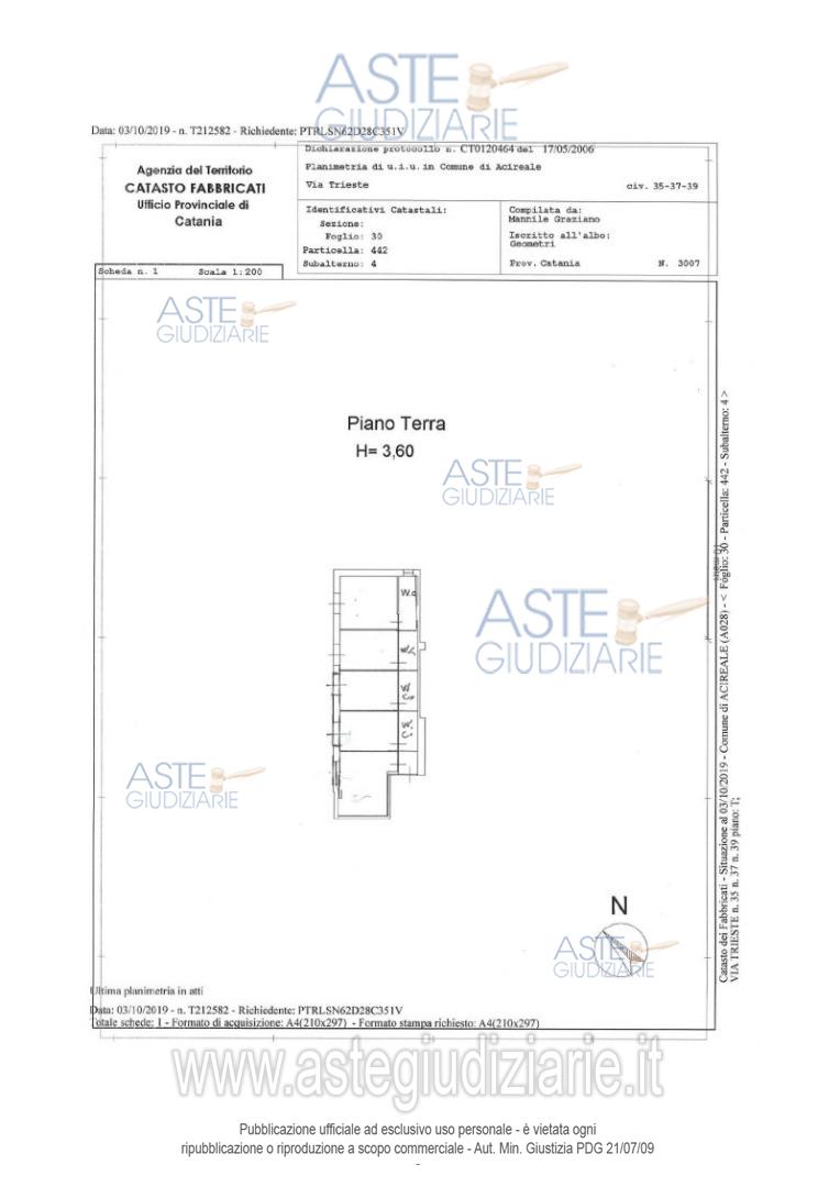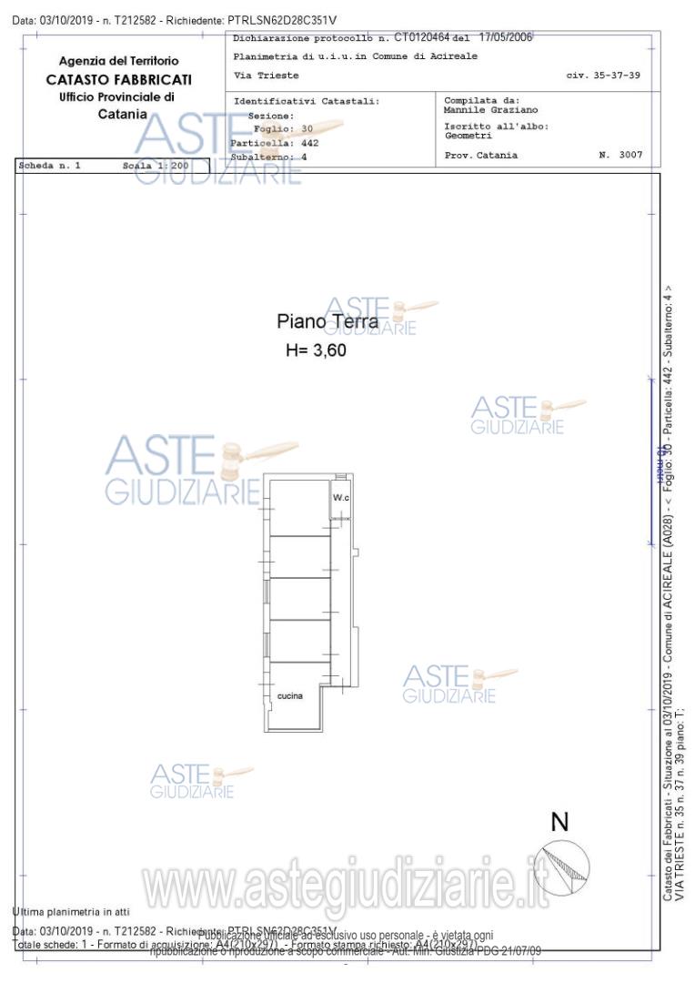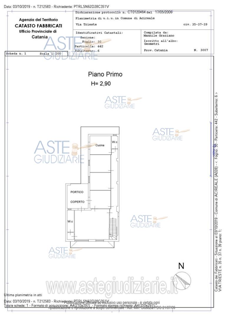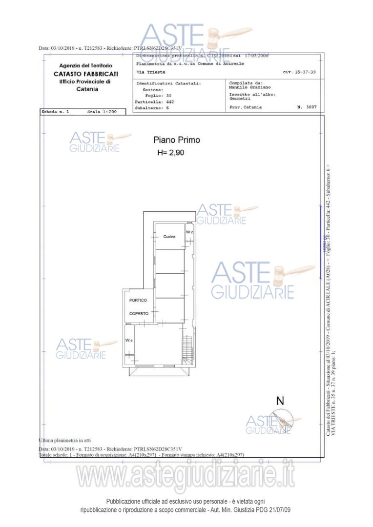 Vendita all'asta Senza incanto, con gara telematica asincrona - LOTTO UNICO: 1) intera piena proprietà dell'immobile ad uso abitativo in Acireale, frazione Scillichenti via Trieste nn. 35, 37, piano terra, in catasto al foglio di mappa 30, particella 442 sub. 4, catg. A/3, classe 7, vani 5,5, sup. cat. mq. 82. 2) intera piena proprietà dell'immobile ad uso abitativo in Acireale, frazione Scillichenti, via Trieste nn. 37, piano primo, in catasto al foglio di mappa 30, particella 442 sub. 6, catg. A/3, classe 7, vani 6, sup. cat. mq. 151. Prezzo base € 86.025,00 (offerta minima € 64.518,75). Data inizio operazioni di vendita: 11/06/2026 ore 10:30. Giudice Dott. Alessandra Bellia. Custode Giudiziario Avv. Andrea Minneci - Email "andreaminneci@yahoo.it"; Cell. 3898545429; Tel. 0957159789. Curatore Avv. Andrea Minneci. Rif. Tribunale di Catania - Fallimentare (nuovo rito) n. 114/2019