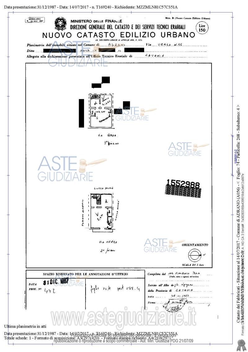Vendita all'asta Senza incanto, con gara telematica sincrona mista - LOTTO UNICO: Immobile sito in Adrano, via Verga 36, su due piani - secondo e terzo - mq81 circa. Prezzo base € 19.856,25 (offerta minima € 14.893,00). Data vendita 16/12/2025 ore 18:00. Professionista delegato alla vendita Avv. Enzo Daniele Ranno - Email "enzoranno@gmail.com"; Cell. 3389036807; Tel. 095504980. Custode Giudiziario Avv. Enzo Daniele Ranno - Email "enzoranno@gmail.com"; Cell. 3389036807; Tel. 095504980. Rif. Tribunale di Catania - Esecuzione immobiliare post legge 80 n. 618/2016