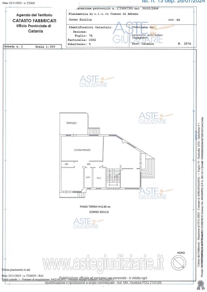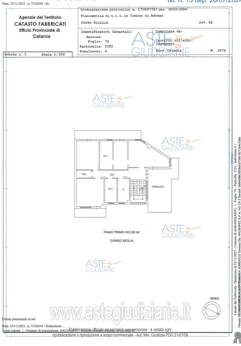Vendita all'asta Senza incanto, con gara telematica sincrona mista - LOTTO UNICO: Lotto unico. Fabbricato indipendente (immobile residenziale, categoria A/1, abitazione di tipo signorile) in Corso Sicilia, 64 – 95031 – ADRANO (CT), su quattro livelli (piano interrato, piano terra-rialzato, piano primo e piano secondo), con corte esterna e garage al piano interrato, cui si accede da via Alesa senza numero civico. La superficie utile abitabile dell’unità abitativa è di mq 463,5, la superficie scoperta è di 114,9 mq. Prezzo base € 218.000,00 (offerta minima € 163.500,00). Data vendita 13/05/2026 ore 11:00. Professionista delegato alla vendita Avv. Stefania Incontro - Email "incontrostefania@virgilio.it"; Cell. 3297030059; Tel. 3297030059. Custode Giudiziario Avv. Stefania Incontro - Email "incontrostefania@virgilio.it"; Cell. 3297030059; Tel. 3297030059. Rif. Tribunale di Catania - Esecuzione immobiliare post legge 80 n. 3/2019
