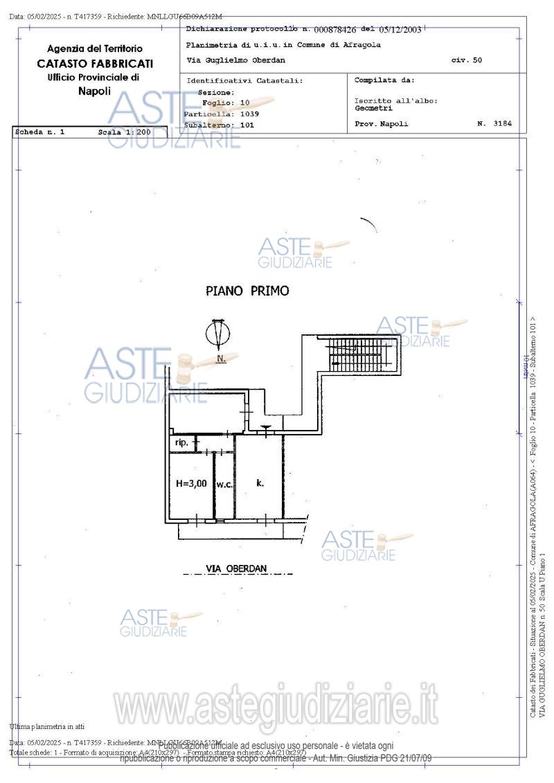 Vendita all'asta Senza incanto, con gara telematica asincrona - LOTTO UNICO: piena ed intera proprietà dell’appartamento in Afragola (NA) alla via Oberdan n. 60, composto da: cucina-soggiorno, due camere da letto, un ripostiglio, un bagno, disimpegno e due balconi. Il descritto stato dei luoghi non corrisponde alla consistenza catastale in ordine alla realizzazione di una veranda su parte del balcone a sud; vi è domanda di concessione edilizia in sanatoria; non risulta ordine di demolizione del bene. Prezzo base € 121.000,00 (offerta minima € 90.750,00). Data inizio operazioni di vendita: 14/04/2026 ore 15:00. Professionista delegato alla vendita Avv. Stefano Sorgente - Email "studiosorgenteaste@gmail.com"; Cell. 3334421542; Tel. 081649044. Custode Giudiziario Avv. Stefano Sorgente - Email "studiosorgenteaste@gmail.com"; Cell. 3334421542; Tel. 081649044. Rif. Tribunale di Napoli Nord - Espropriazione immobiliare (cartabia) n. 471/2024