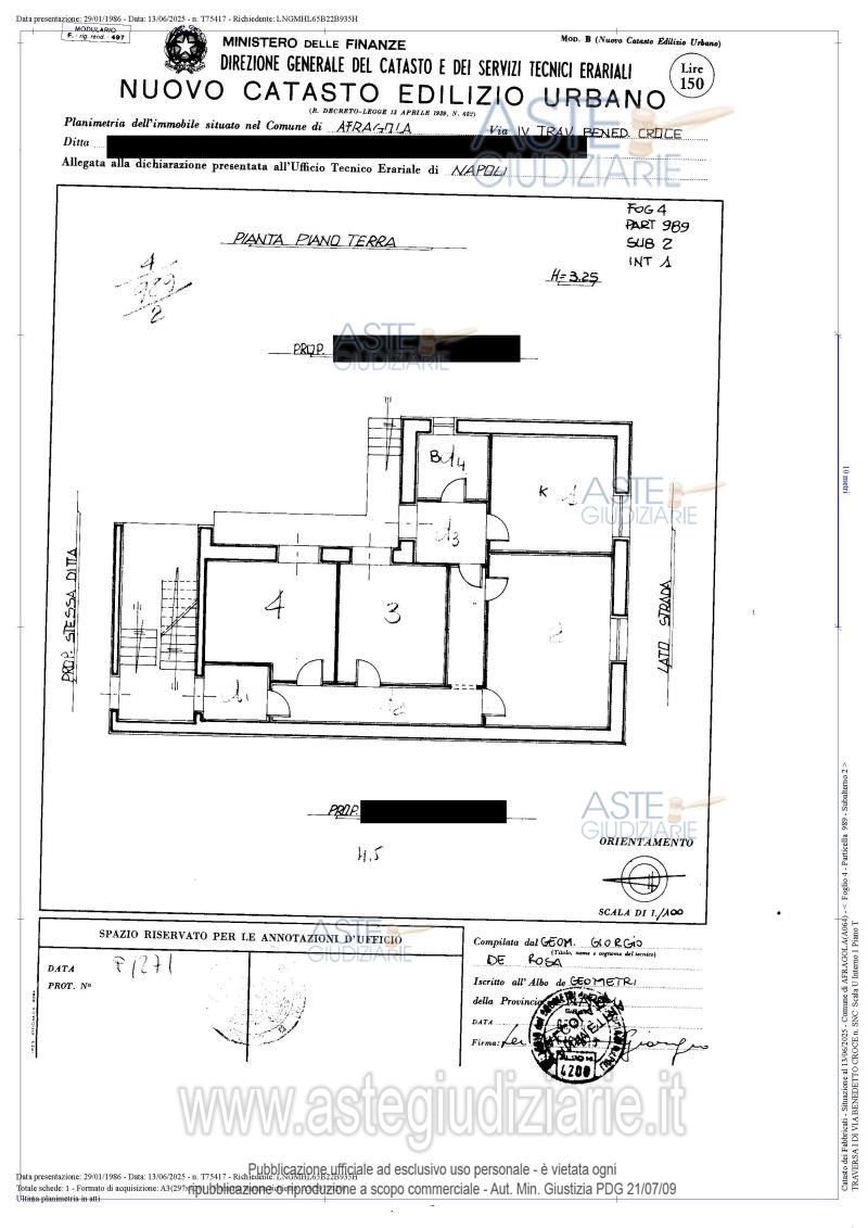 Vendita all'asta Senza incanto, con gara telematica asincrona - LOTTO UNICO: Piena ed intera proprietà immobile ubicato nel Comune di AFRAGOLA (NA) I Traversa via Benedetto Croce n. 14, piano Rialzato; Il bene è composto da ingresso, soggiorno-cucina, due corridoi, due camere da letto, wc, ripostiglio, ballatoio e veranda. Prezzo base € 145.000,00 (offerta minima € 108.750,00). Data inizio operazioni di vendita: 20/05/2026 ore 15:30. Giudice Dott. Annamaria Buffardo. Professionista delegato alla vendita Dott. Enrico Villano - Email "enrico.villano@nexuspartners.it"; Cell. 3287077339. Custode Giudiziario Dott. Enrico Villano - Email "enrico.villano@nexuspartners.it"; Cell. 3287077339. Rif. Tribunale di Napoli Nord - Espropriazione immobiliare (cartabia) n. 24/2025