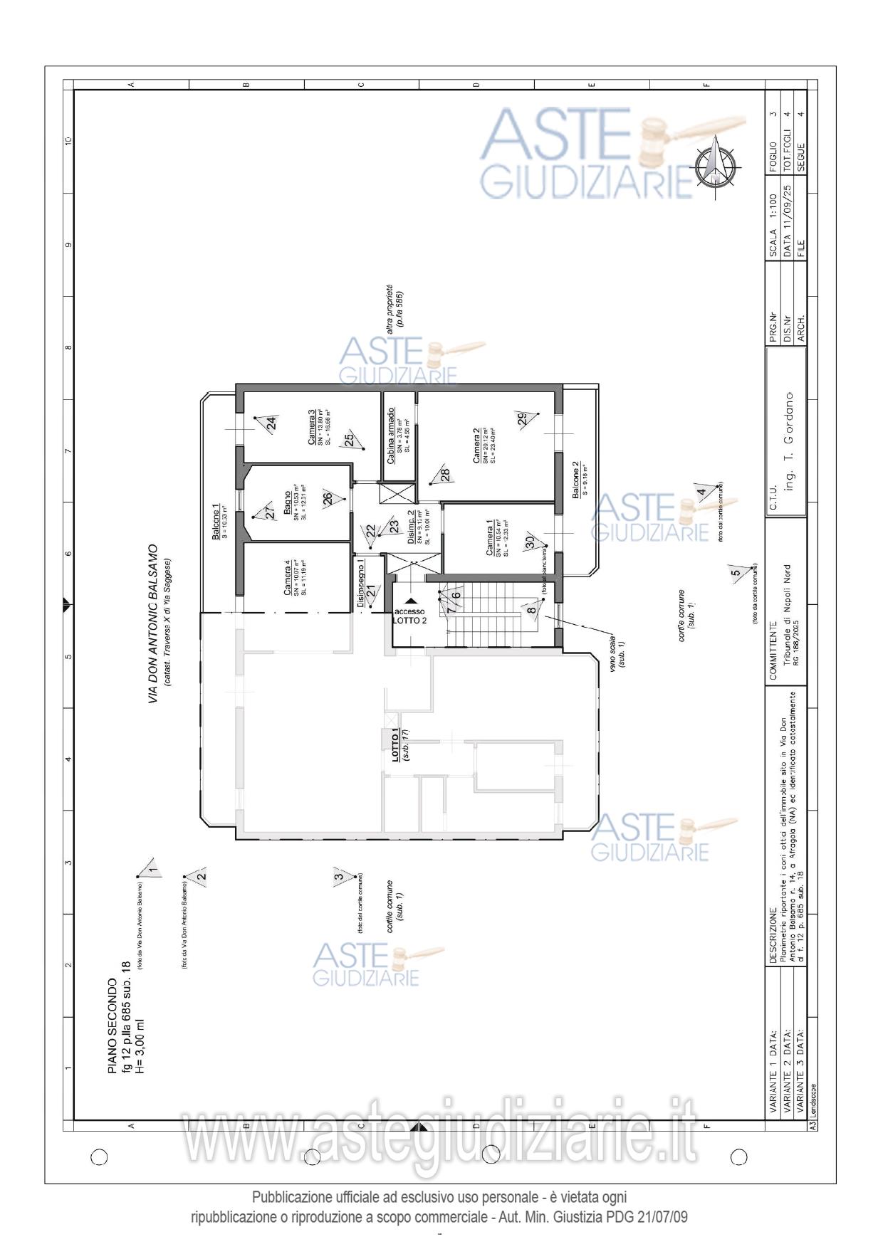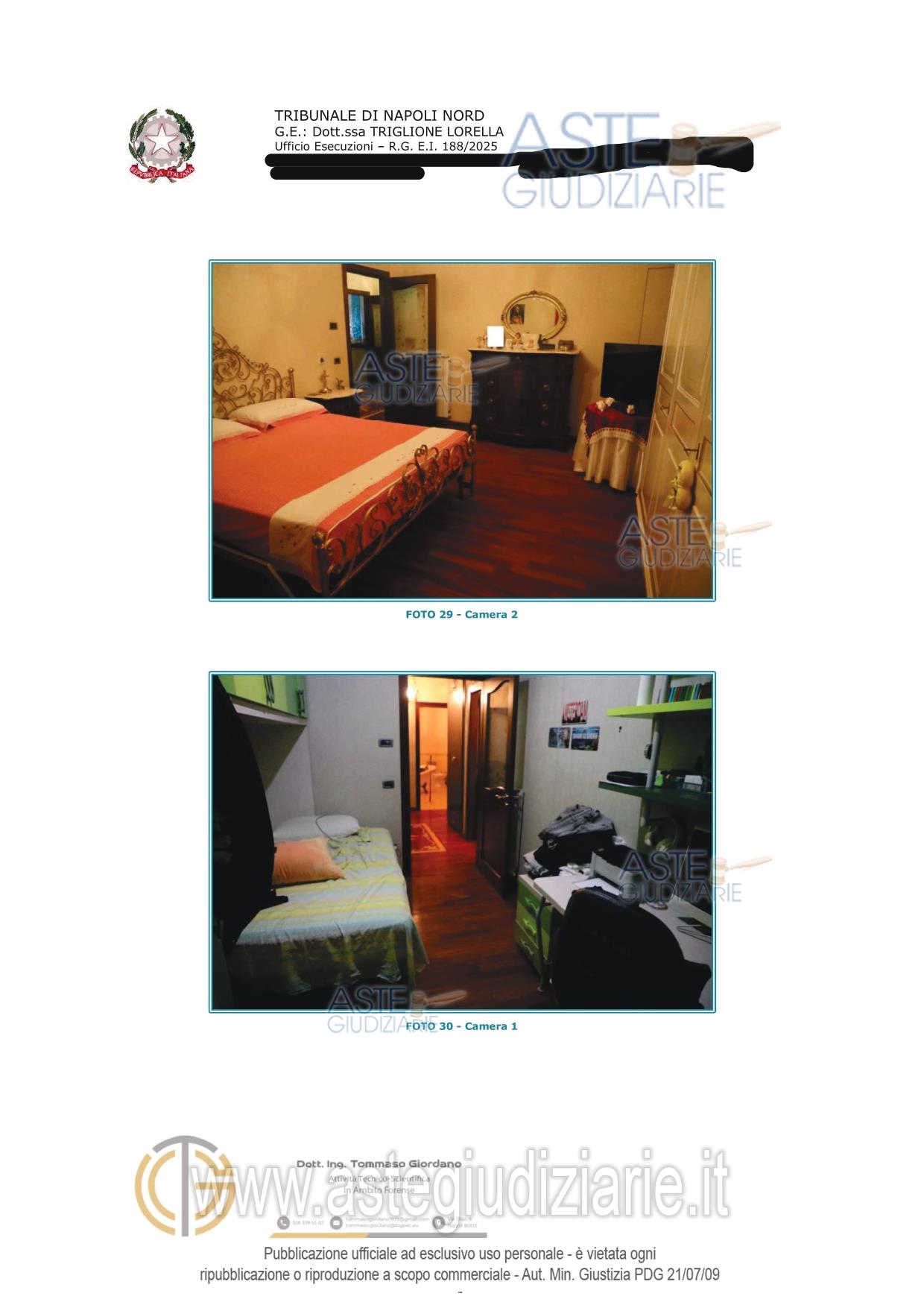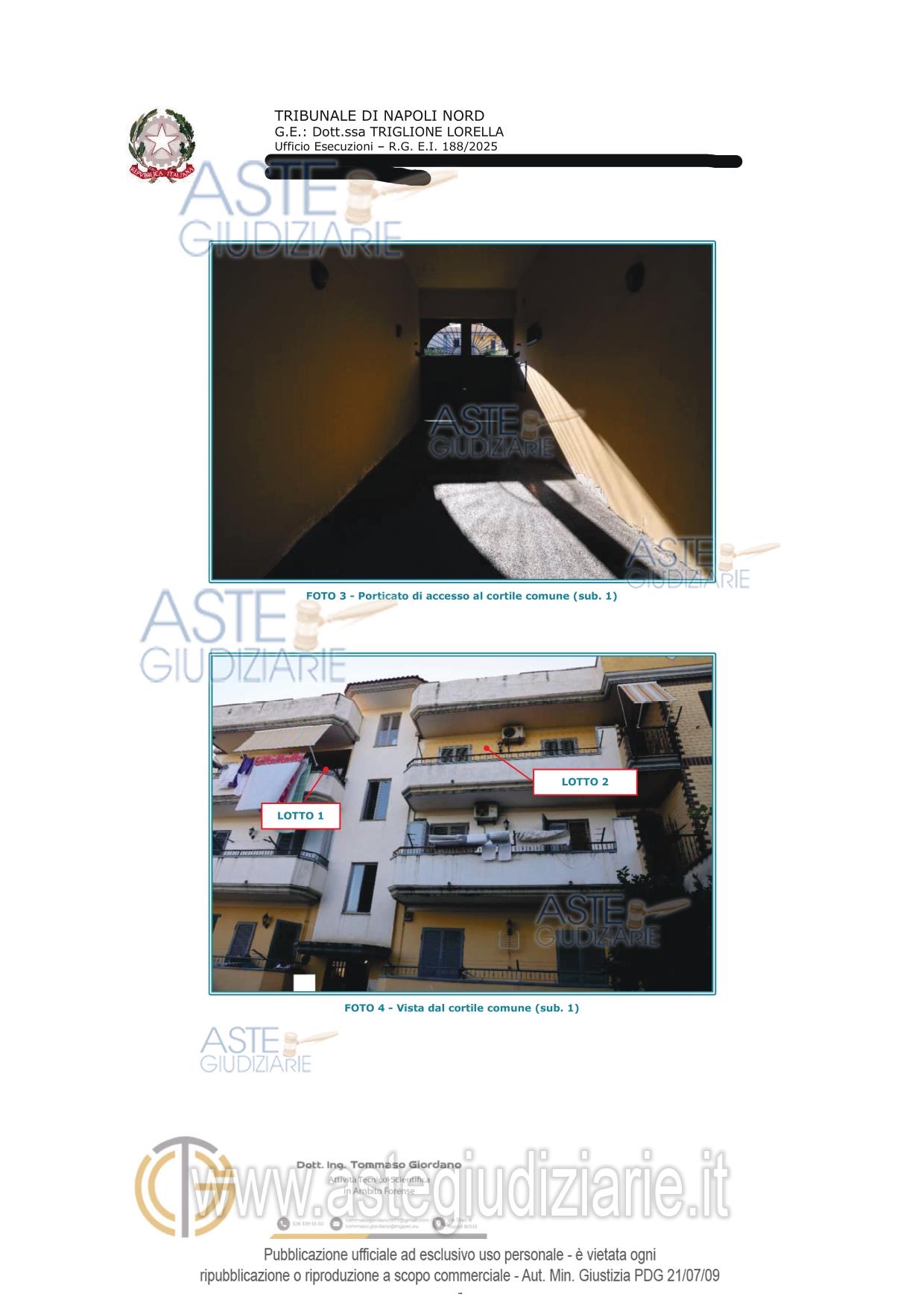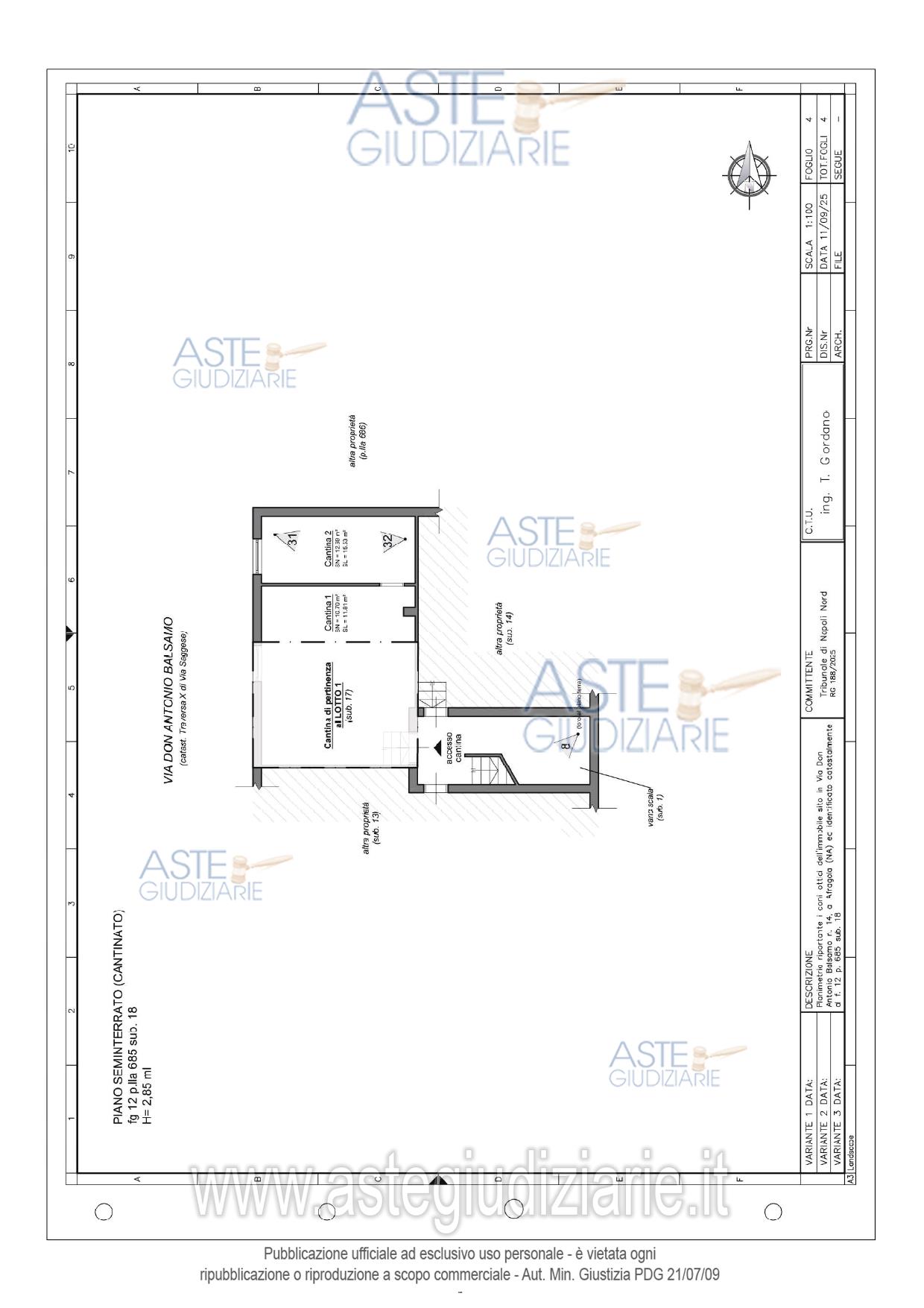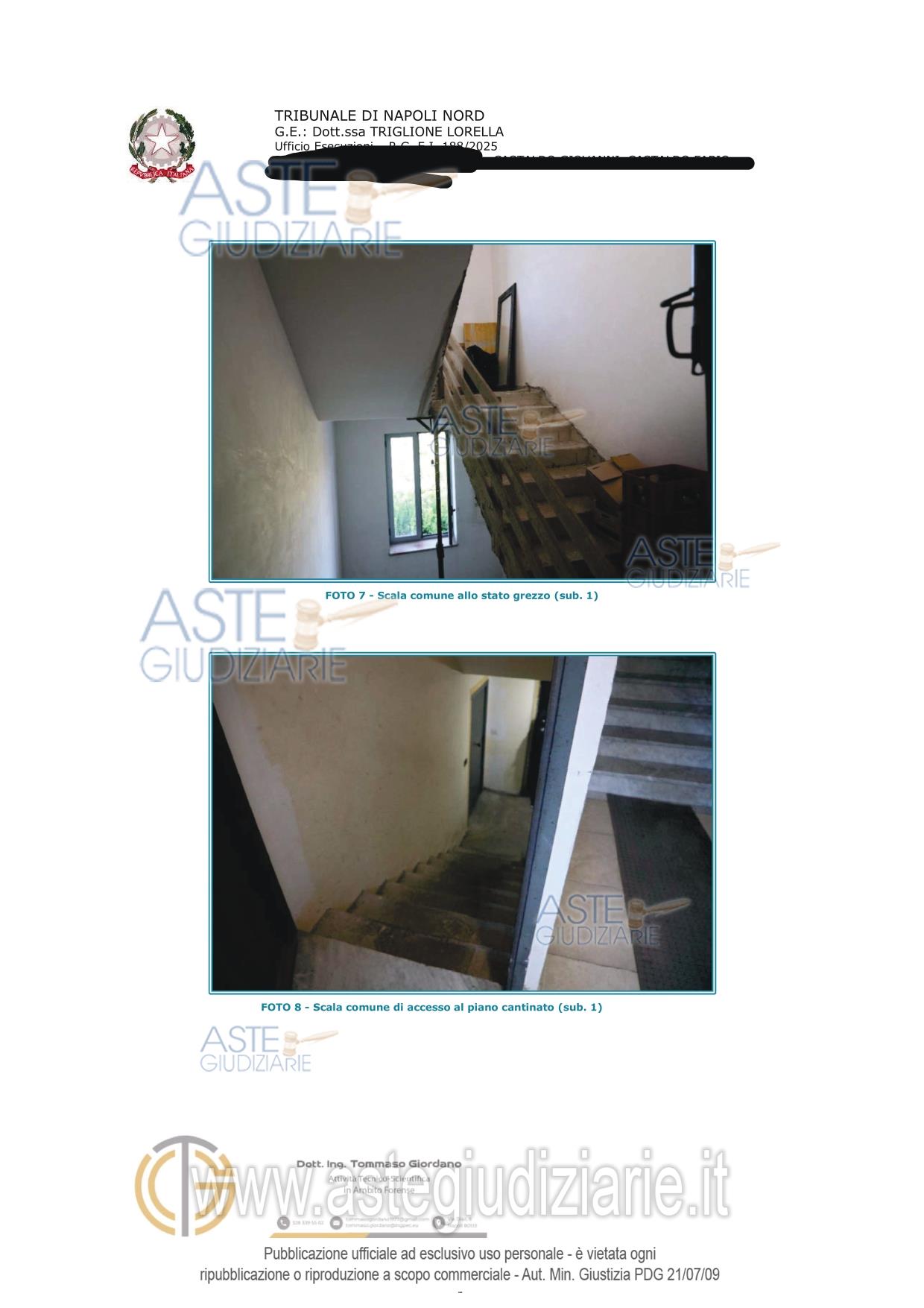 Vendita all'asta Senza incanto, con gara telematica asincrona - LOTTO 2: Piena e intera proprietà di appartamento al secondo piano con ingresso dalla porta a destra di chi sale le scale, e pertinenziale cantina al piano seminterrato. Si precisa che entrambi sono fusi con altro appartamento e cantina sub 17 (lotto 1) costituendo di fatto un'unità unità abitativa e unica cantina. L'appartamento si compone di ingresso, Bagno, tre camere da letto di cui una dotata di cabina armadio. Prezzo base € 128.000,00 (offerta minima € 96.000,00). Data inizio operazioni di vendita: 23/06/2026 ore 12:00. Professionista delegato alla vendita Avv. Tommasina Valentina Panico - Email "panico.valentina@libero.it"; Tel. 08118820912. Custode Giudiziario Avv. Tommasina Valentina Panico - Email "panico.valentina@libero.it"; Tel. 08118820912. Rif. Tribunale di Napoli Nord - Espropriazione immobiliare (cartabia) n. 188/2025