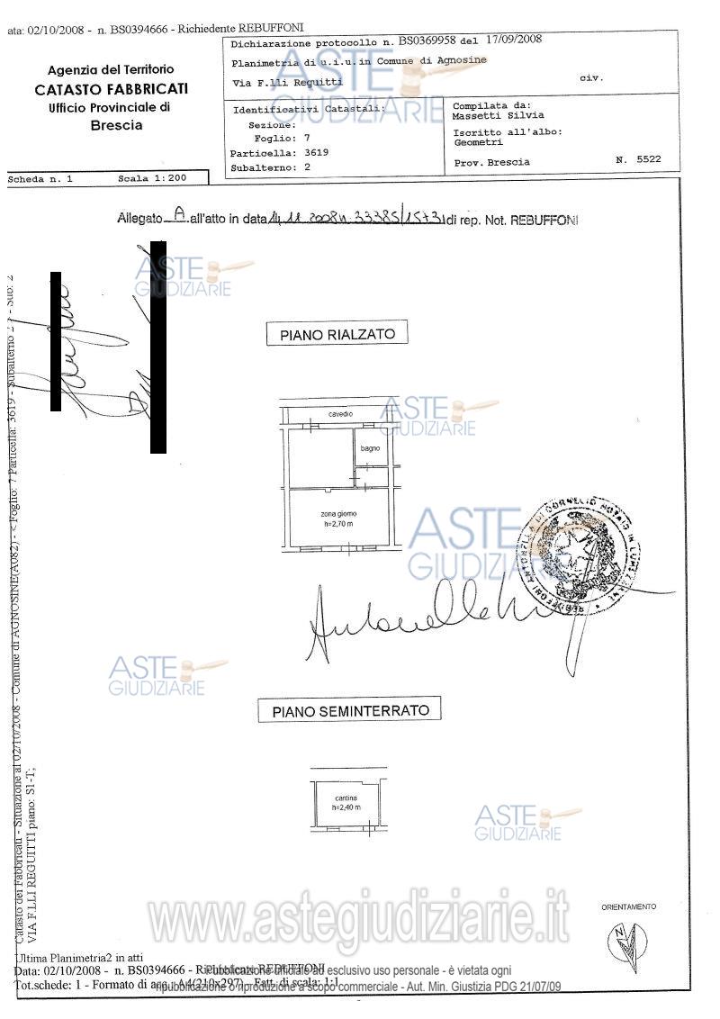 Vendita all'asta Senza incanto, con gara telematica asincrona - LOTTO UNICO: Appartamento bilocale al piano rialzato con cantina al piano seminterrato. Competono le proporzionali quote sulle parti comuni. Prezzo base € 52.200,00 (offerta minima € 39.150,00). Data inizio operazioni di vendita: 08/05/2026 ore 12:00. Professionista delegato alla vendita Avv. Alessio Briguglio. Custode Giudiziario Avv. Alessio Briguglio - Email "auditorebriguglio@hotmail.it". Rif. Tribunale di Brescia - Espropriazione immobiliare (cartabia) n. 123/2025