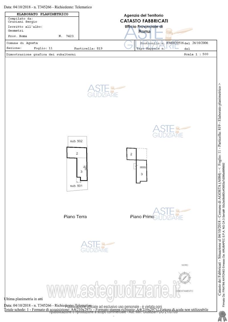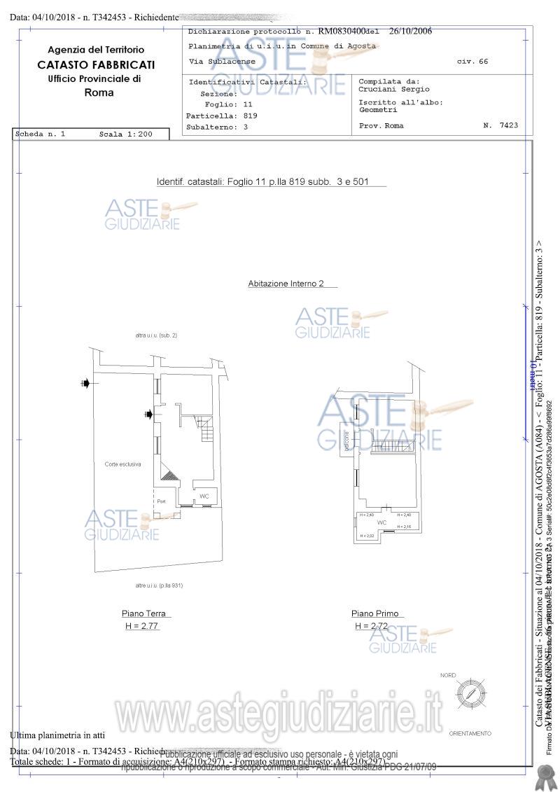 Vendita all'asta Senza incanto, con gara telematica asincrona - LOTTO UNICO: 1/1 del diritto di proprietà su appartamento piano T e 1° e corte esclusiva pavimentata, sito in Agosta (RM), Via Sublacense n. 66 int. 2. Il piano Terra composto da cucina, disimpegno, soggiorno/pranzo; da un disimpegno si raggiunge un piccolo bagno (mq 47 circa). Il Piano Primo è composto da una camera da letto con bagno, una altra camera da letto ed un disimpegno (mq 52 circa) dal quale si accede ad un piccolo balcone (mq 3,2 circa). NCEU foglio 11, particella 819, sub 3 e 501 graffati. Prezzo base € 45.675,00 (offerta minima € 34.256,25). Data inizio operazioni di vendita: 09/06/2026 ore 14:00. Professionista delegato alla vendita: Avv. Deborah Soria - Email "avv.deborahsoria@gmail.com"; Tel. 0774/1791010; Cell. 393/9384414.