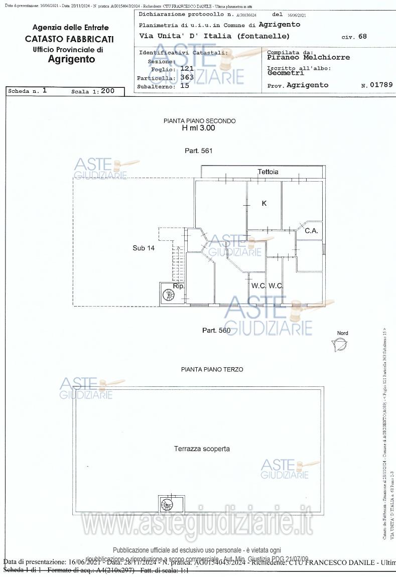 Vendita all'asta Senza incanto, con gara telematica asincrona - LOTTO UNICO: Appartamento sito in Agrigento, via Unità D’Italia n. 68, C/da San Giusippuzzo. Complesso residenziale composto da 10 vani due bagni su una superficie di 210 mq. Prezzo base € 95.600,00 (offerta minima € 71.700,00). Data inizio operazioni di vendita: 10/06/2026 ore 09:30. Professionista delegato alla vendita Dott. Nazareno Fabrizio Mantione - Email "fabriziomantione1@gmail.com"; Cell. 3280356177. Custode Giudiziario Dott. Nazareno Fabrizio Mantione - Email "fabriziomantione1@gmail.com"; Cell. 3280356177. Rif. Tribunale di Agrigento - Espropriazione immobiliare (cartabia) n. 128/2024