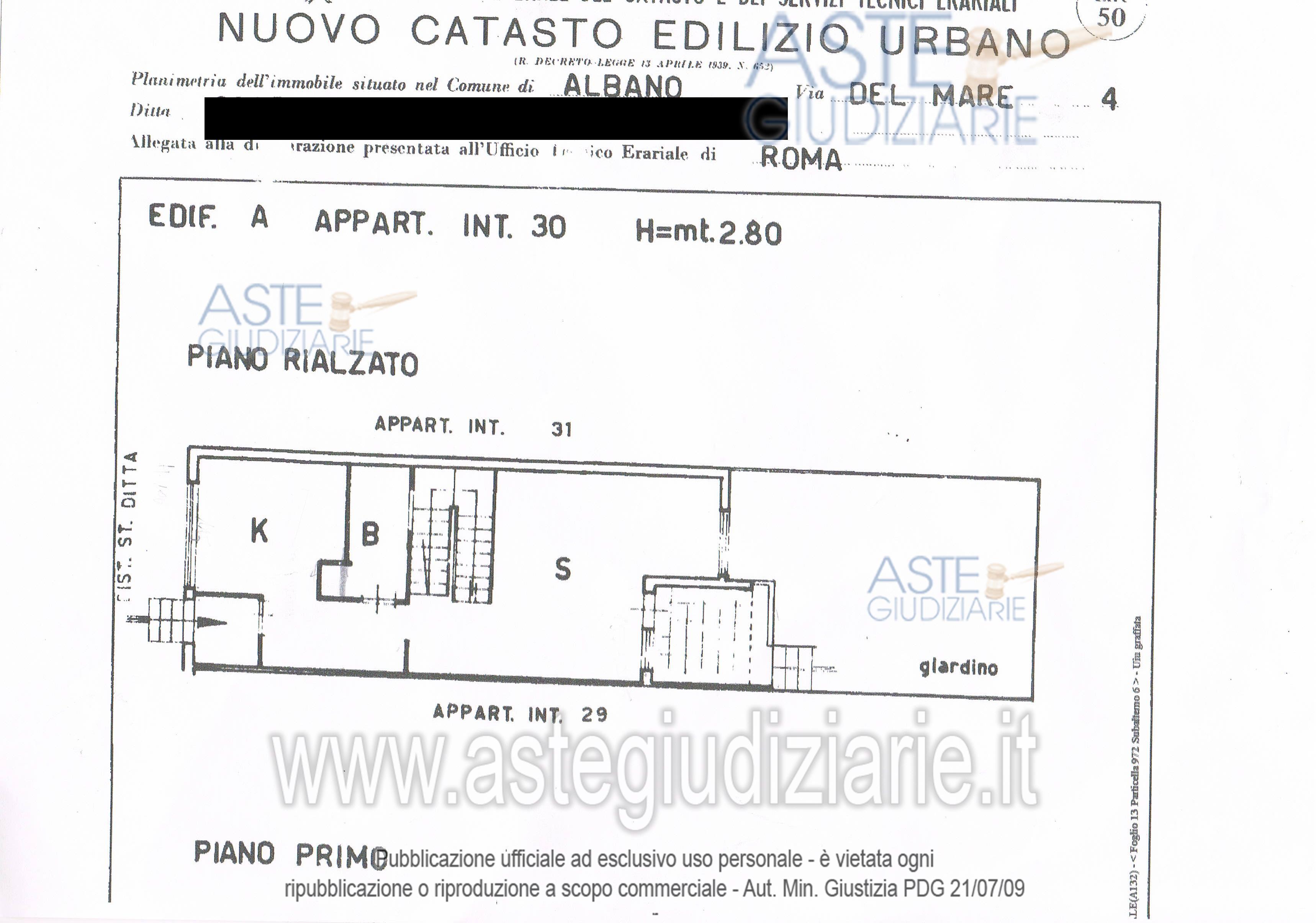 Vendita all'asta Senza incanto, con gara telematica asincrona - LOTTO UNICO: Intera quota del diritto di proprietà superficiaria dell’appartamento ubicato a Albano Laziale (RM) - Via del Mare n.3 (ex 4) Località Pavona: In particolare appartamento posto al piano rialzato e al piano primo del fabbricato "A", distinto con il numero interno 30 (trenta), composto da quattro camere e accessori per un totale di mq. convenzionali di 126,48 e giardino di mq. 33,81. Nello spazio condominiale antistante l’appartamento risulta attribuito, di fatto, un posto auto scoperto (non censito). Prezzo base € 212.775,00 (offerta minima € 159.581,25). Data inizio operazioni di vendita: 29/04/2026 ore 12:00. Professionista delegato alla vendita Avv. Salvatore Di Marco - Email "studiolegale.dimarco@libero.it"; Cell. 3332996836. Custode Giudiziario Avv. Salvatore Di Marco - Email "studiolegale.dimarco@libero.it"; Cell. 3332996836. Rif. Tribunale di Velletri - Espropriazione immobiliare (cartabia) n. 85/2024