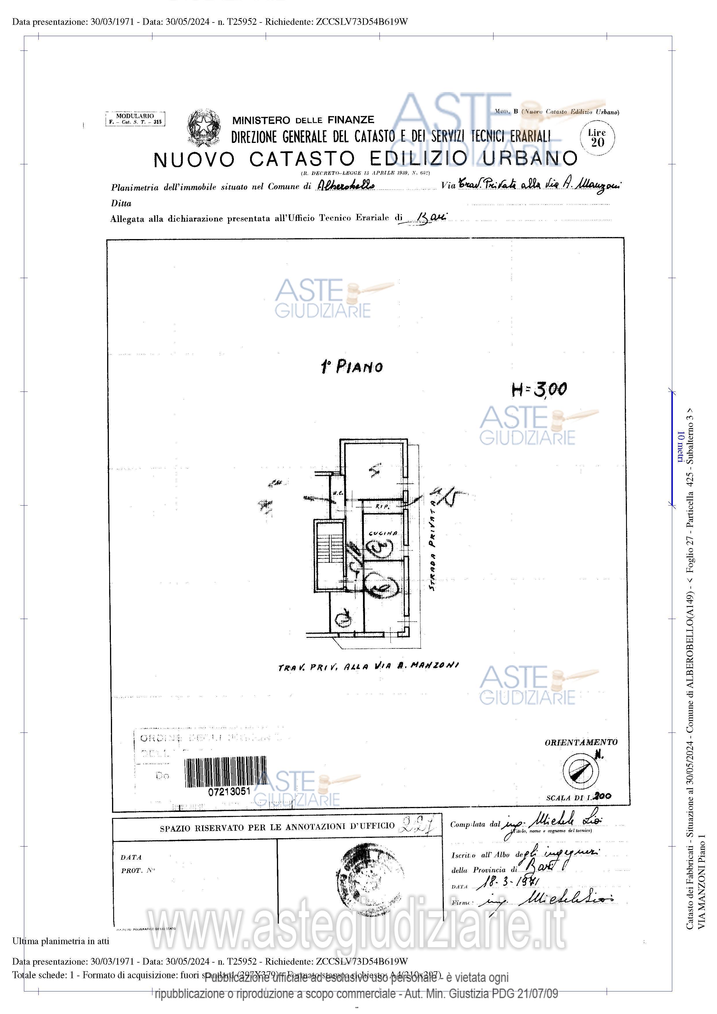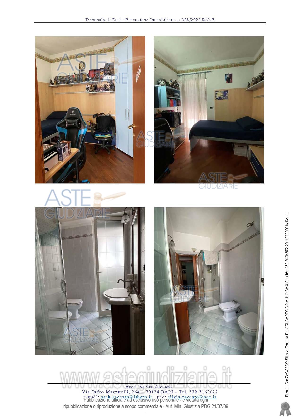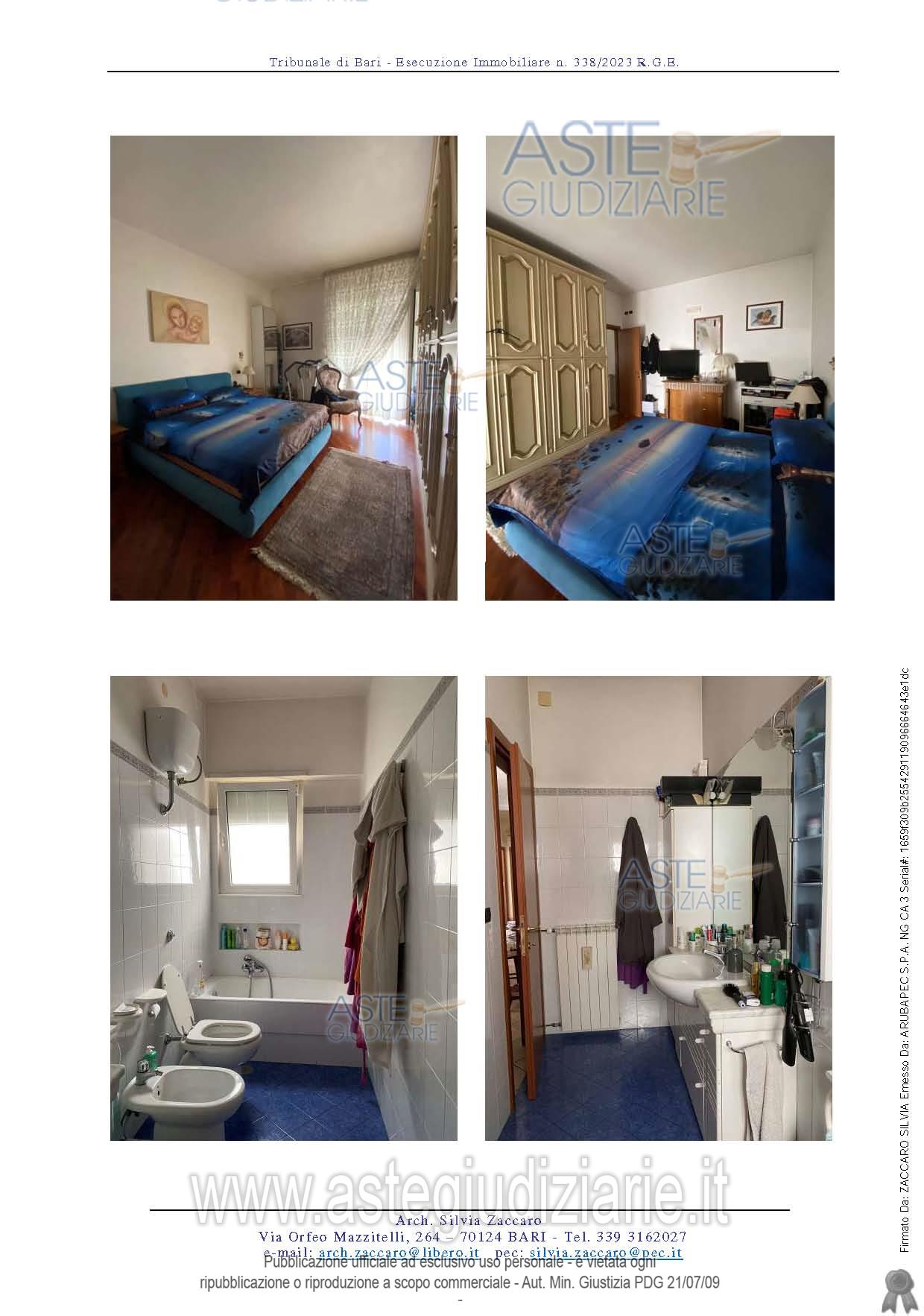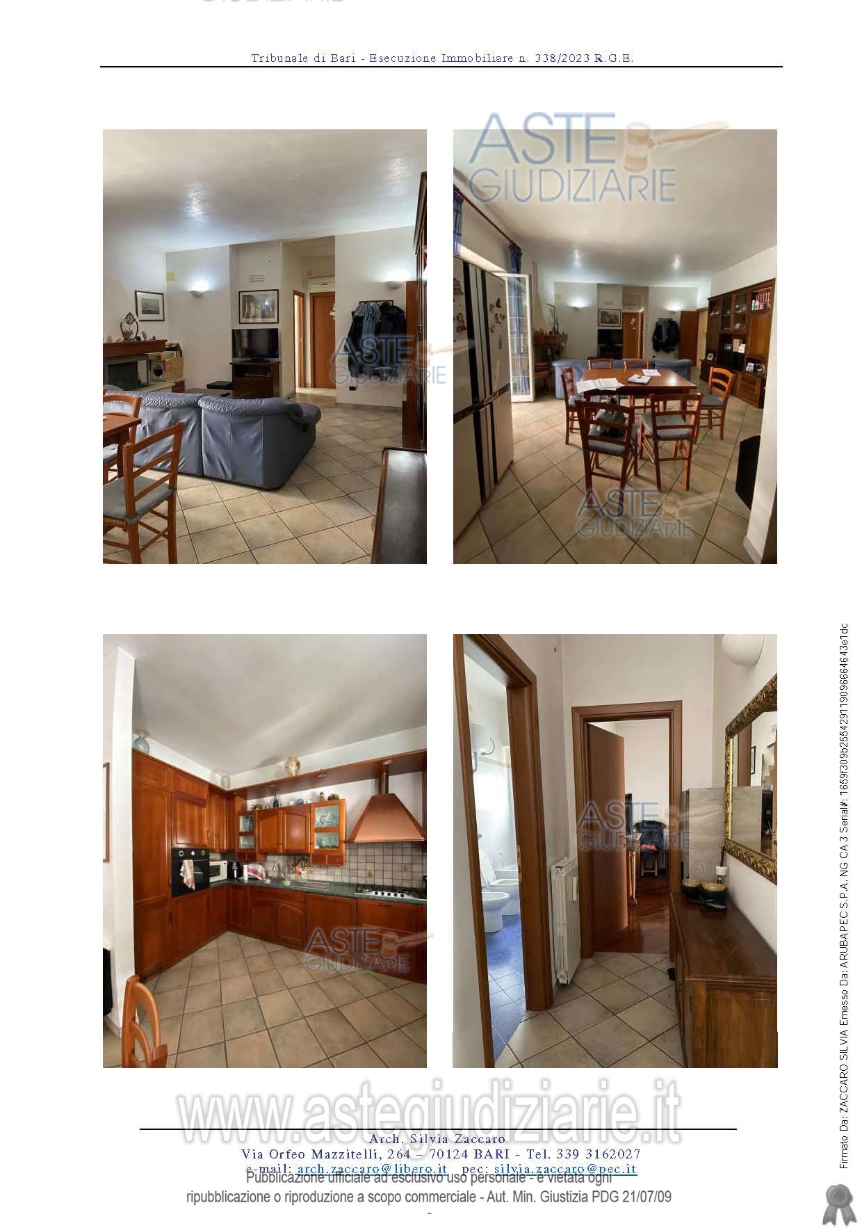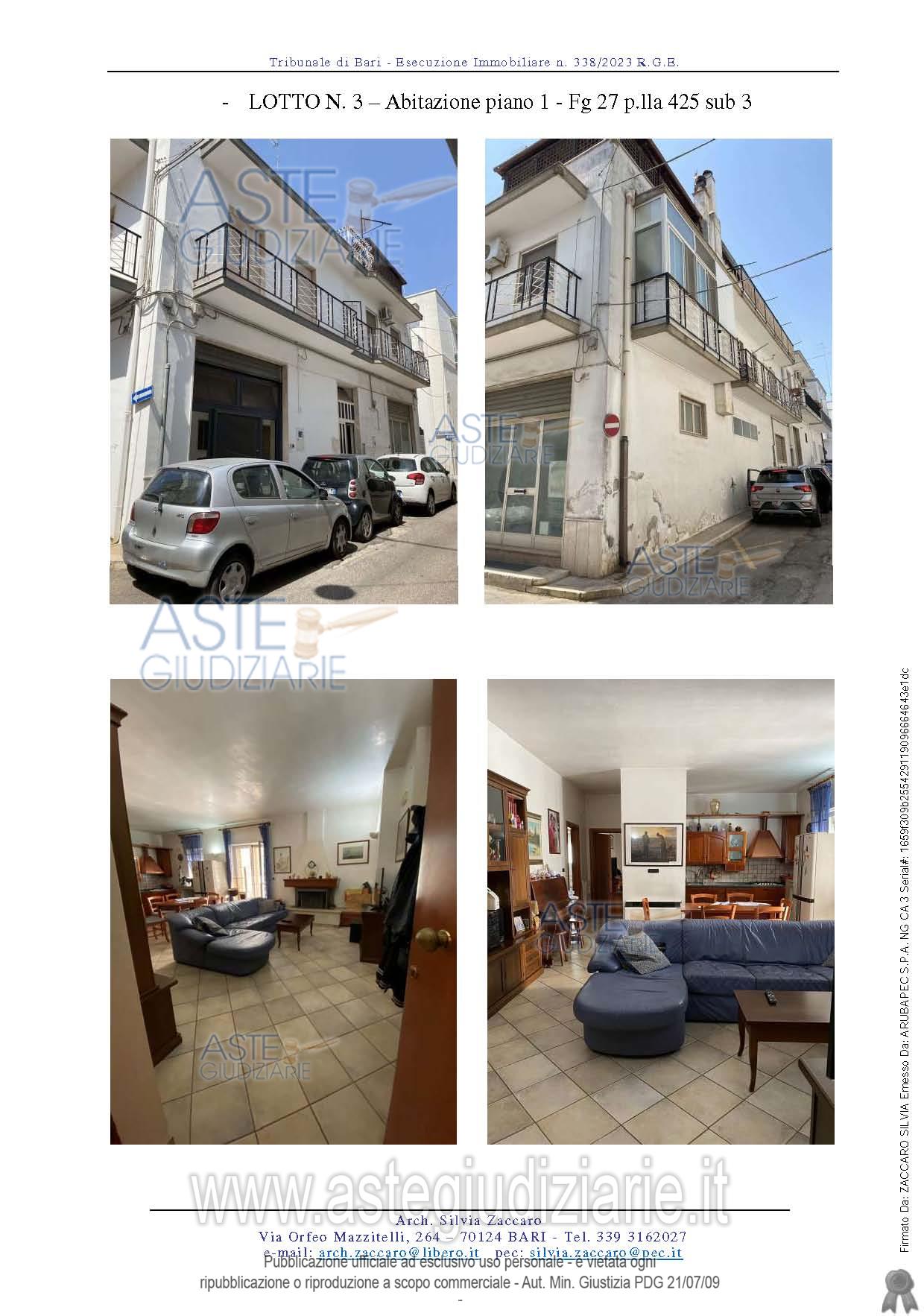 Vendita all'asta Senza incanto, con gara telematica asincrona - LOTTO 3: Piena proprietà di un appartamento al piano primo, composto di tre vani e accessori con doppia esposizione. L'appartamento è costituito da un soggiorno, due camere da letto, un cucinino, un ripostiglio, due bagni e disimpegni, oltre balconi sui due affacci. Prezzo base € 69.400,00 (offerta minima € 52.050,00). Data inizio operazioni di vendita: 10/06/2026 ore 17:00. Giudice Dott. Marina Cavallo. Professionista delegato alla vendita Avv. Giuseppe Caramia - Email "giuseppe@caramiasantamato.it"; Tel. 0809752579. Custode Giudiziario Avv. Giuseppe Caramia - Email "giuseppe@caramiasantamato.it". Rif. Tribunale di Bari - Espropriazione immobiliare (cartabia) n. 338/2023