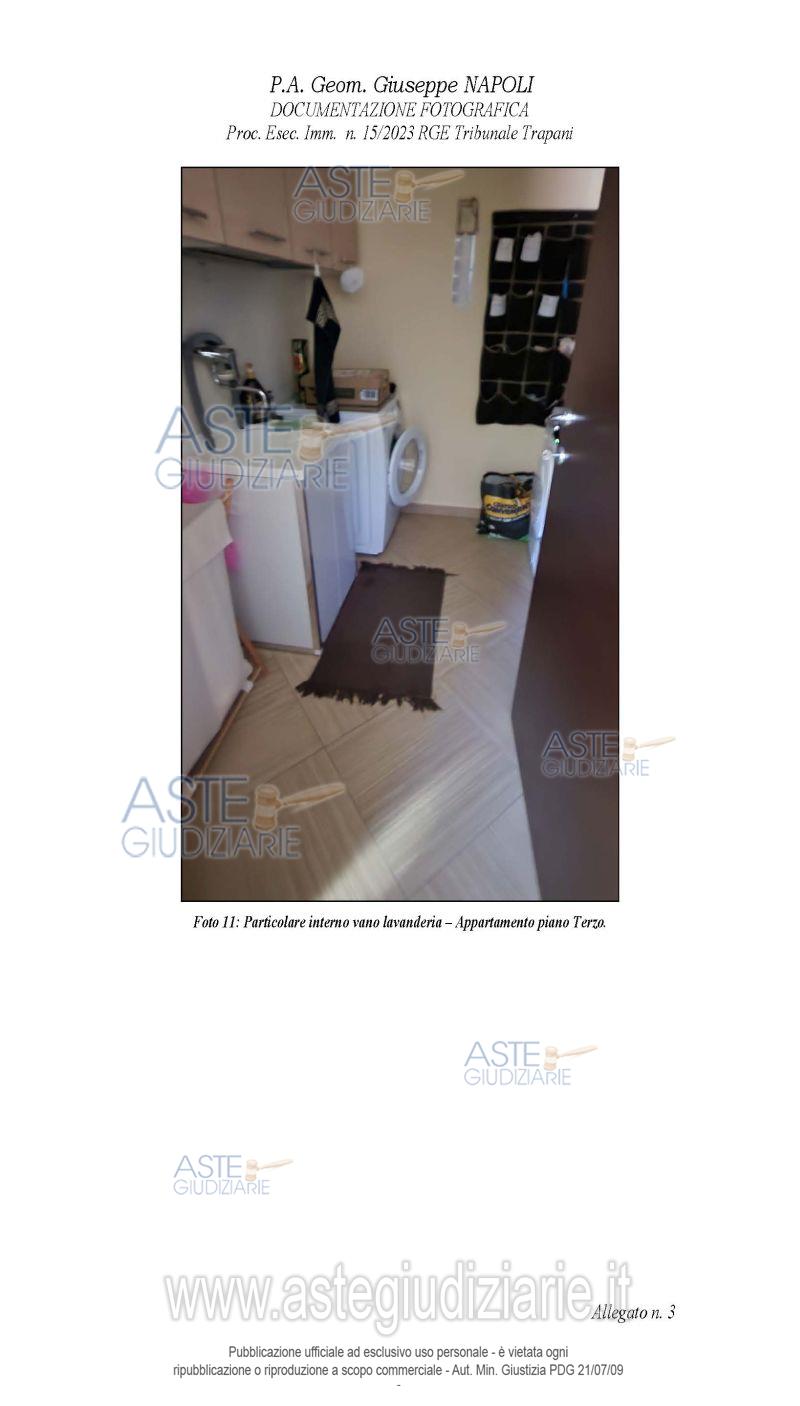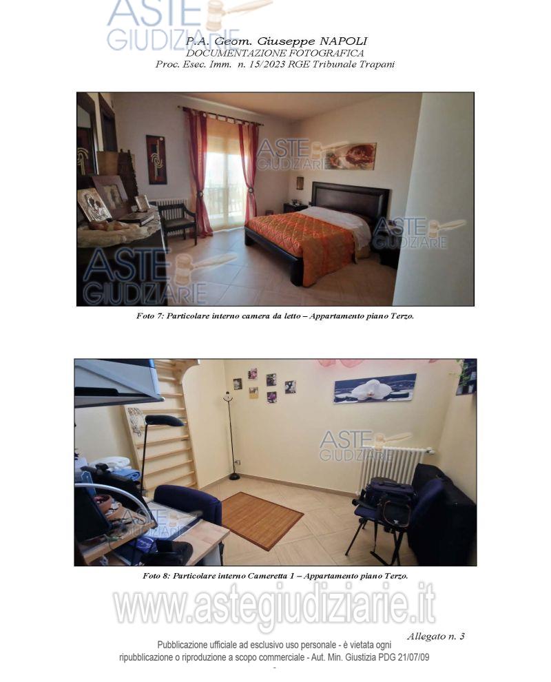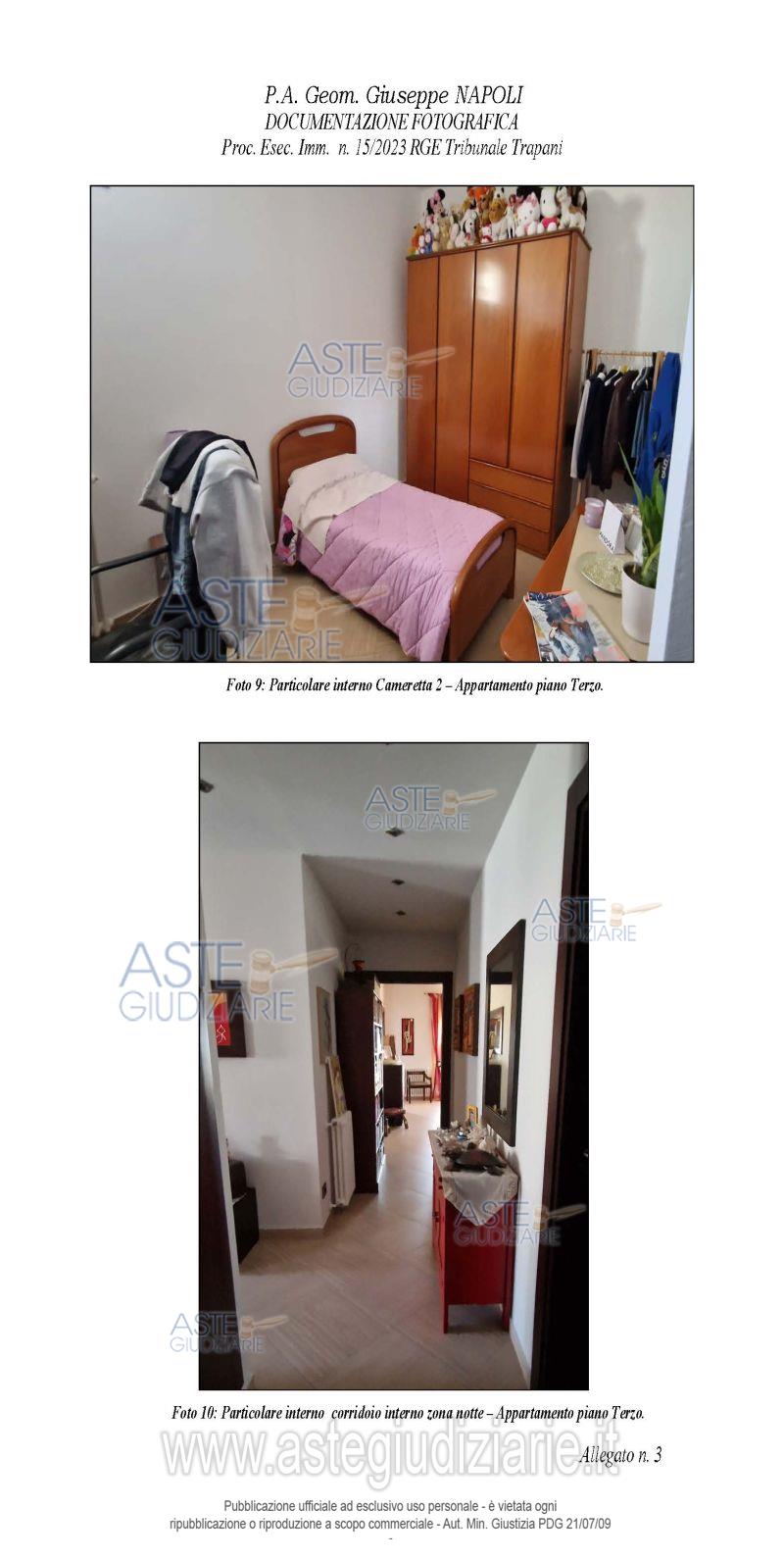 Vendita all'asta Senza incanto, con gara telematica asincrona - LOTTO UNICO: Piena Proprietà per la quota di 1000/1000 di Appartamento per civile abitazione, al piano terzo, ubicato a Alcamo (TP) - Via Giuseppe Mistretta Di Paola n. 4. Identificato al catasto Fabbricati - Fg. 55, Part. 605, Sub. 5, Categoria A3. Occupato. Sussistono irregolarità. L'immobile fa parte di un edificio condominiale privato, con ingresso unico. Prezzo base € 115.000,00 (offerta minima € 86.250,00). Data inizio operazioni di vendita: 19/05/2026 ore 16:30. Giudice Dott. Giovanni Campisi. Professionista delegato alla vendita Avv. Maria Cristina Pirrone - Email "cristina.pirrone@libero.it"; Cell. 3491474849. Custode Giudiziario Avv. Maria Cristina Pirrone - Email "cristina.pirrone@libero.it"; Cell. 3491474849. Rif. Tribunale di Trapani - Esecuzione immobiliare post legge 80 n. 15/2023