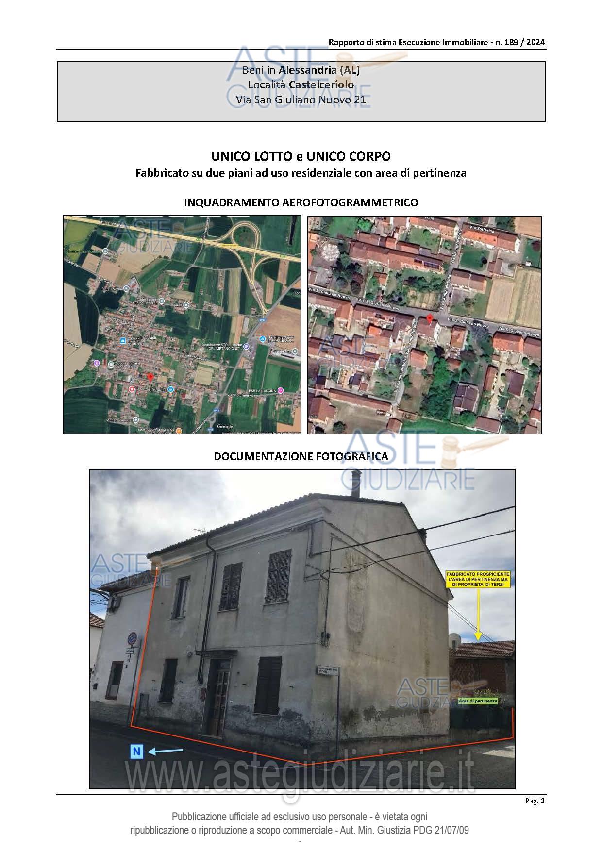 Vendita all'asta Senza incanto - LOTTO UNICO: Fabbricato di civile abitazione ad uso residenziale libero su tre lati e sviluppato su due piani fuori terra con annesso sedime pertinenziale. Prezzo base € 32.878,13 (offerta minima € 24.658,60). Data vendita 15/04/2026 ore 16:00. Giudice Dott. Michele Delli Paoli. Professionista delegato alla vendita Avv. Ernesto Nobile - Email "en@studiocaratti.eu"; Tel. 0131894587. Custode Giudiziario Avv. Ernesto Nobile - Email "en@studiocaratti.eu"; Tel. 0131894587. Rif. Tribunale di Alessandria - Espropriazione immobiliare (cartabia) n. 189/2024