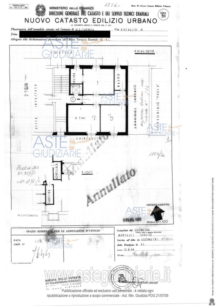 Vendita in attesa dell'emissione del nuovo bando d'asta. LOTTO UNICO: Appartamento situato nel piano rialzato di un condominio di n. 6 piani con accesso da vano scala comune. L’unità immobiliare è composta da ingresso su corridoio che si sviluppa per tutta la lunghezza dell’alloggio e dà accesso a sinistra al tinello con balcone e cucinino e al servizio igienico; a destra a due camere con affaccio su via Vinzaglio. Completano l’immobile una cantina a piano seminterrato e un piccolo vano sottoscala. Ultimo prezzo base € 28.500,00 (offerta minima € 21.375,00). Professionista delegato alla vendita Avv. Andrea Gatti - Email "studiolegale@studiogatti.com"; Tel. 013155777. Custode Giudiziario Avv. Andrea Gatti - Email "studiolegale@studiogatti.com"; Tel. 013155777. Rif. Tribunale di Alessandria - Espropriazione immobiliare (cartabia) n. 152/2024