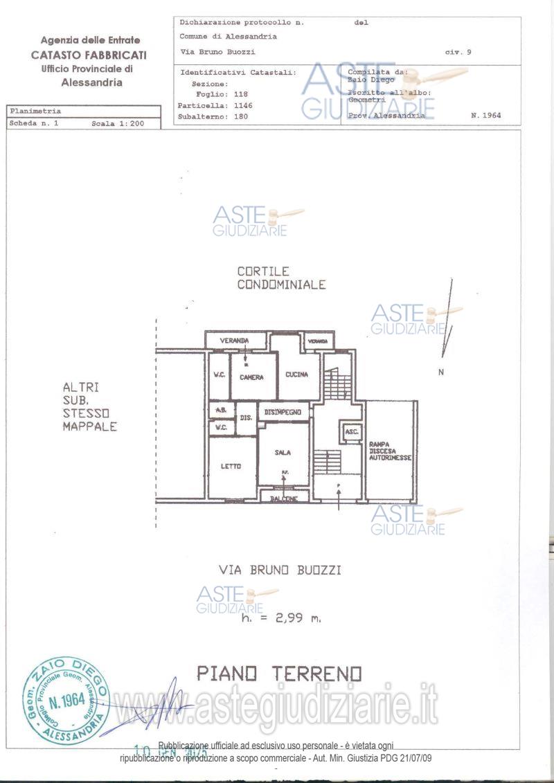 Vendita in attesa dell'emissione del nuovo bando d'asta. LOTTO UNICO: alloggio al piano terreno di un piu' ampio edificio condominiale a sette piani fuori terra e due entro terra, di elegante costruzione, e cantina. Ultimo prezzo base € 43.986,75 (offerta minima € 32.990,06). Professionista delegato alla vendita Avv. Gabriella Massa - Email "info@avvocatomassa.com"; Tel. 0131251524. Rif. Tribunale di Alessandria - Espropriazione immobiliare (cartabia) n. 282/2024