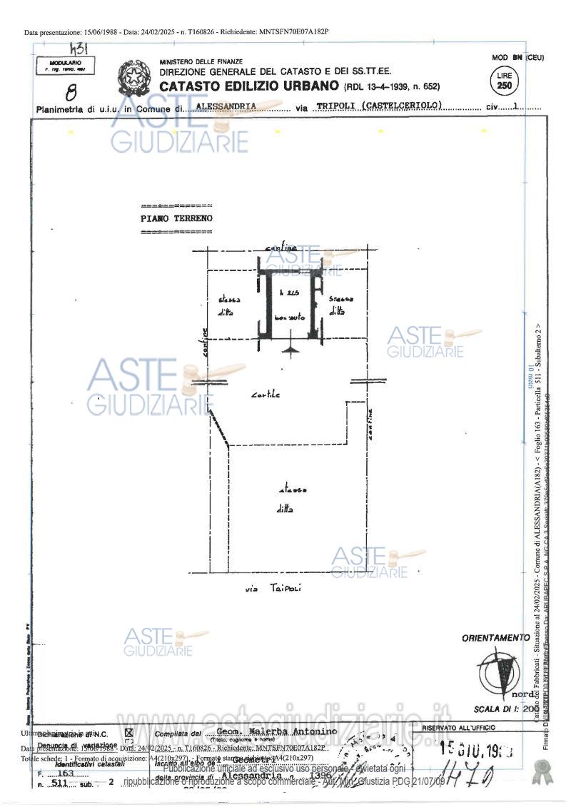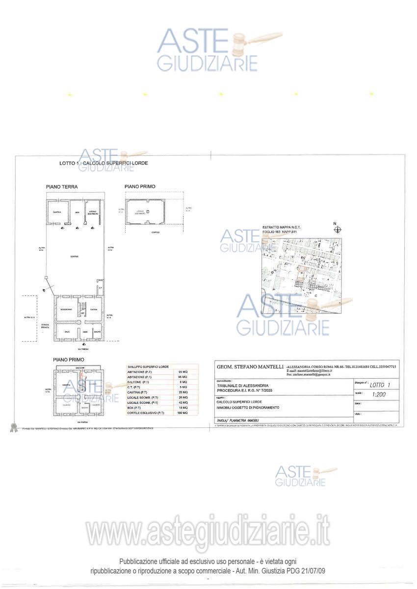 Vendita all'asta Senza incanto - LOTTO UNICO: Fabbricato indipendente disposto su 2 con locali accessori e box, oltre a cortile pertinenziale di circa mq.180 situato in Via Tripoli n.3 - Sobborgo Castelceriolo - Alessandria (AL) – 15122. Si precisa che il numero civico dell’immobile pignorato è il n. 3, mentre i dati catastali e gli atti successivi riportano il n. 1. Prezzo base € 72.604,50 (offerta minima € 54.453,37). Data vendita 06/02/2026 ore 10:00. Professionista delegato alla vendita Avv. Barbara Bariggi - Email "barbarabariggi@studiogatti.com"; Tel. 013155777. Custode Giudiziario Avv. Barbara Bariggi - Email "barbarabariggi@studiogatti.com"; Tel. 013155777. Rif. Tribunale di Alessandria - Espropriazione immobiliare (cartabia) n. 7/2025