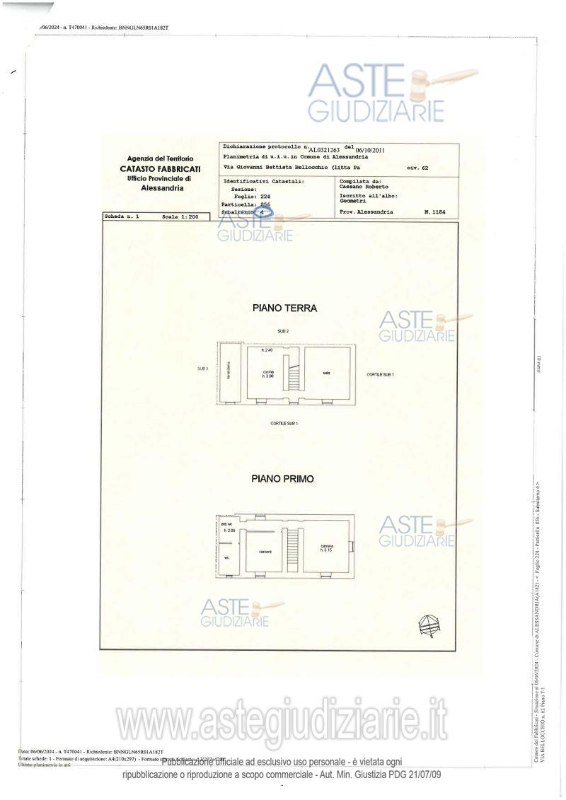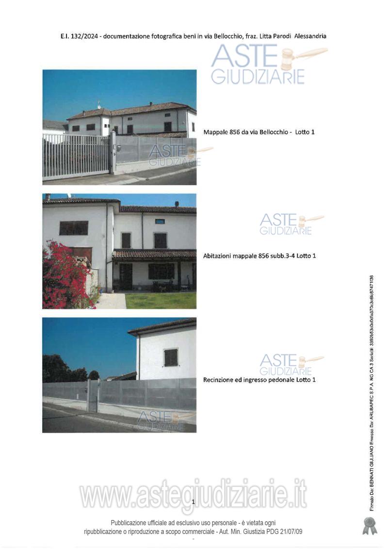 Vendita all'asta Senza incanto, con gara telematica asincrona - LOTTO 1: Piena proprietà casa bifamiliare con rimessa e magazzino. Alloggio al primo piano composto da: salone, camera, cucinino, bagno e terrazzo verandato. Superficie ca mq 129,00. Occupata da terzi con titolo non opponibile. Alloggio ristrutturato su due piani composto da: ingresso, cucina, soggiorno, lavanderia al piano terreno; due camere, corridonio, bagno con antibagno al primo piano. Superficie ca mq 187,00. Magazzino utilizzabile in parte come rimessa plurima pertinenziale alla parte abitativa. Prezzo base € 247.764,00 (offerta minima € 185.823,00). Data inizio operazioni di vendita: 09/06/2026 ore 16:00. Giudice Michele Delli Paoli. Professionista delegato alla vendita Avv. Maria Teresa Sacchi - Email "mt.sacchi@libero.it"; Tel. 0131483729. Custode Giudiziario Avv. Maria Teresa Sacchi - Email "mt.sacchi@libero.it"; Tel. 0131483729. Rif. Tribunale di Alessandria - Espropriazione immobiliare (cartabia) n. 132/2024