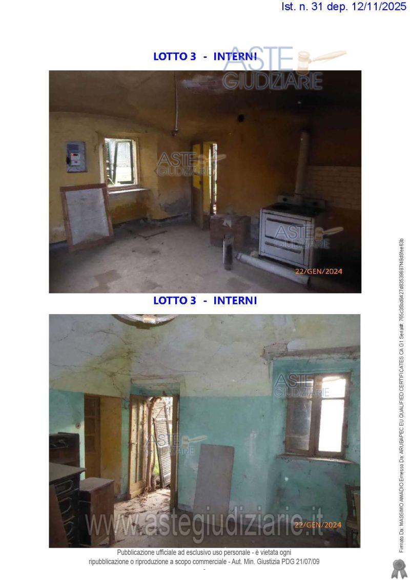 Vendita all'asta Senza incanto - LOTTO 3: Civile abitazione disposta su due piani con piccolo sedime esclusivo, ex stalla e fienili, abbandonato da molti anni ed in cattivo stato manutentivo. Le particolarità riguardano il crollo parziale del tetto, i serramenti non recuperabili nella quasi totalità e il portico antistante, dal quale deve essere rimossa la copertura in eternit. Prezzo base € 16.500,00 (offerta minima € 12.375,00). Data vendita 08/07/2026 ore 10:00. Giudice Elisabetta Bianco. Professionista delegato alla vendita Avv. Luca Canepa - Email "info@studiolegalipaneri.it"; Tel. 01311676919. Custode Giudiziario Avv. Luca Canepa - Email "info@studiolegalipaneri.it"; Tel. 01311676919. Rif. Tribunale di Alessandria - Esecuzione immobiliare post legge 80 n. 294/2022