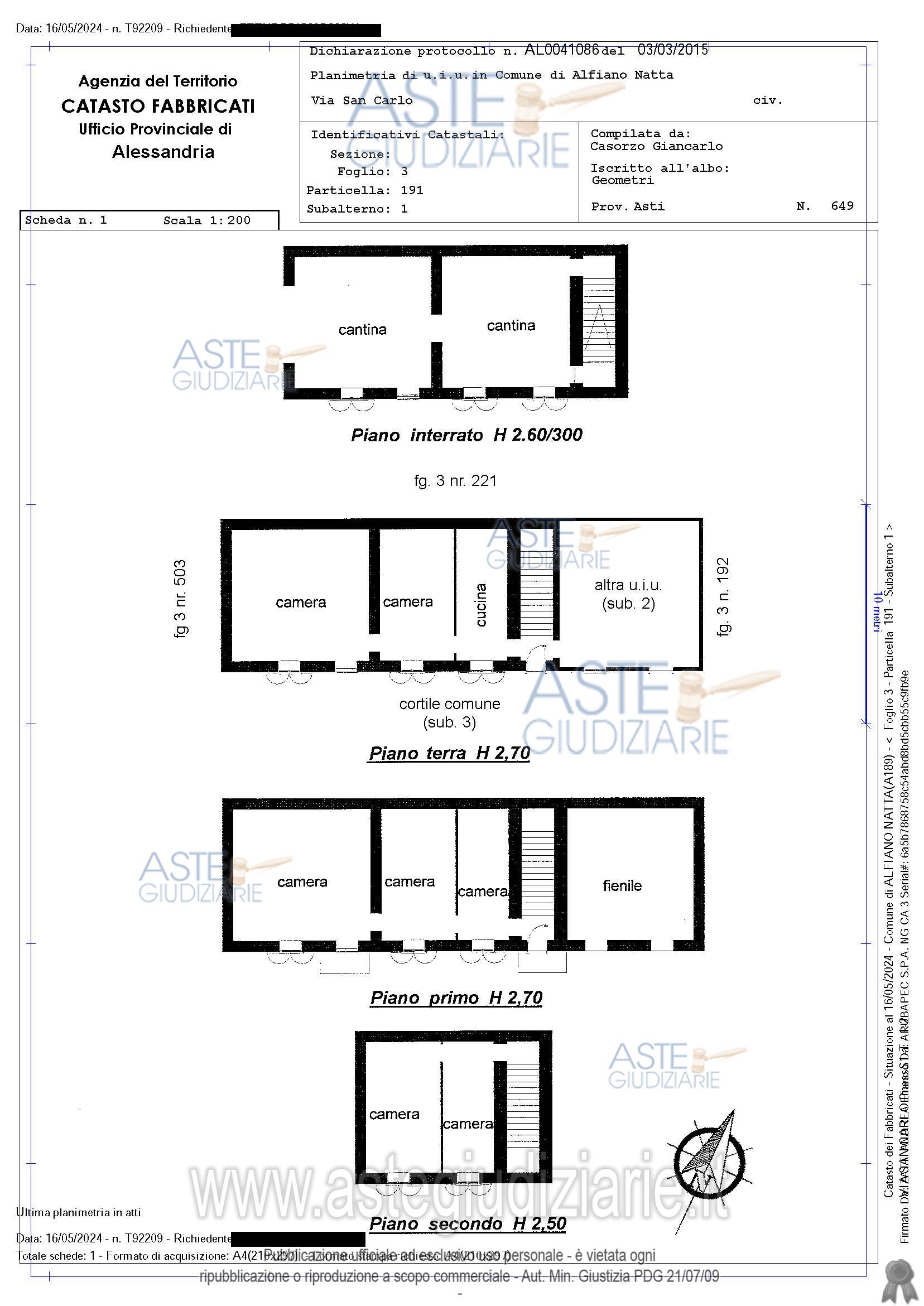 Vendita all'asta Senza incanto, con gara telematica asincrona - LOTTO UNICO: Compendio composto da due corpi di fabbrica staccati uno dall'altro, aventi cortile pertinenziale comune, di cui uno principale ad uso abitativo, libero da tre lati, edificato su tre piani fuori terra più piano interrato, collegato da scala interna, e l'altro accessorio (attualmente censito come fabbricato rurale) libero da tre lati, edificato su due piani fuori terra, senza scala di collegamento tra i piani. Prezzo base € 24.765,00 (offerta minima € 18.574,00). Data inizio operazioni di vendita: 08/05/2026 ore 16:00. Professionista delegato alla vendita Avv. Mattia Bazzano - Email "mattiabazzano@gmail.com"; Tel. 0161253999. Custode Giudiziario Avv. Mattia Bazzano - Email "mattiabazzano@gmail.com"; Tel. 0161253999. Rif. Tribunale di Vercelli - Espropriazione immobiliare (cartabia) n. 39/2024